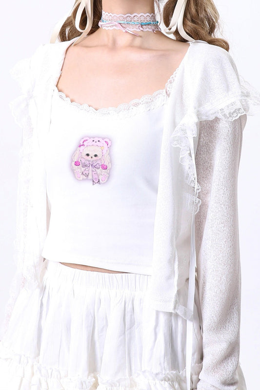 サマーニットバタフライアップリケトップ