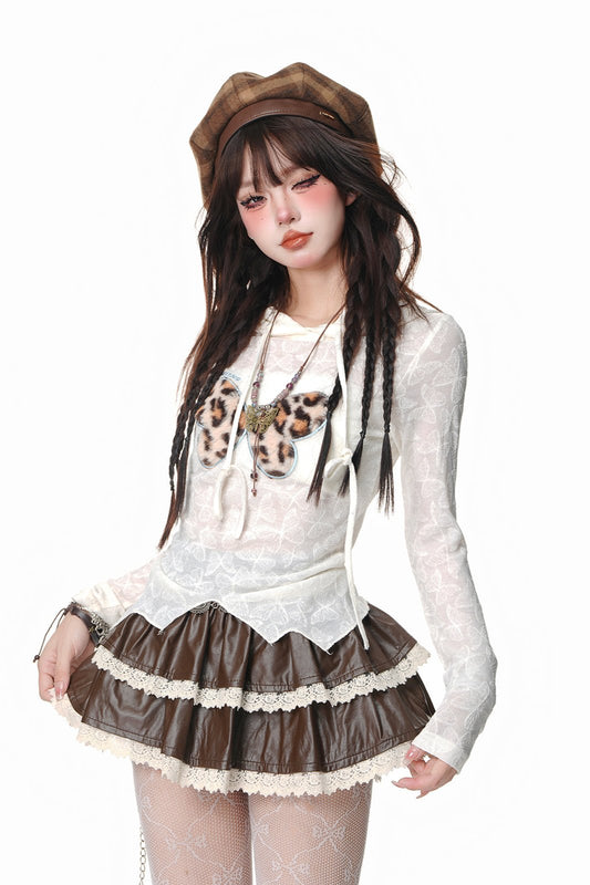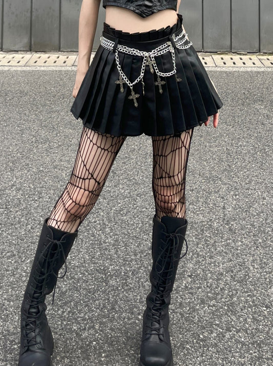 パンクロックブラックレザーチェーンパンツインプリーツスカート