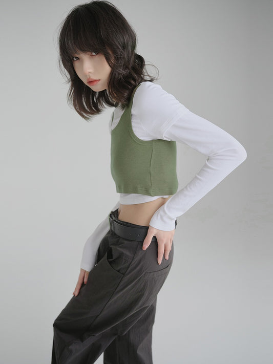 ショート丈ロン T+ベストツーピーストップス