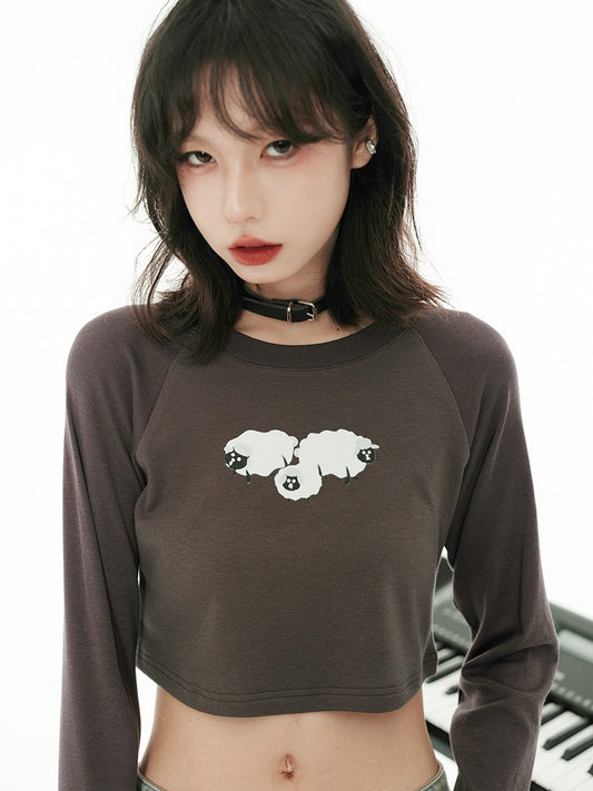 リトルラムプリントショートラグランロンT