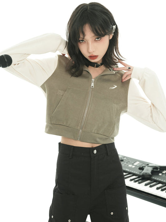 コントラストカラーショートフーディージャケット