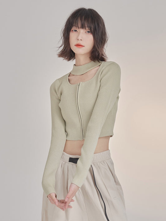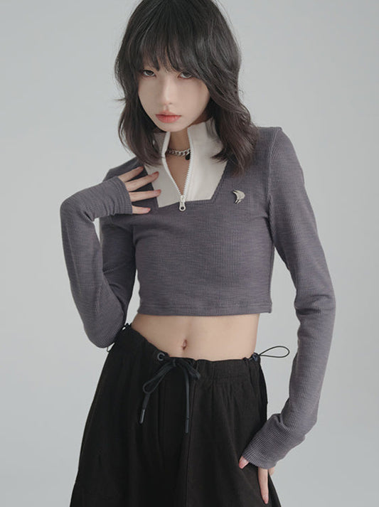 ハーフジップスタンドカラーセーターニューデザインショートトップ
