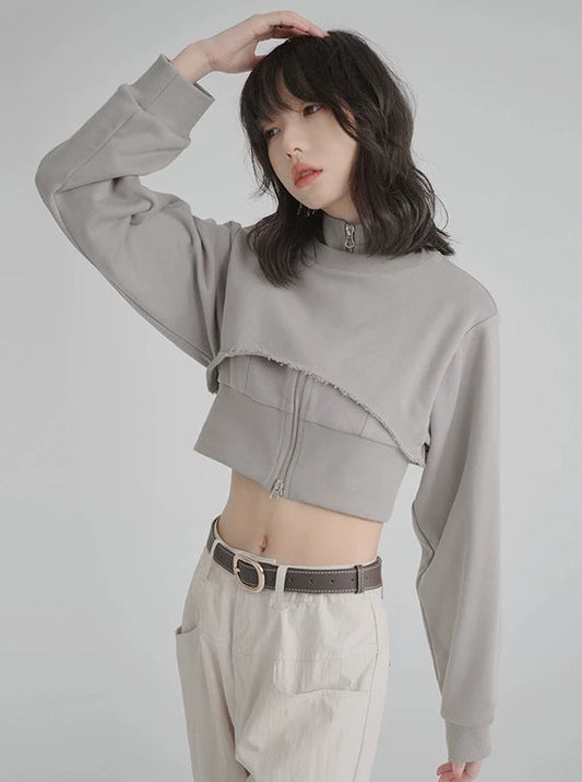 フェイクツーピースショートスタンドカラースウェットシャツ