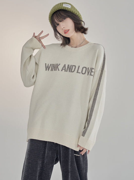 レトロレタールーズニットラウンドネックセーター