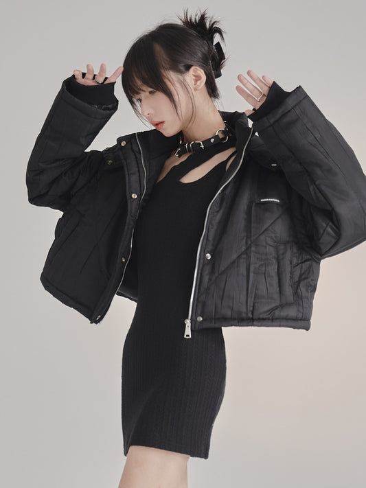 ルーズデザインショートフーディーコットンジャケット