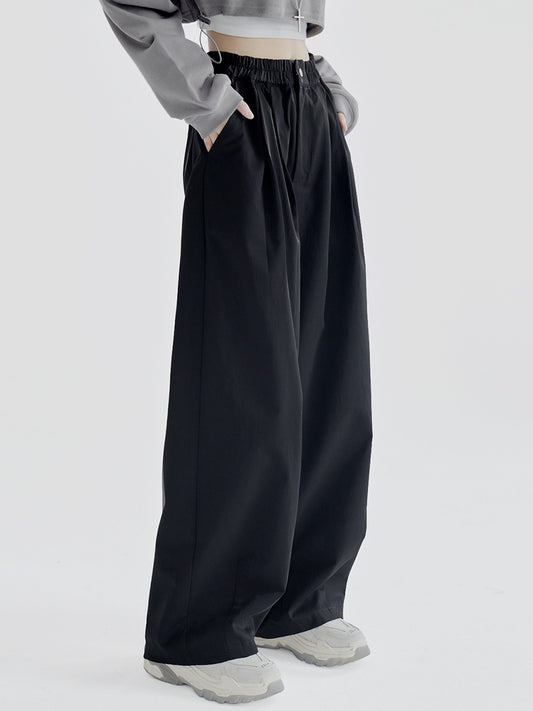 ソリッドカラーストレートルーズカジュアルパンツ