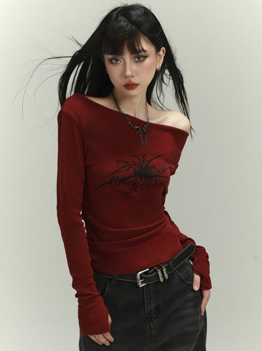 キャラメルコーララグランスリーブチェストレターアイロンダイヤTシャツ/ワンピース