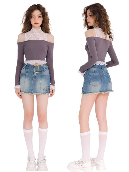 アメリカンレトロy2kスーパーショートデニムスカートパンツ