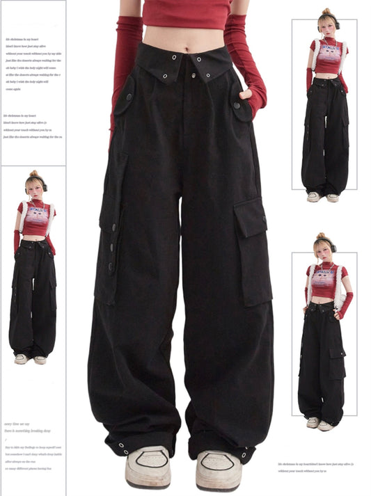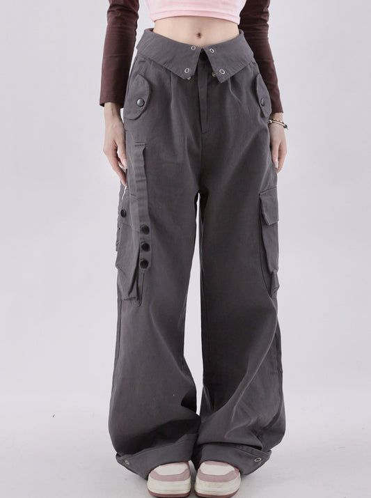 アメリカンストリートフランジカラーウエストカジュアルパンツ