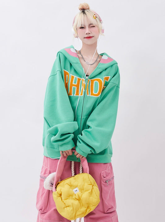 アメリカンレトロオーバーサイズグラデーションフーディージャケット