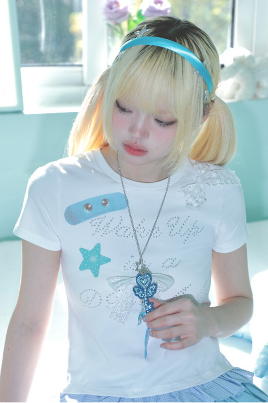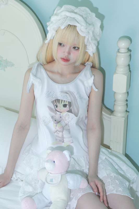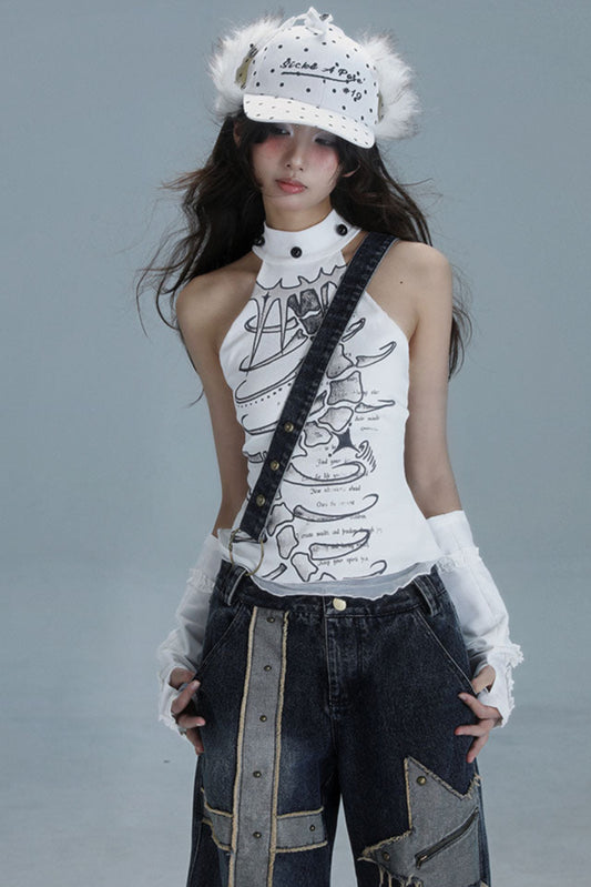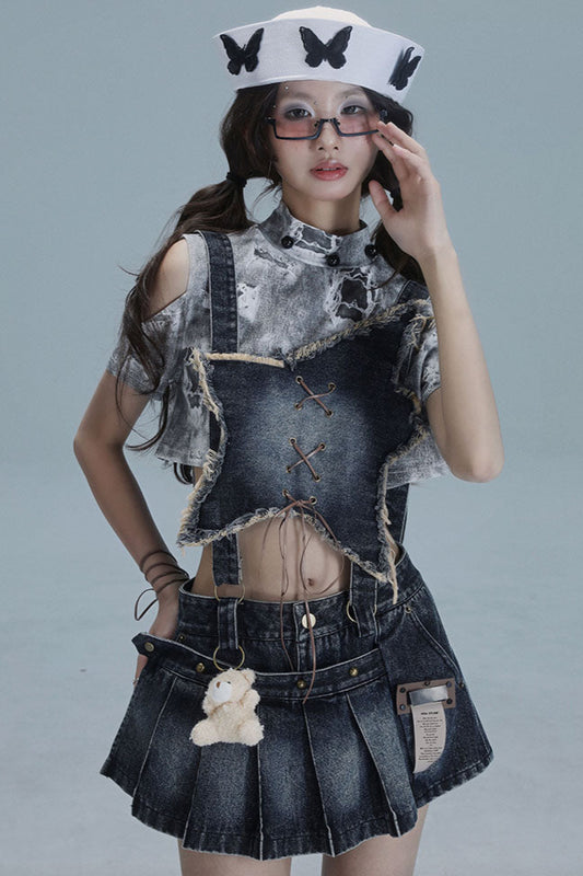 Y2Kデニムレースアップトップス+アシメフリルスカート