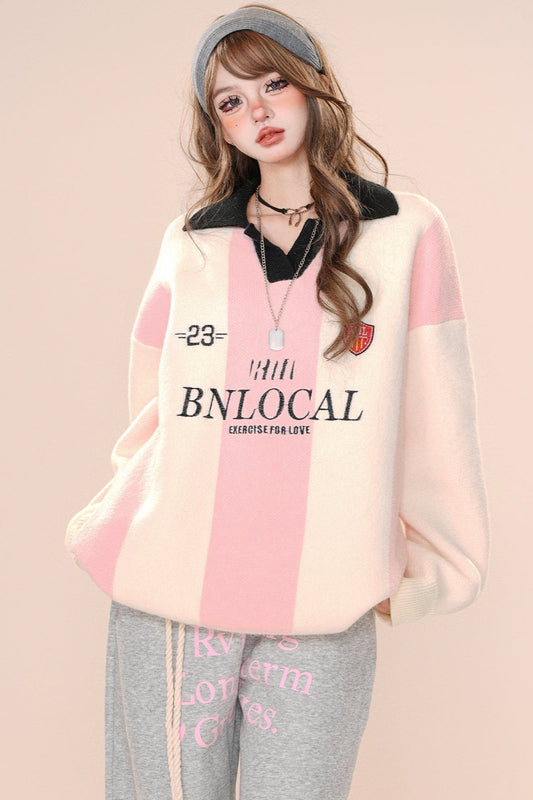 ストライプカレッジスタイルセーター