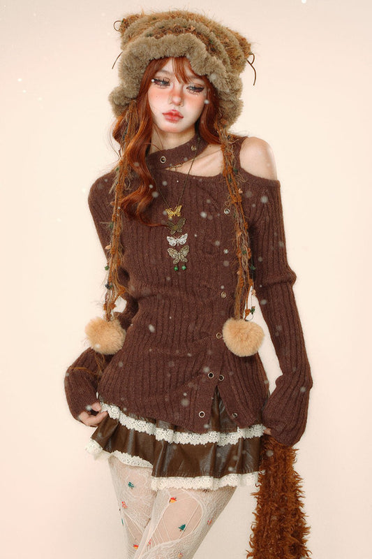 ルーズフィットカットアウトニットセーターセット