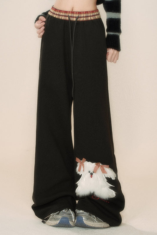 ルーズドッグプリントドローストリングスウェットパンツ