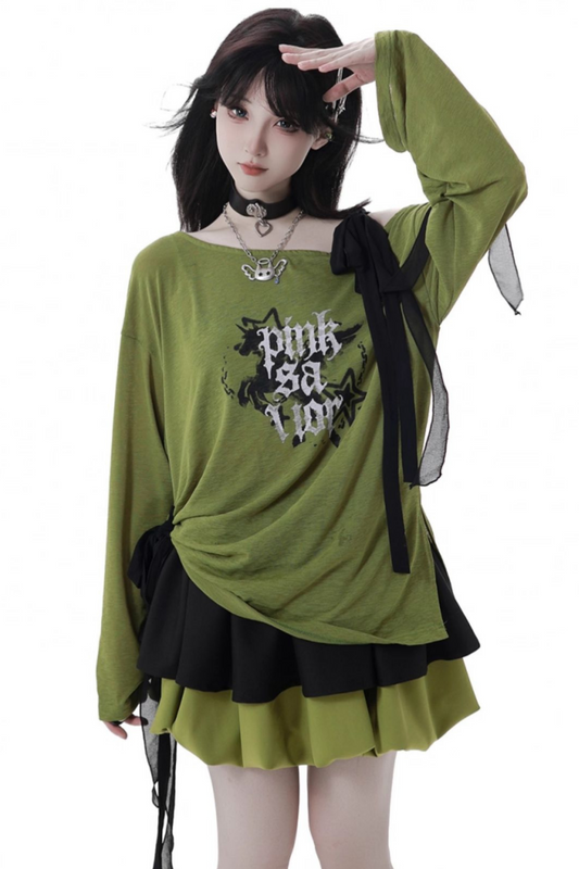 ワンショルダーアシメトップス+バルーンスカート