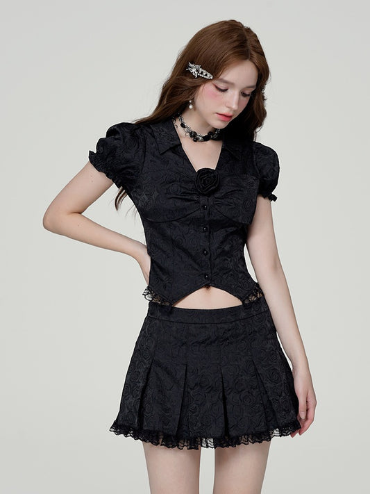Berry Rule Sweetgall Bluse Schwarz Rosa Strumpfhalter Kleid Set
