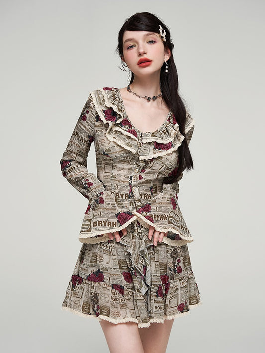 Süßer würziger Rosenabdruck Rüschenhemdrock Setup