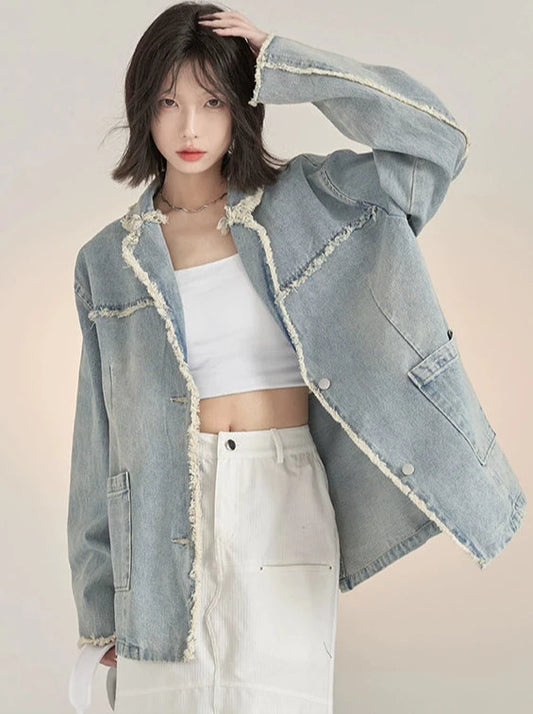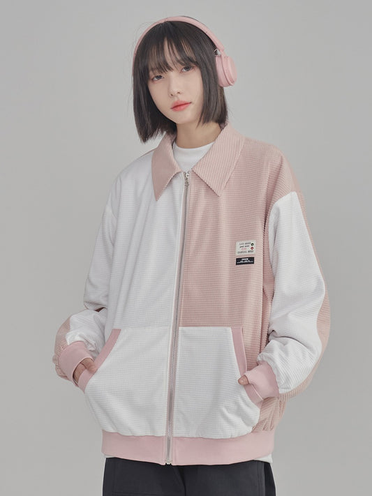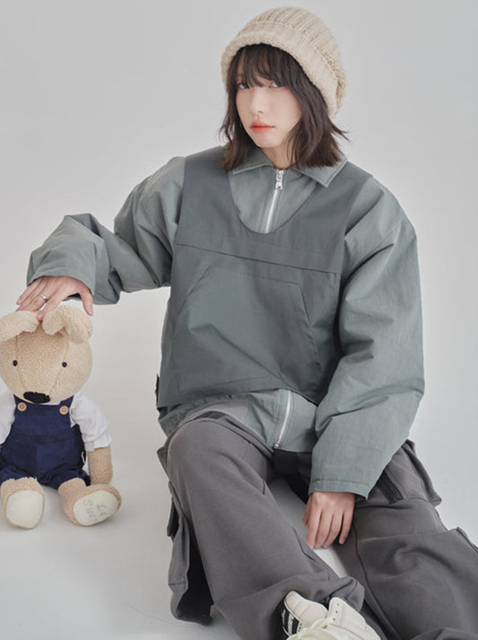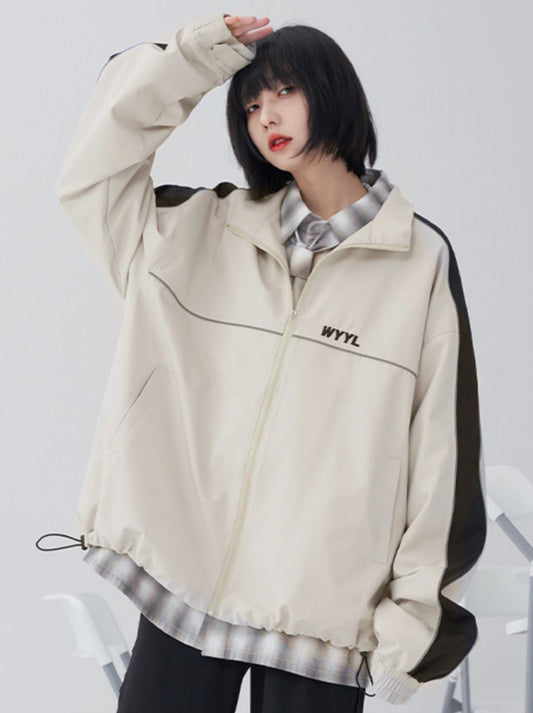 Nähte in Kontrastfarbe Stehkragen Lose Sportjacke