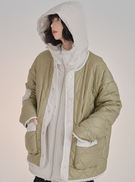 Lockere, neutrale Jacke mit abgestepptem Kontrastkragen