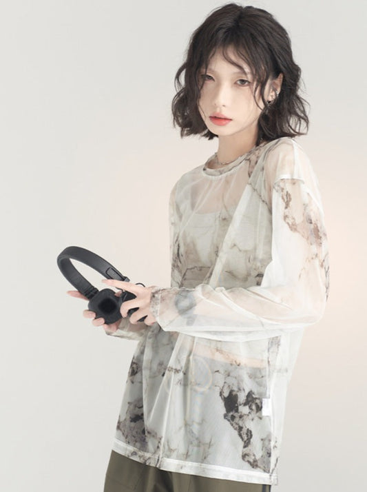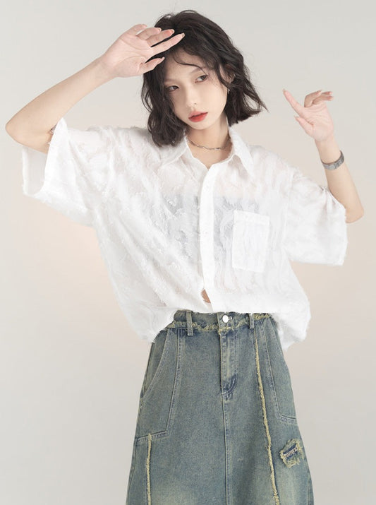 Chinesisches Hemd mit Stehkragen, durchsichtig