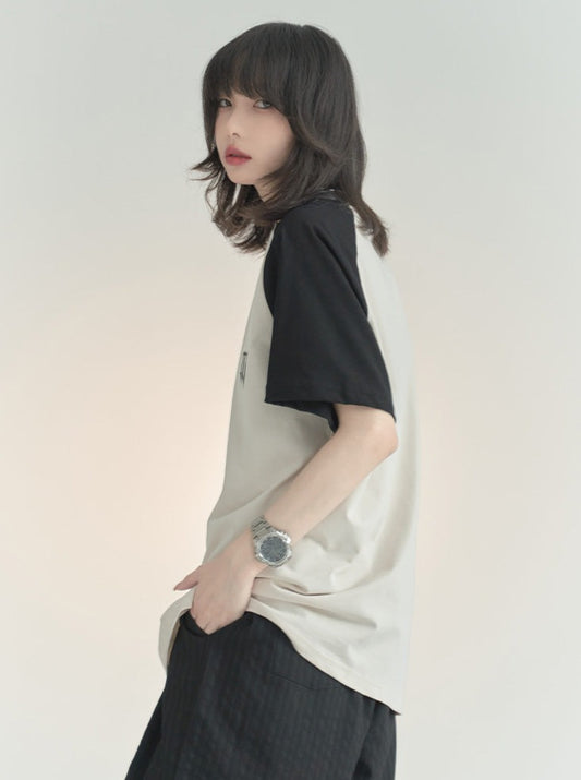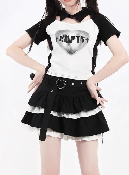 Schwarzes weißes Herz Druck geteilt Polo Farbe Top T-Shirt