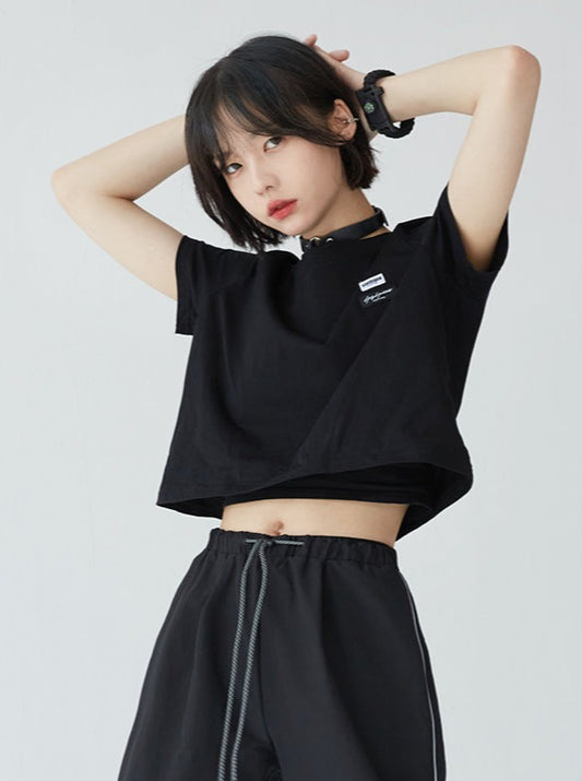 Kurzes Baumwoll-T-Shirt mit Ein-Punkt-Logo