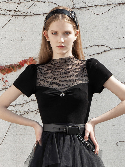 Punk Star V-Ausschnitt Kette Französisch Ärmel T-shirt