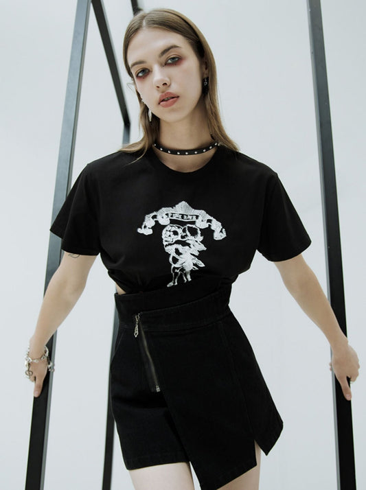 T-Shirt mit Schal und Punk-Print als Einzelstück