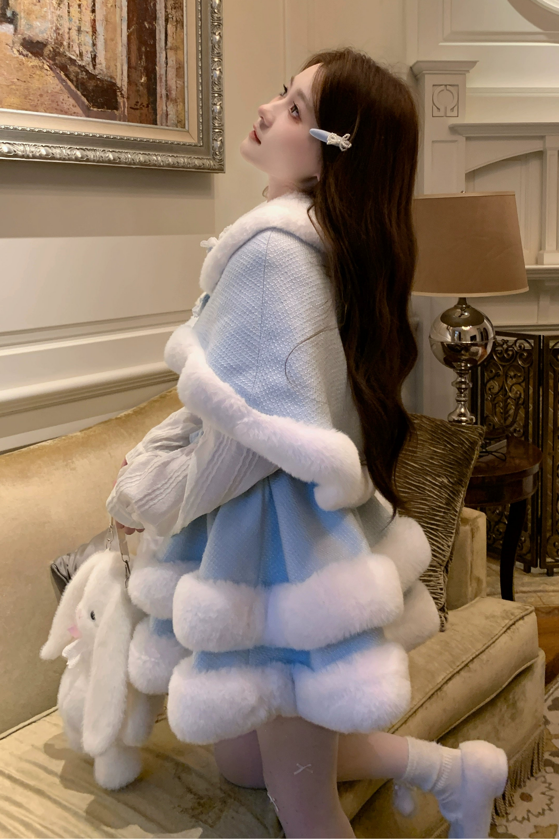 ライトブルーファーカラーケープ+サスペンダースカート+シャツ