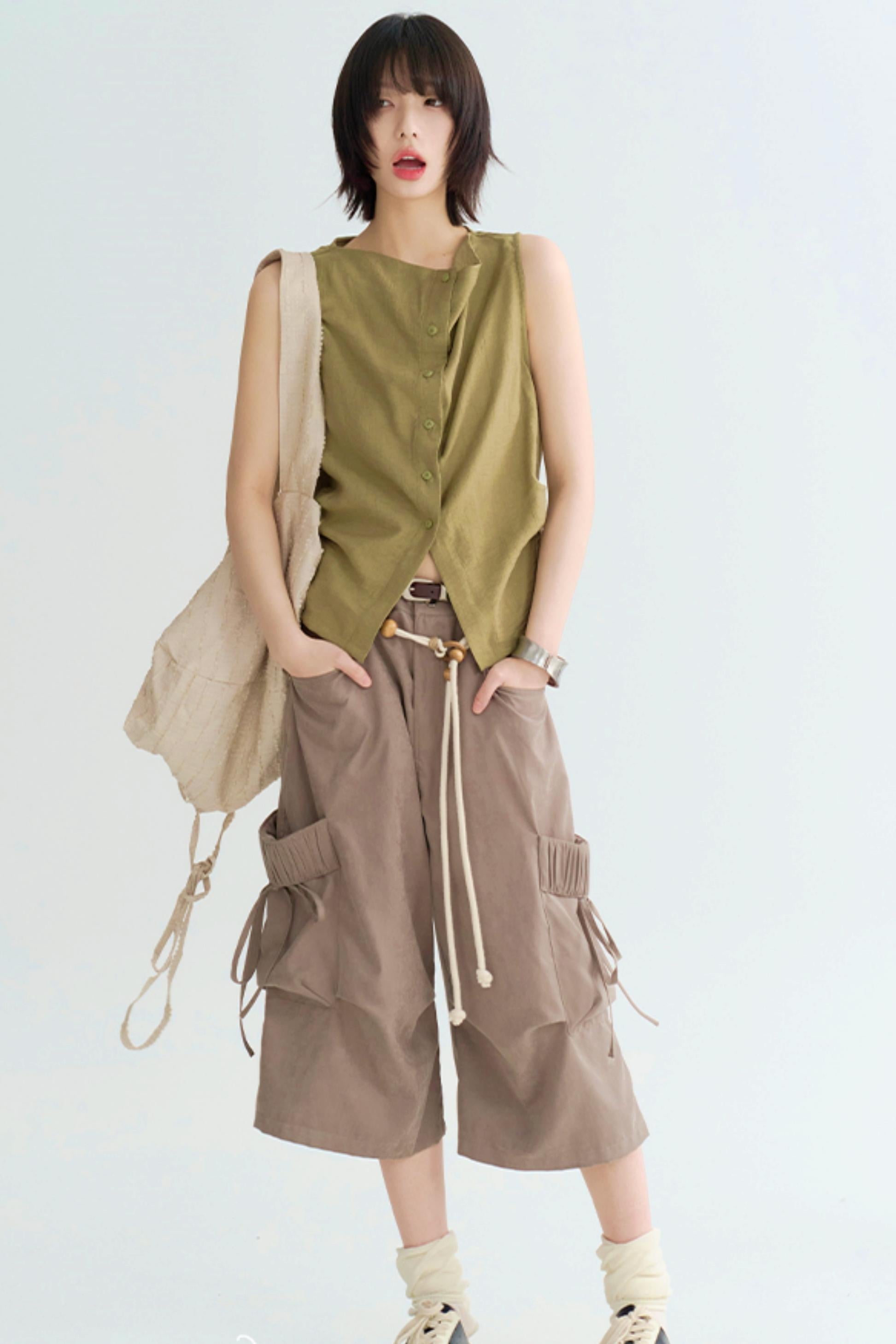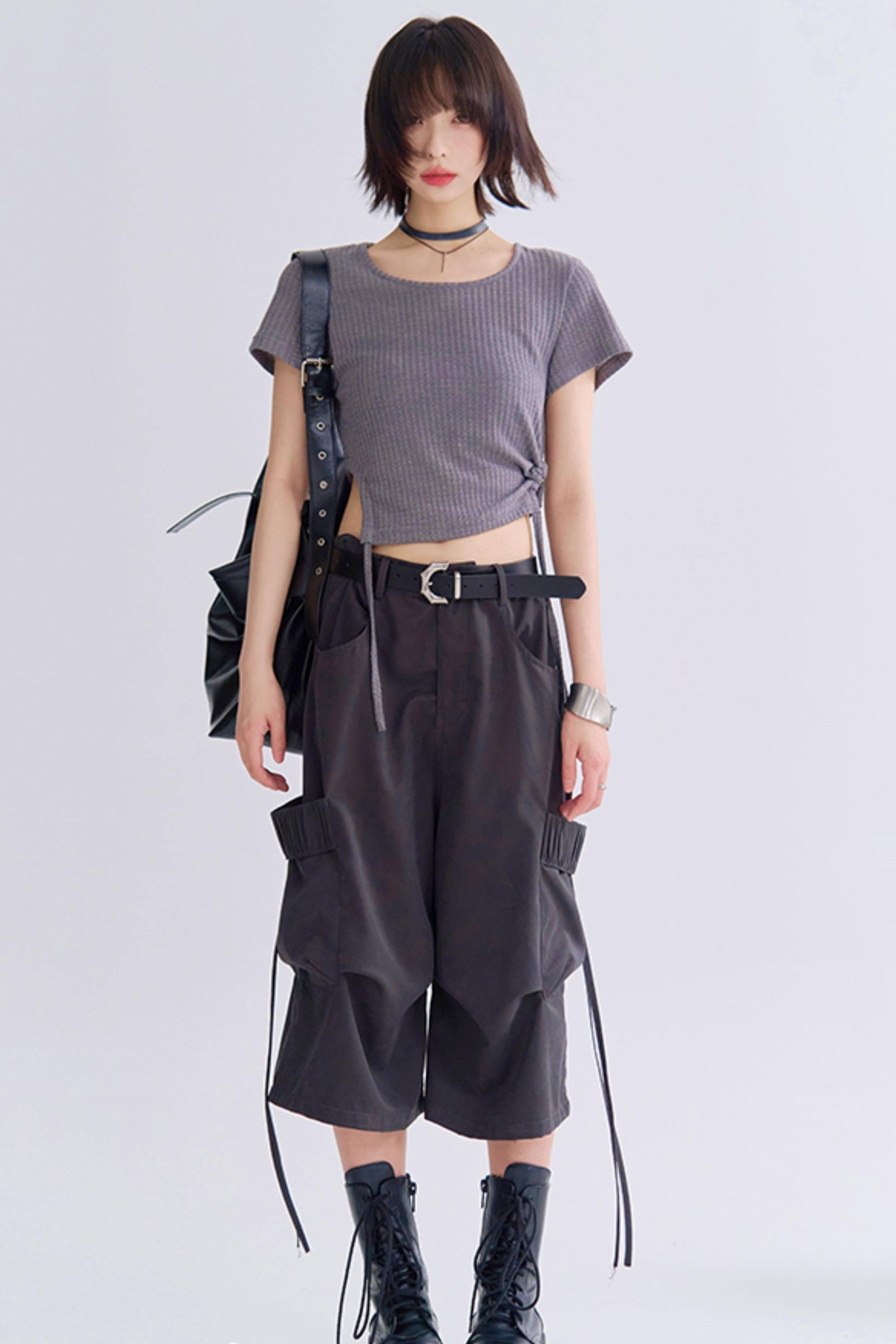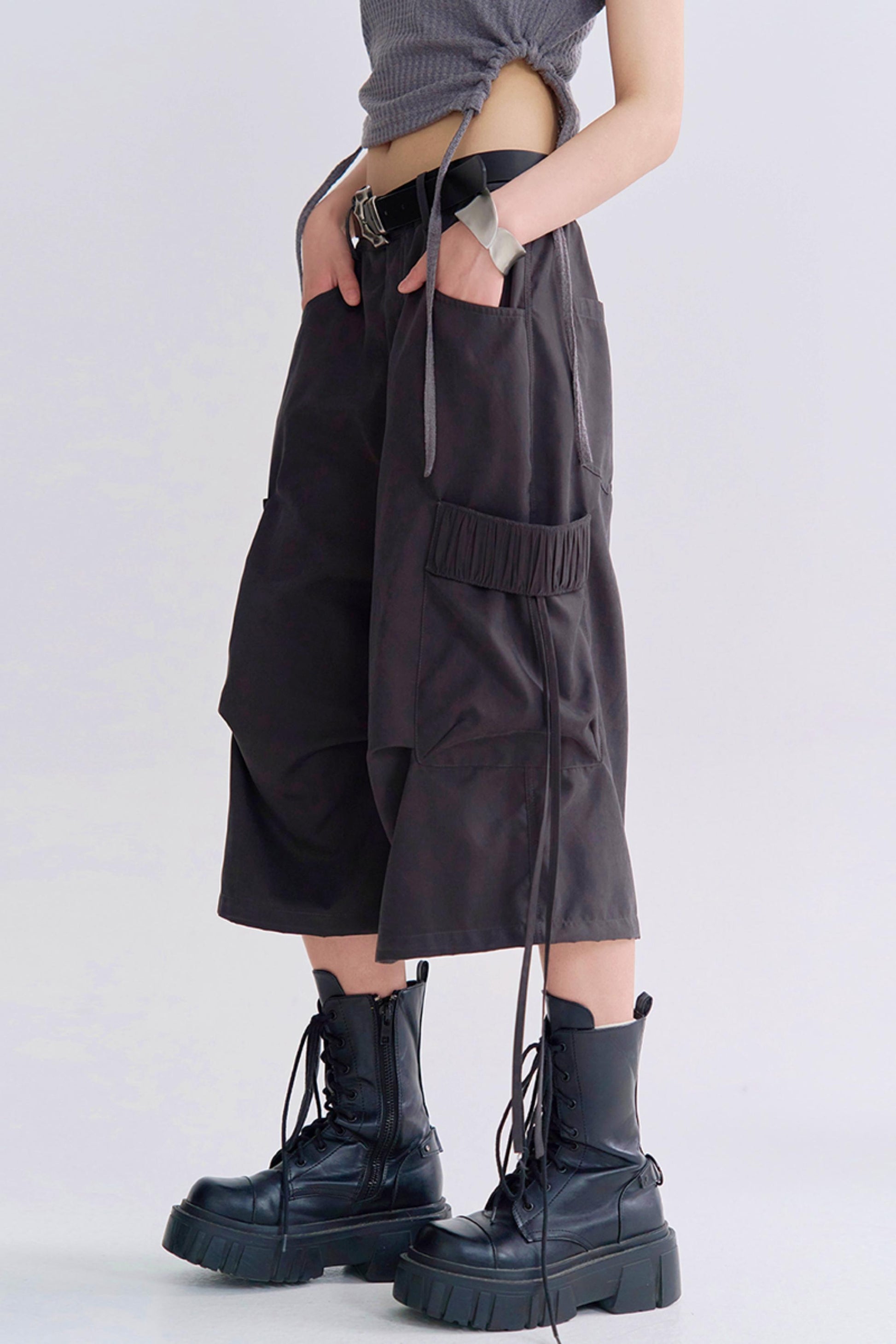 ルーズフィットクロップドカーゴトラウザーズパンツ