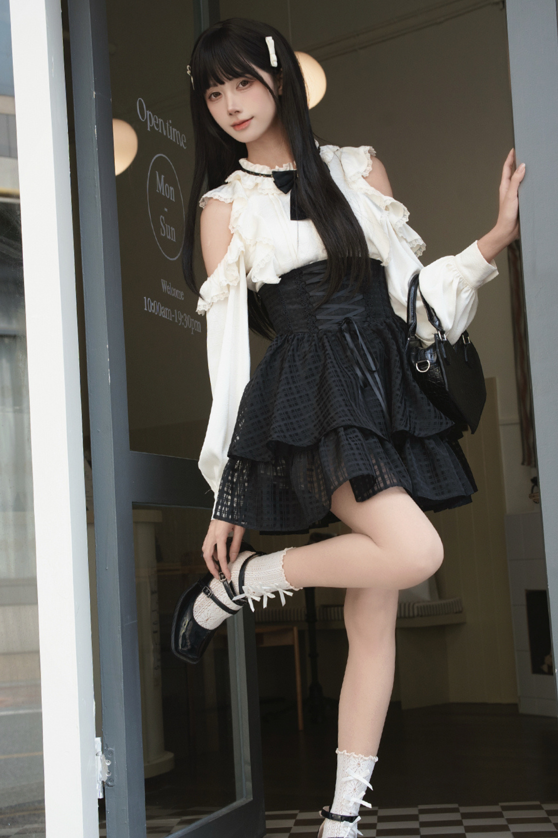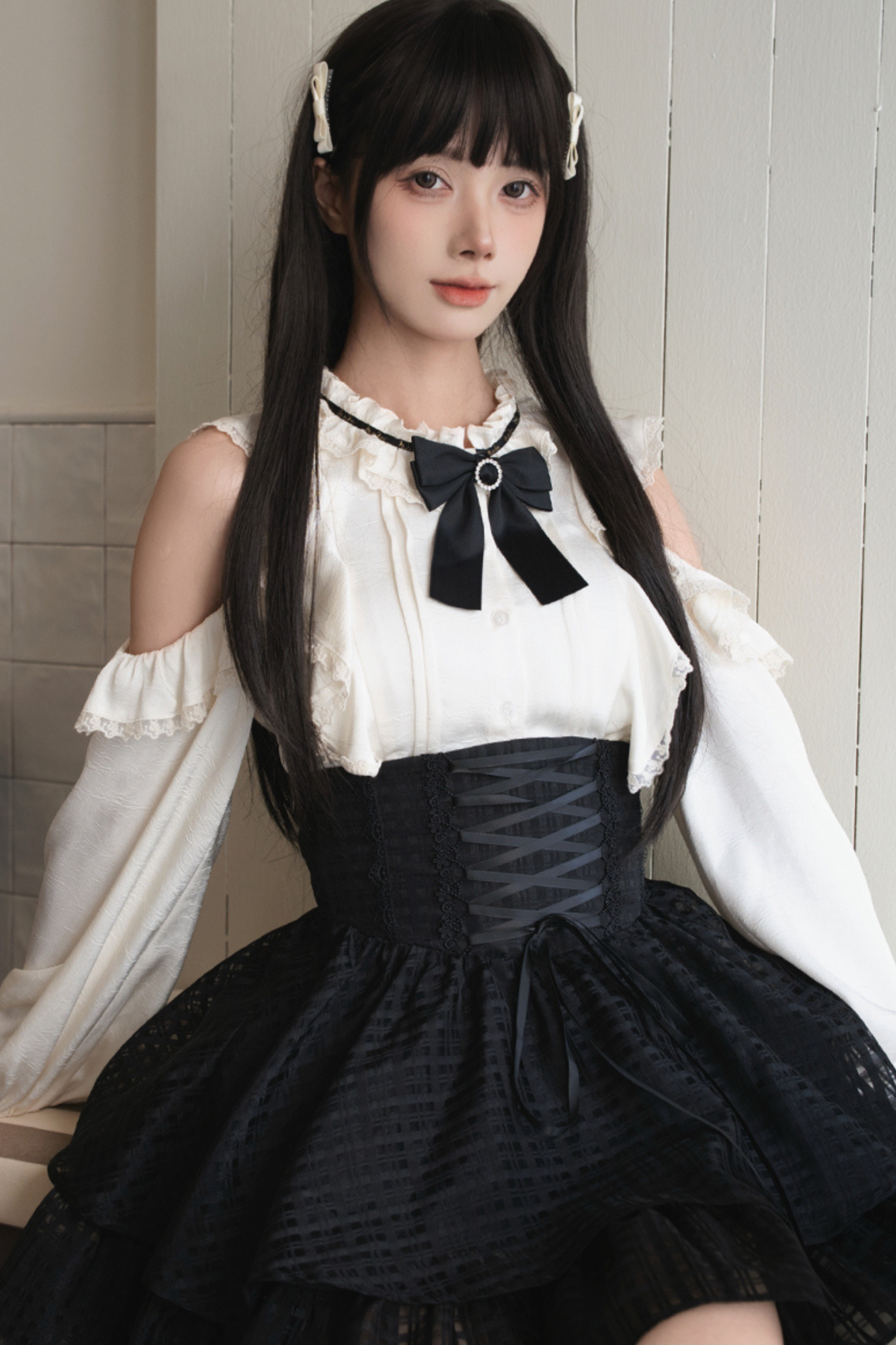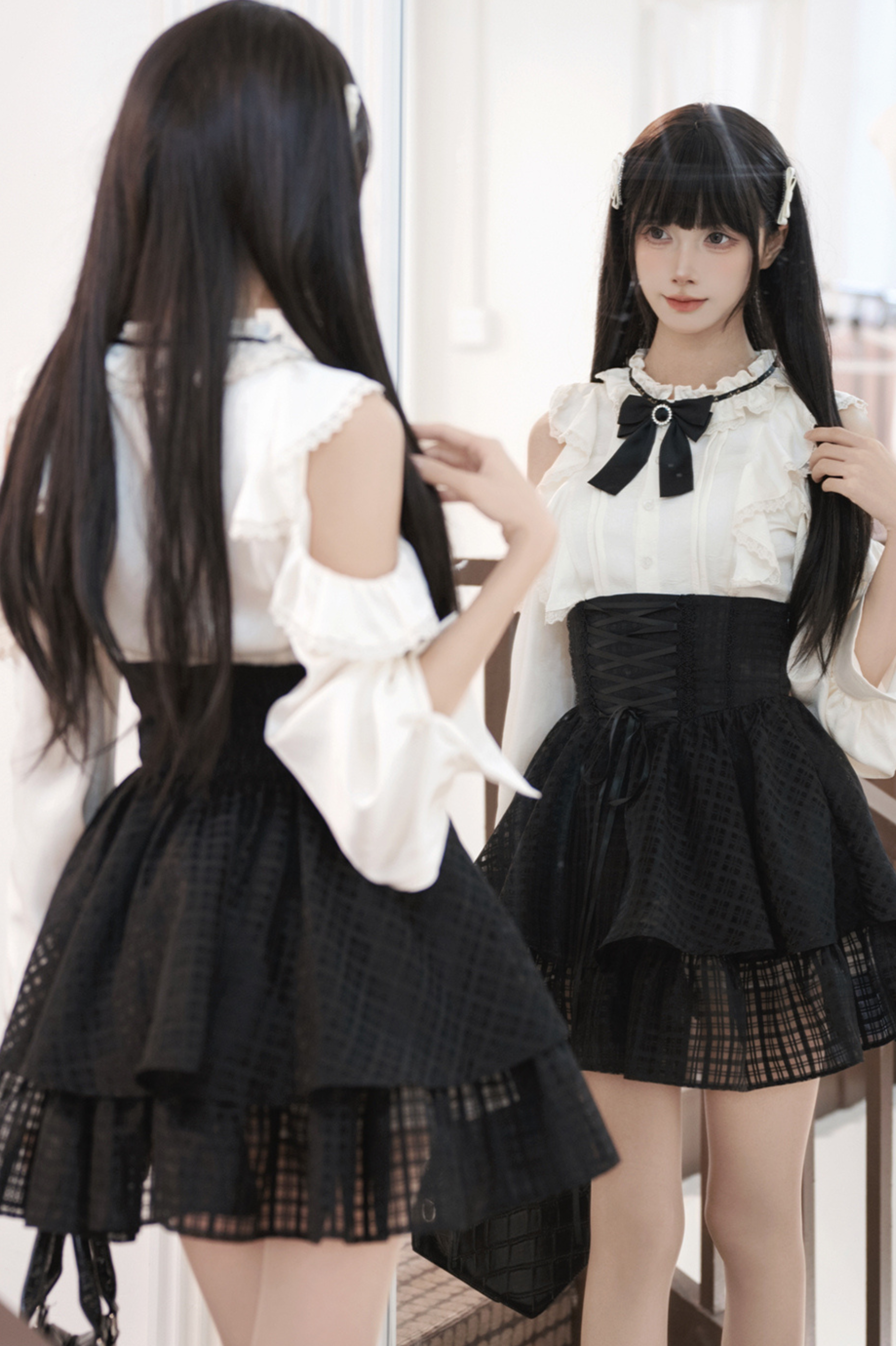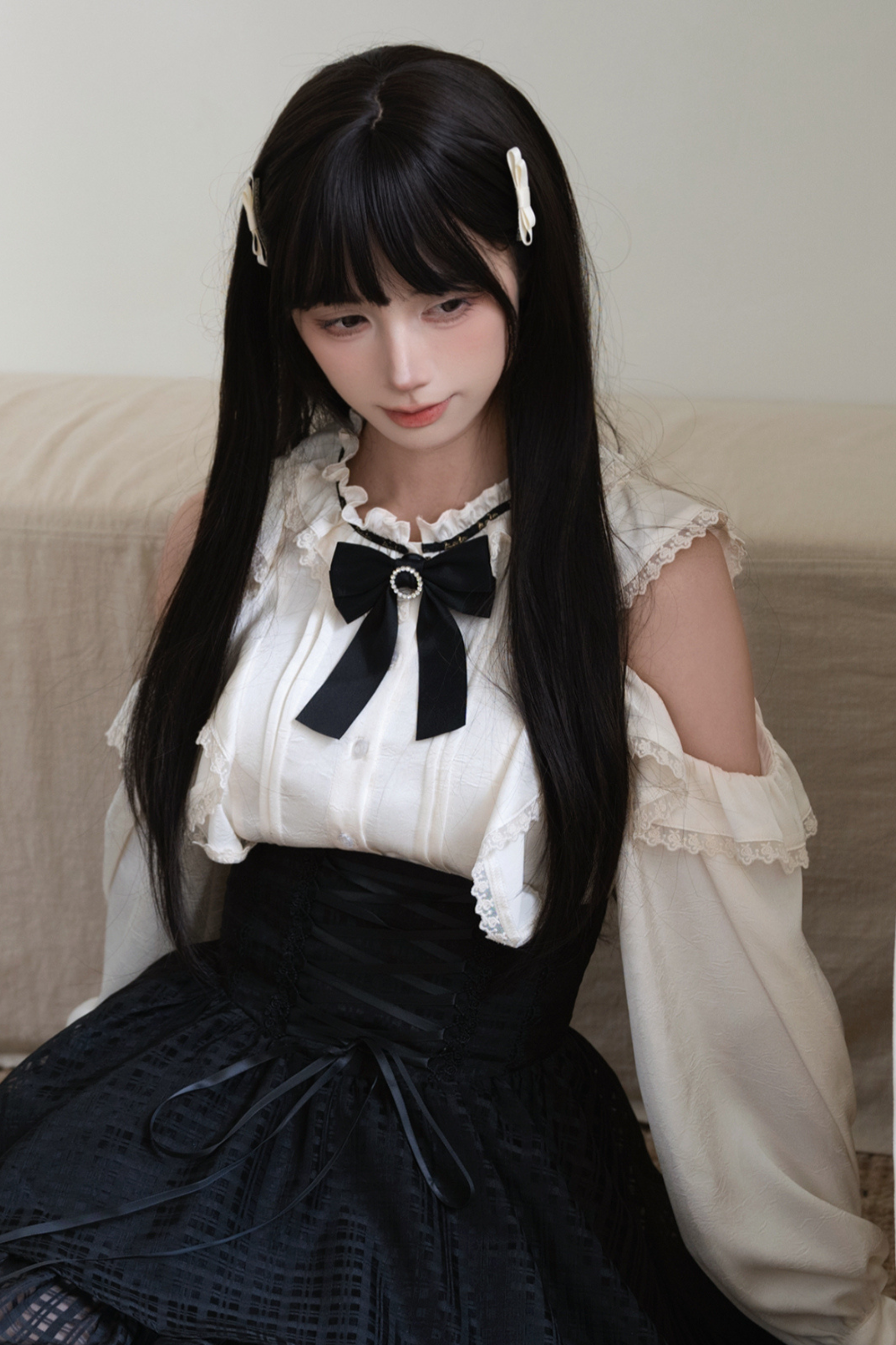 レーストリムエレガントシャツ+スカート