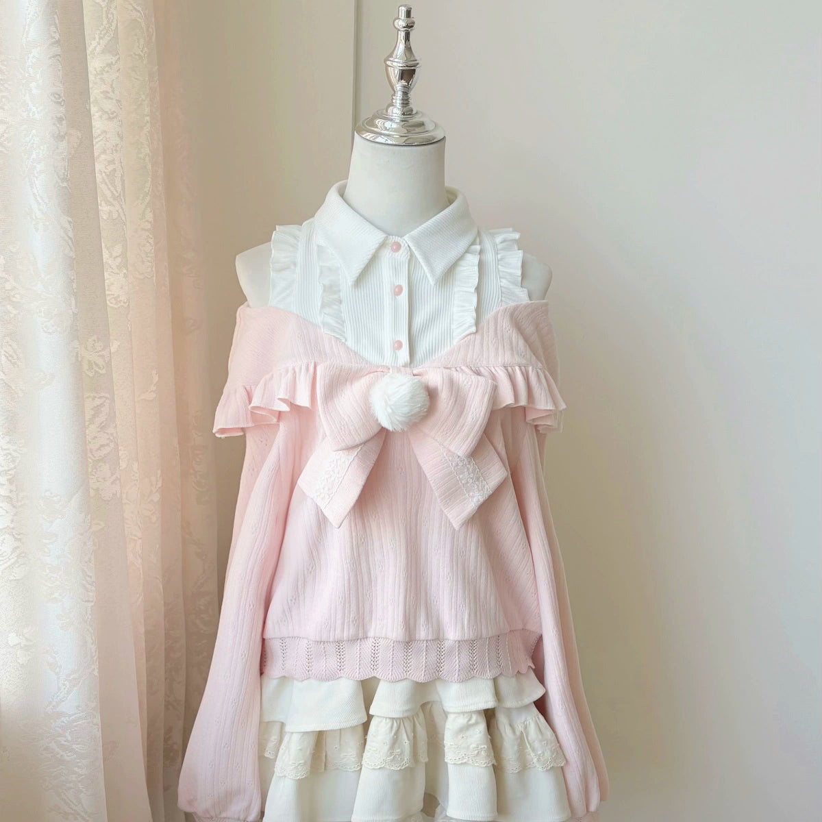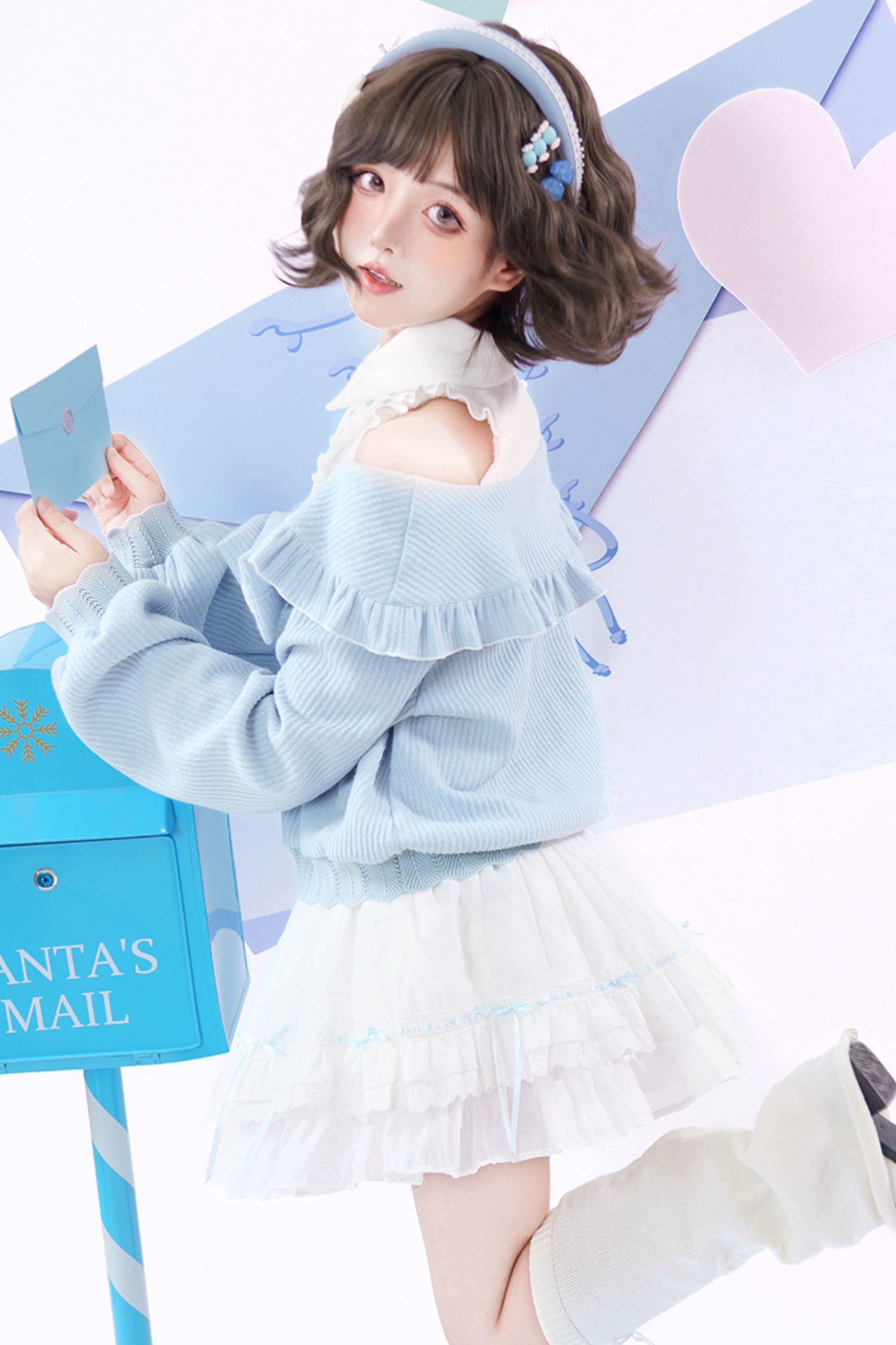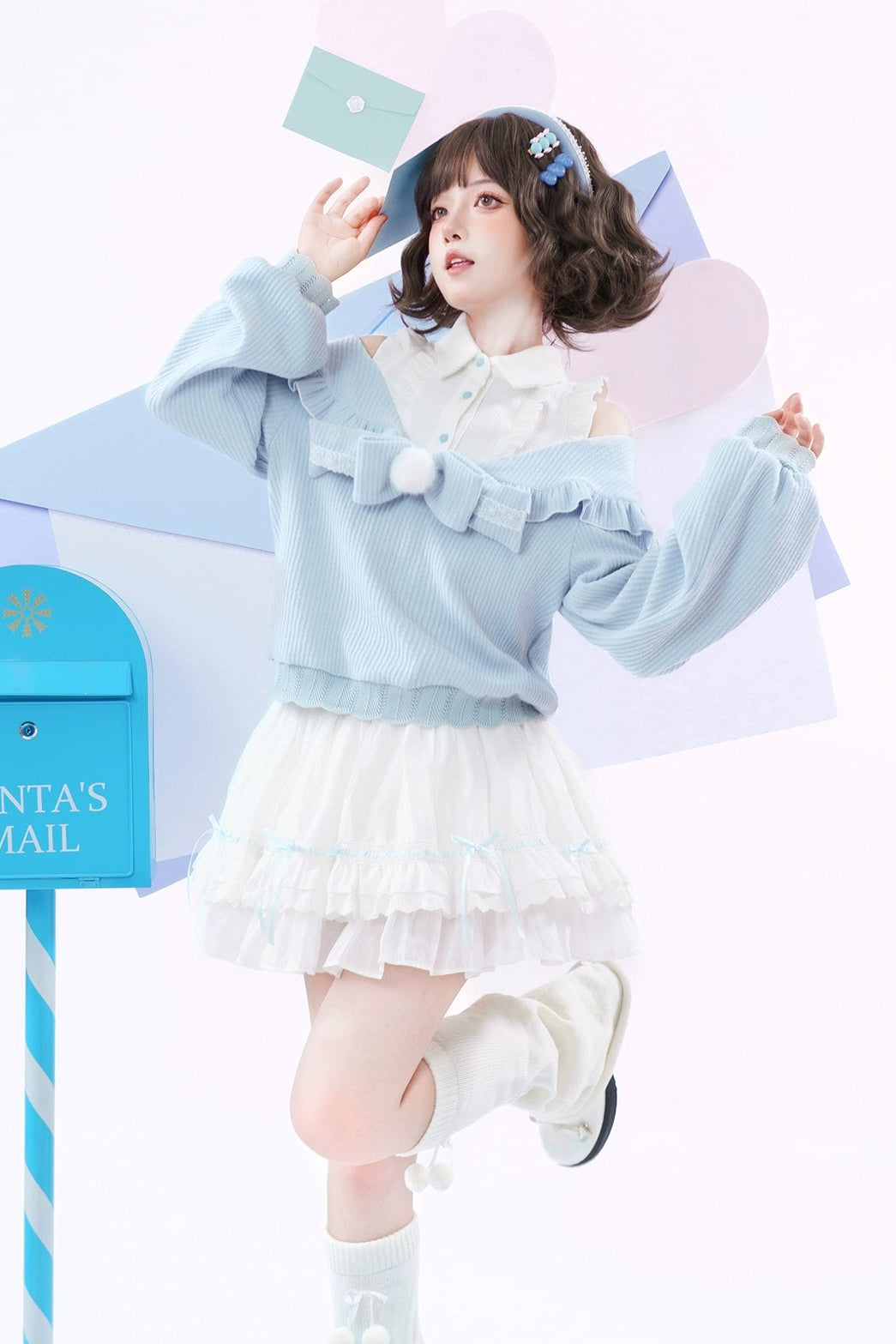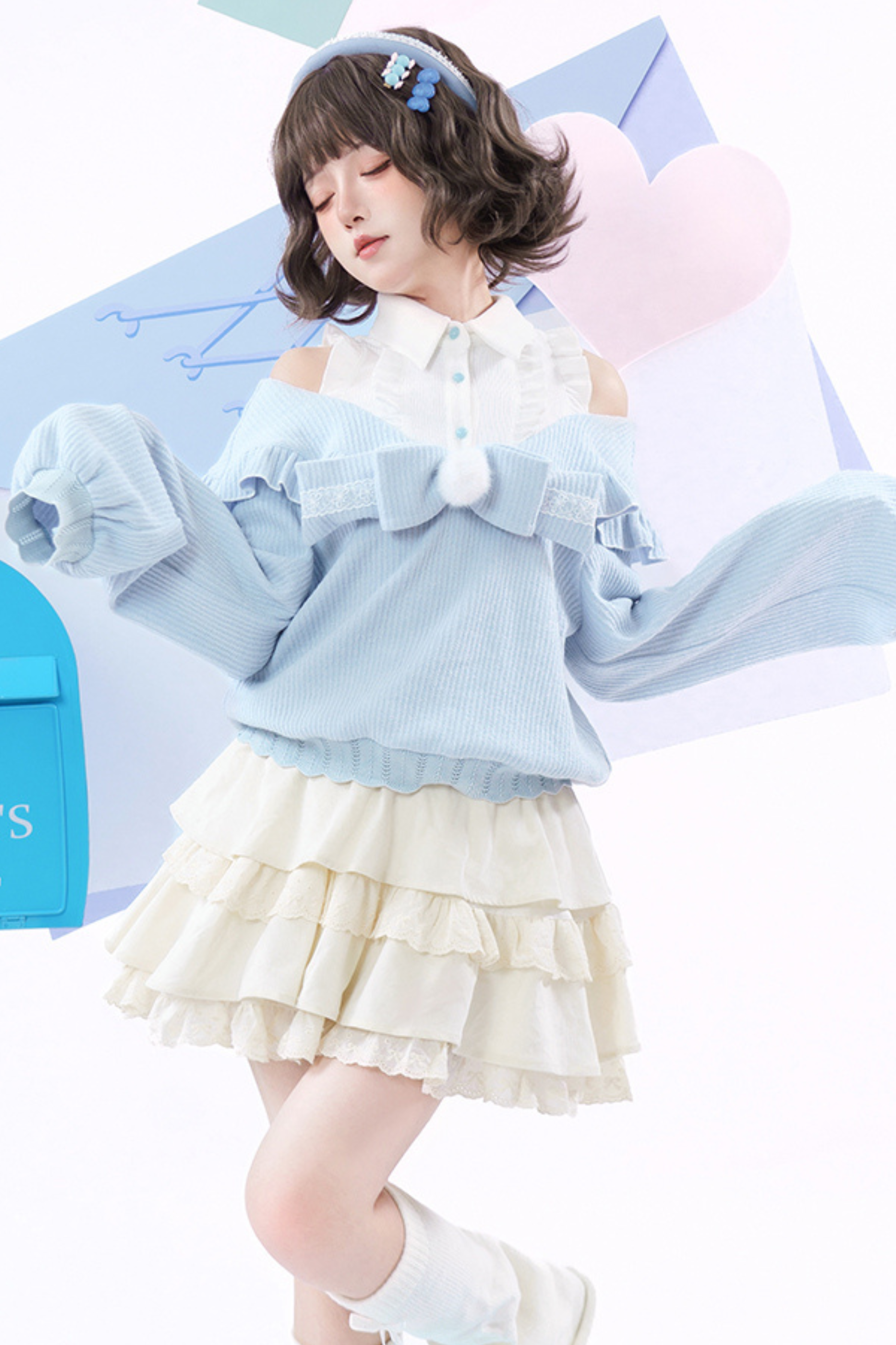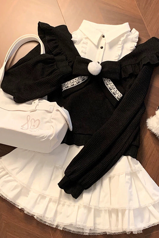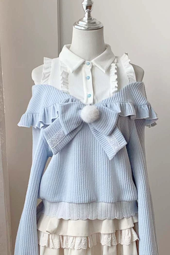 キュートオフショルダーセーター+スカート