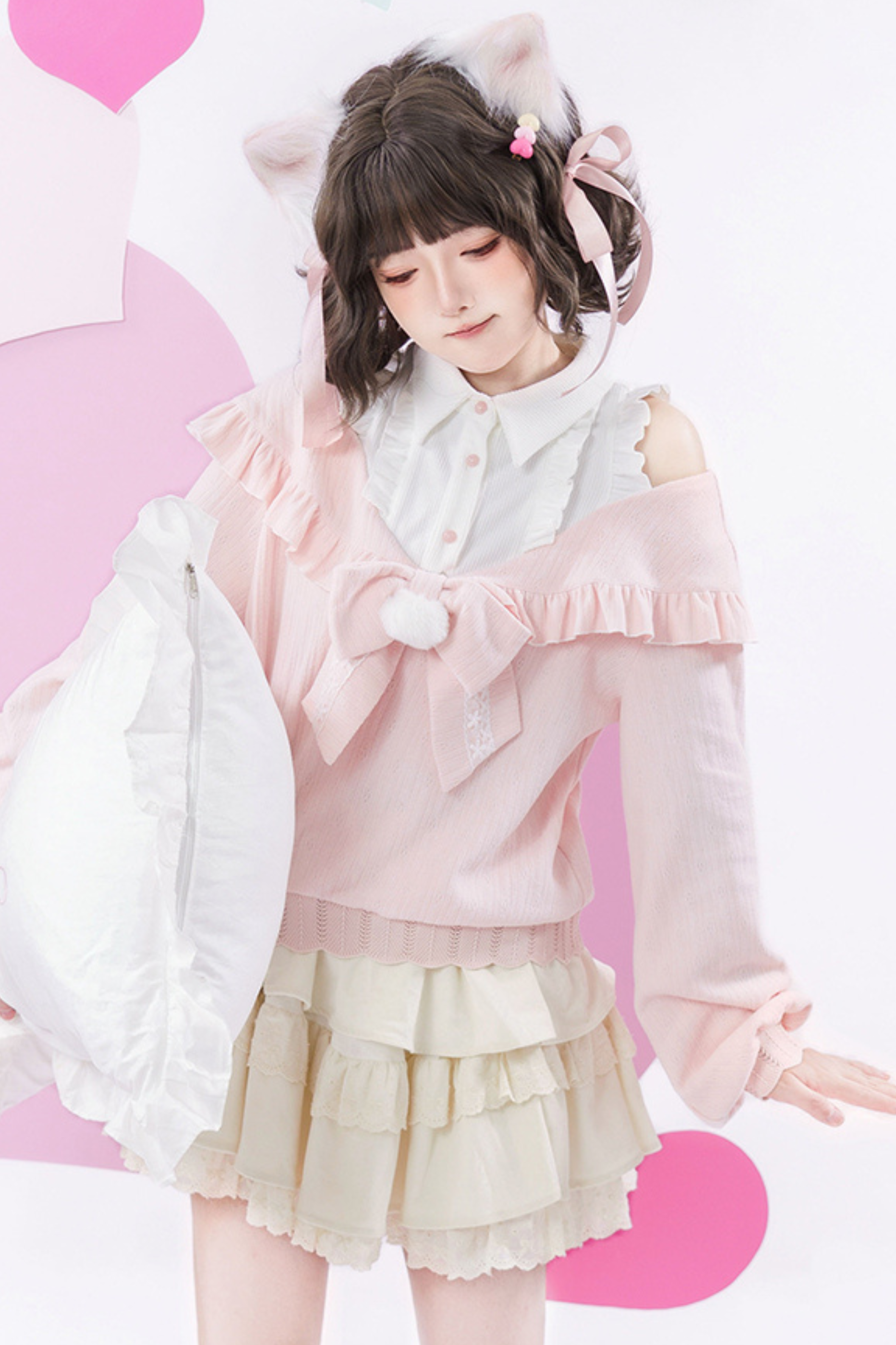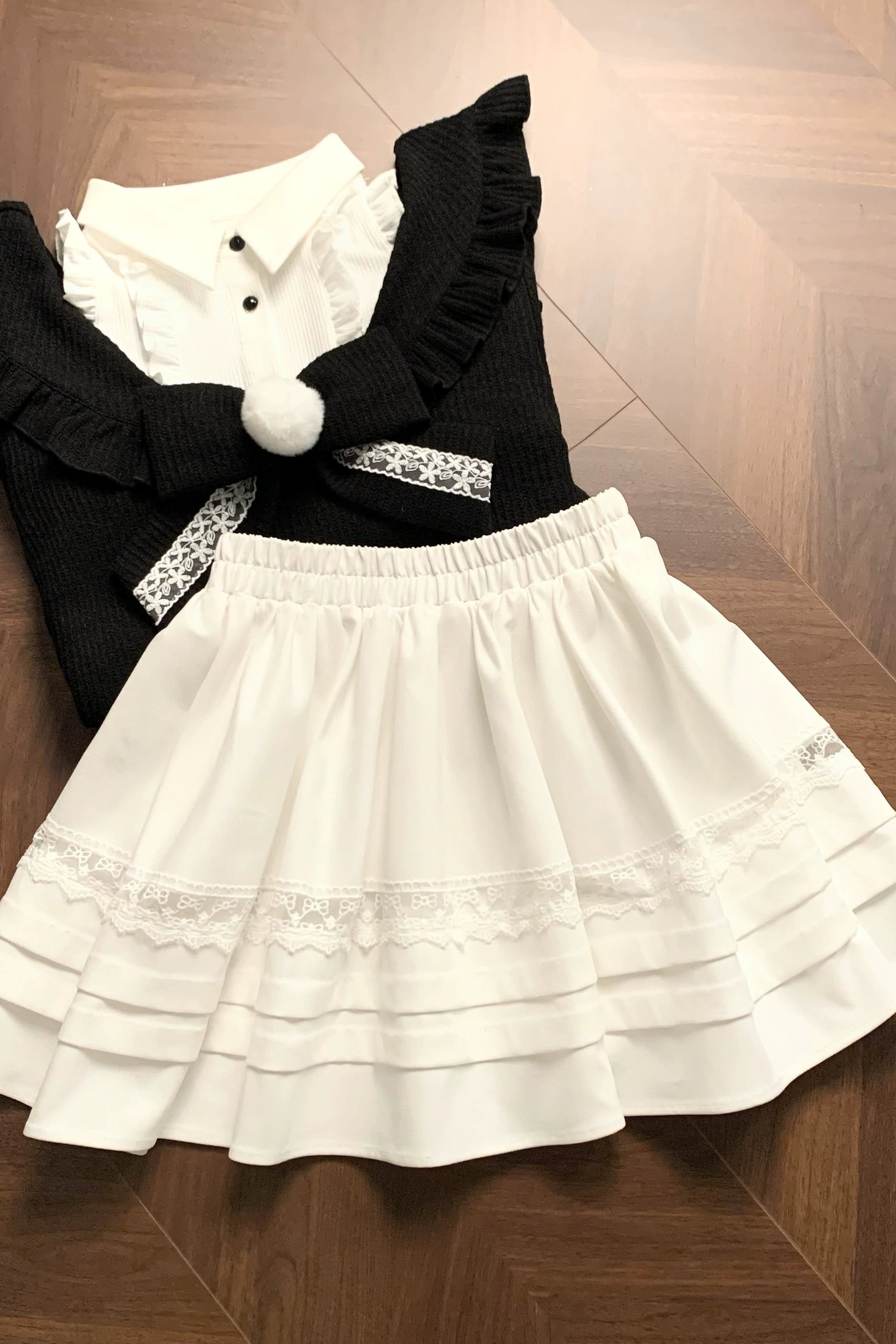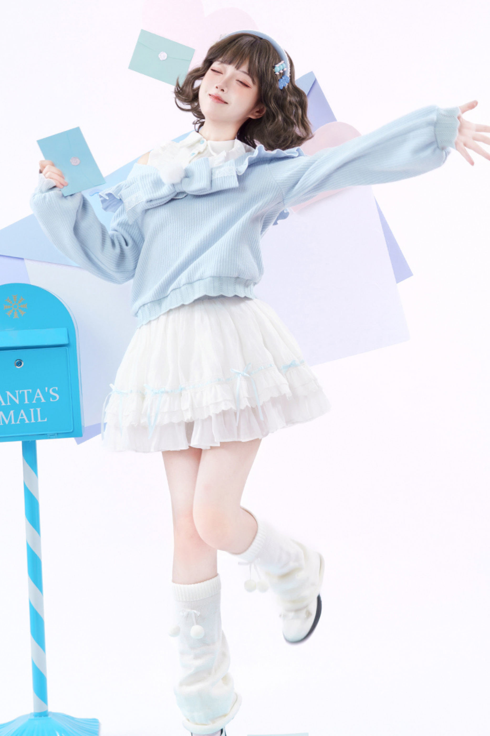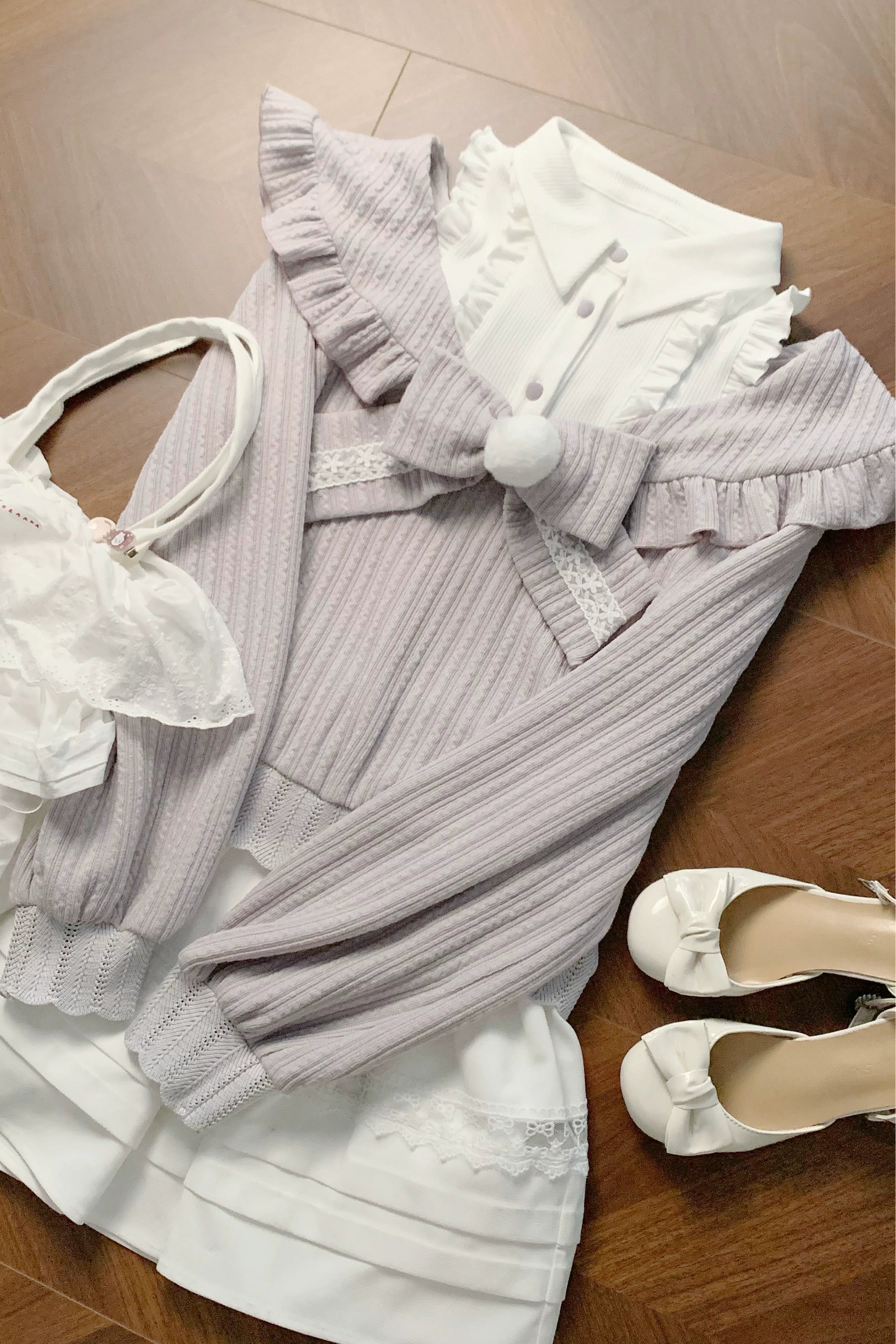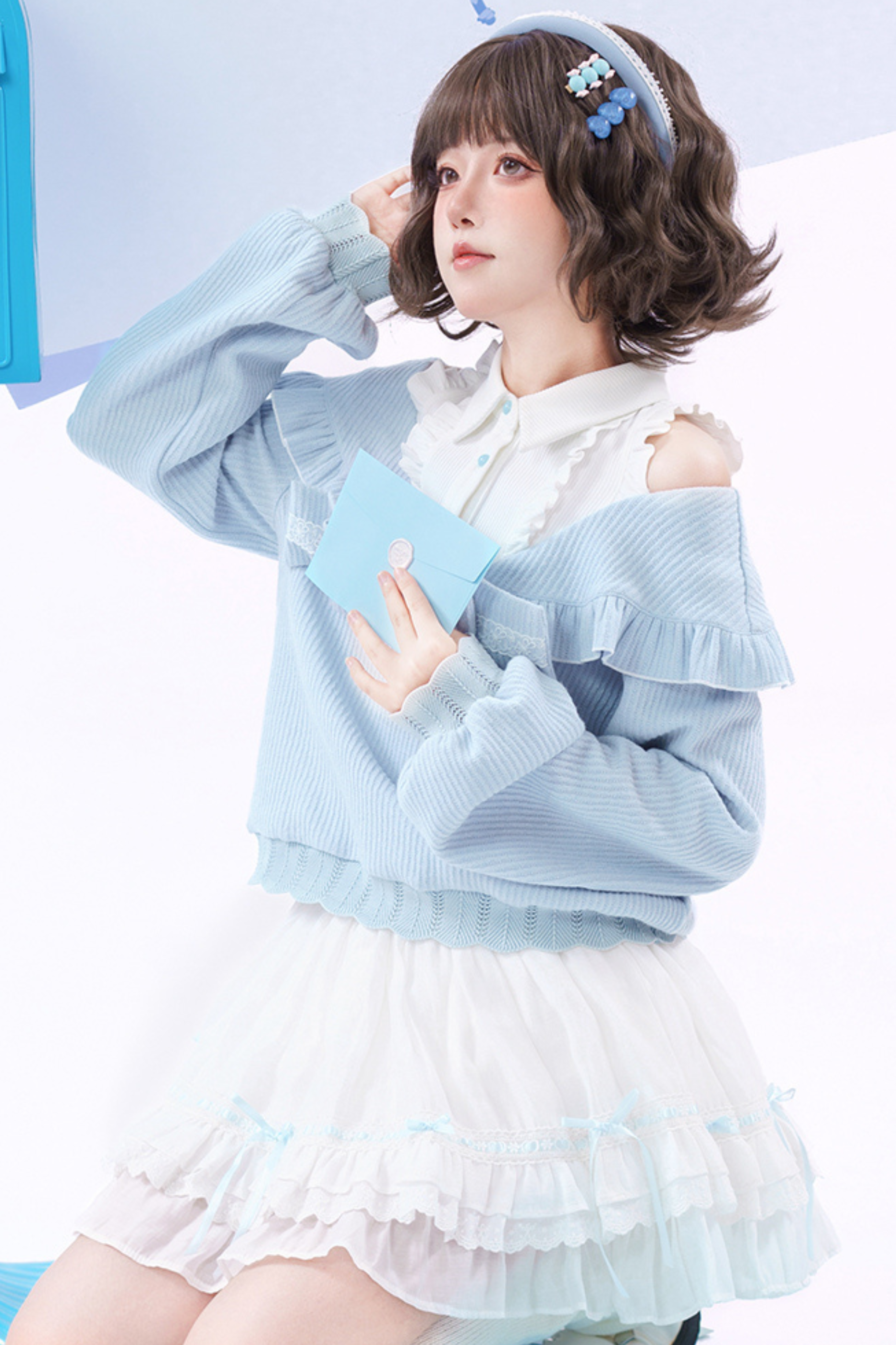 キュートオフショルダーセーター+スカート
