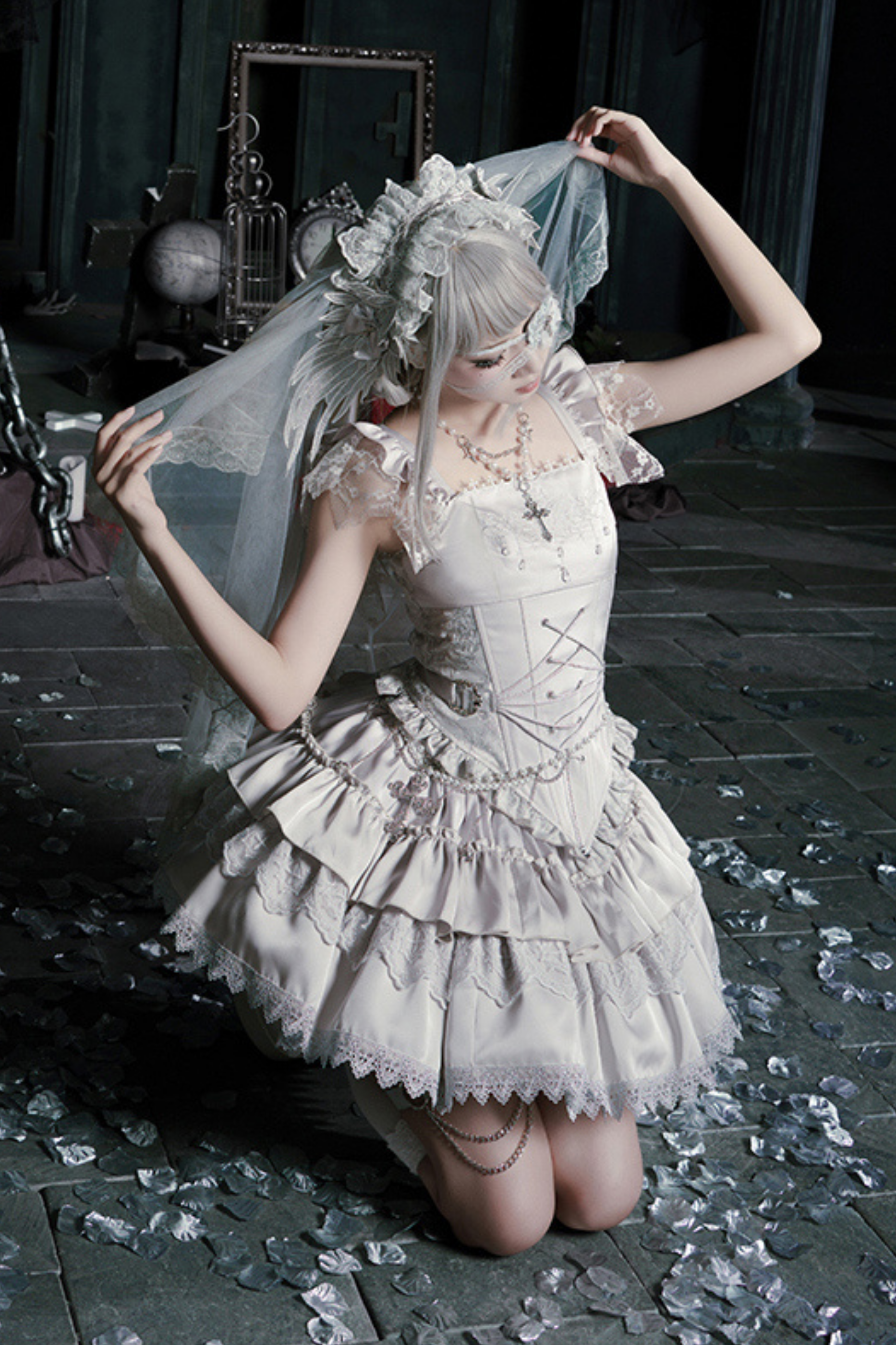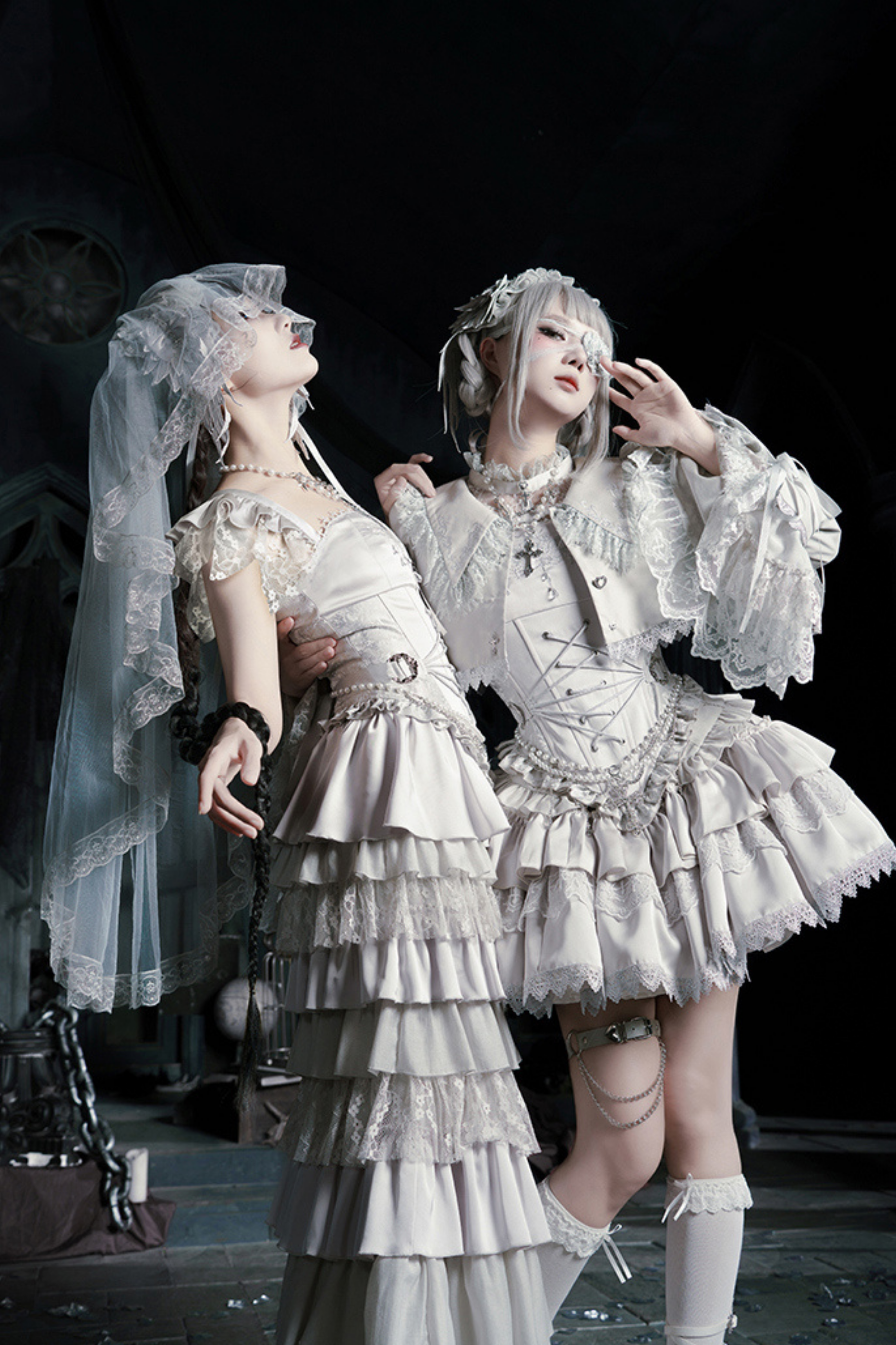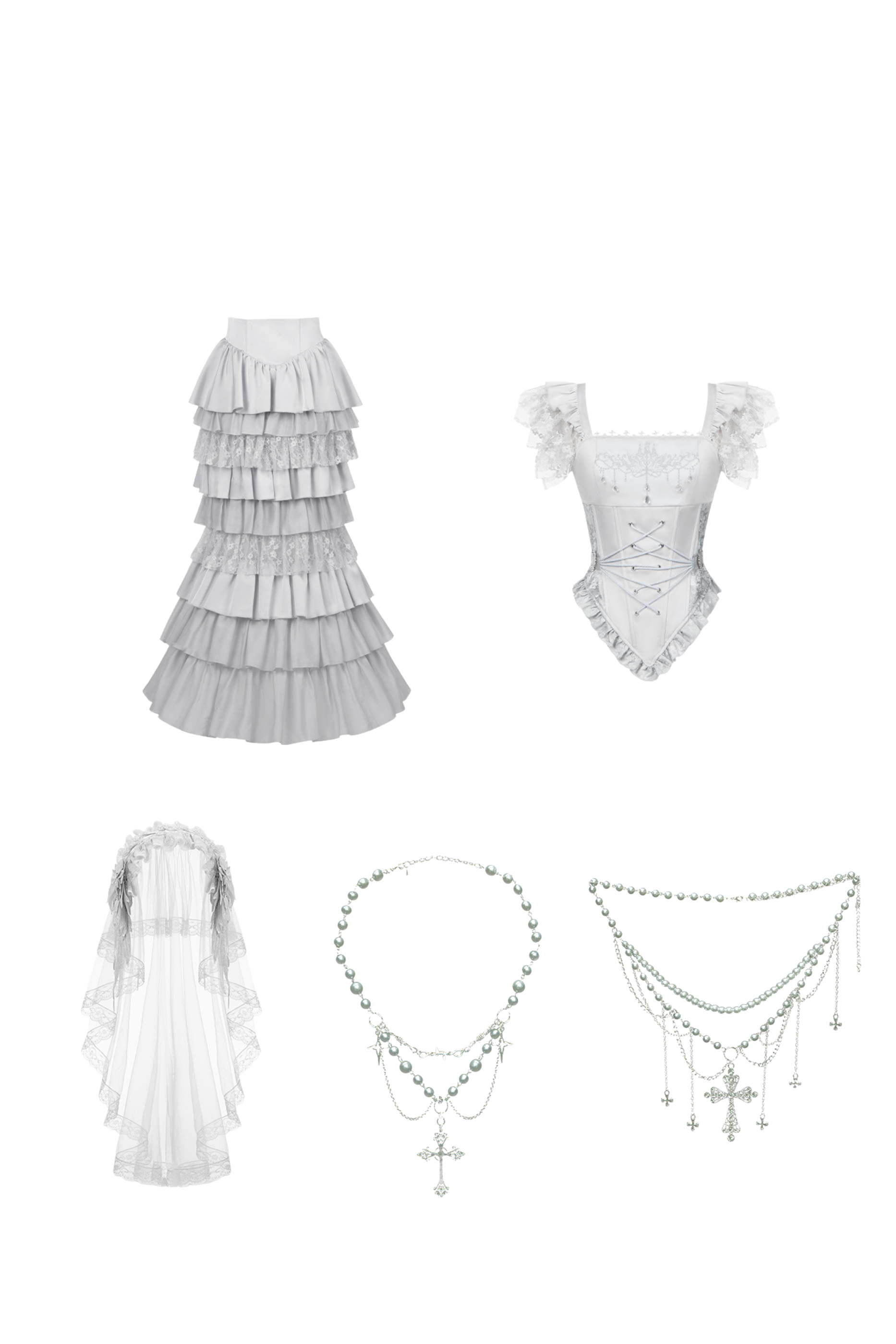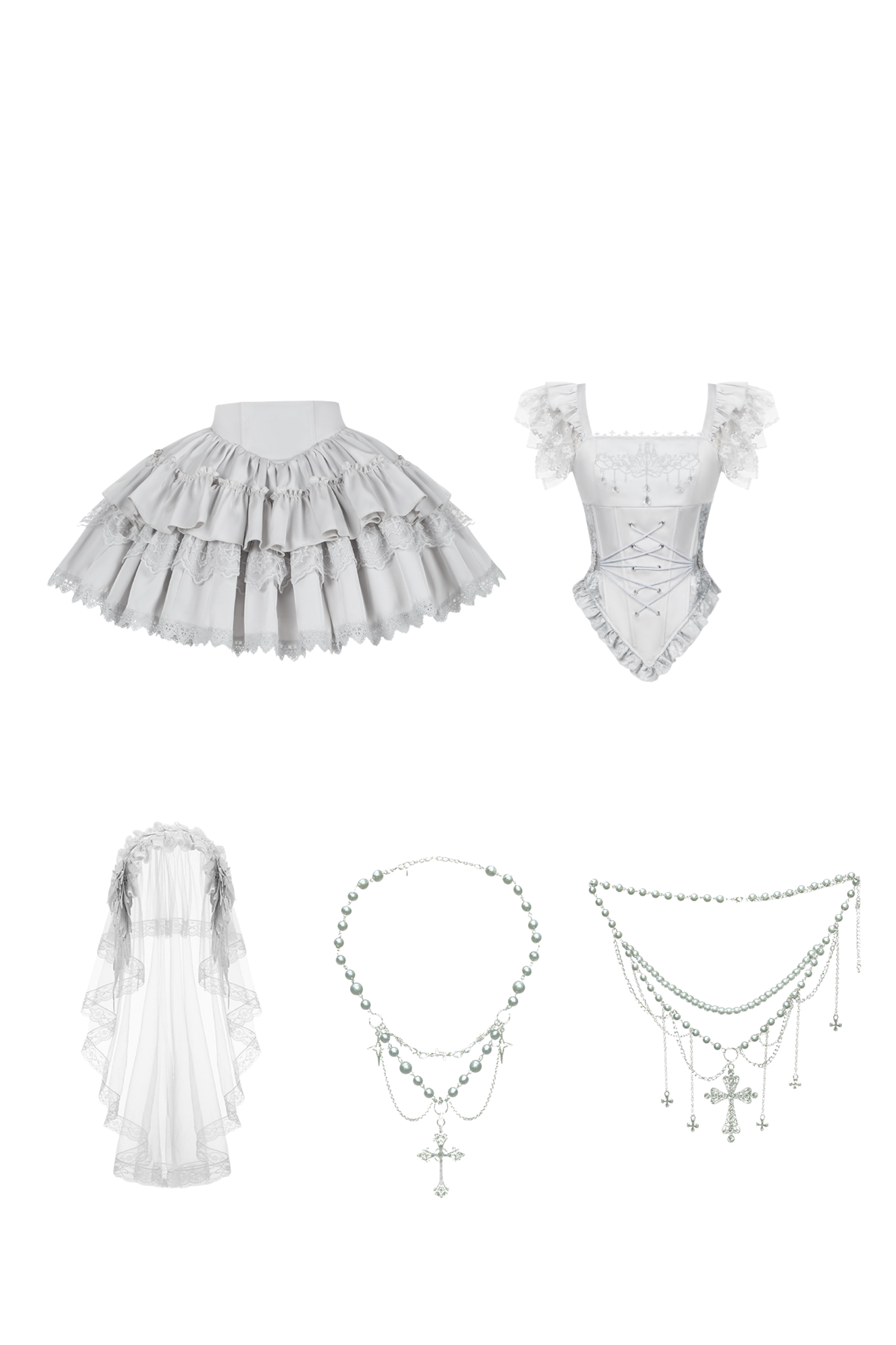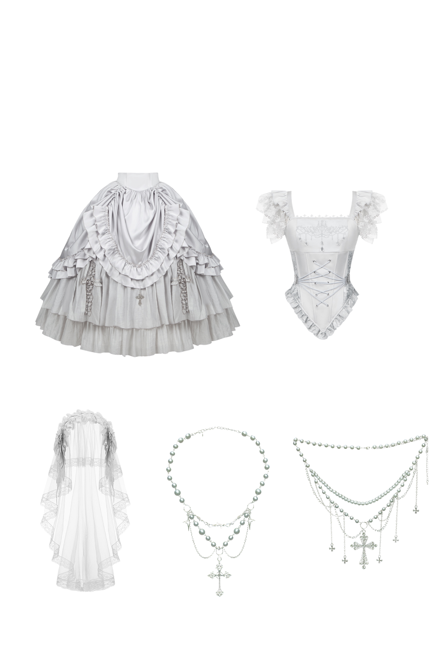 ゴシックロリータスカート+コルセット+ベール+ネックレス+ウエストチェーン