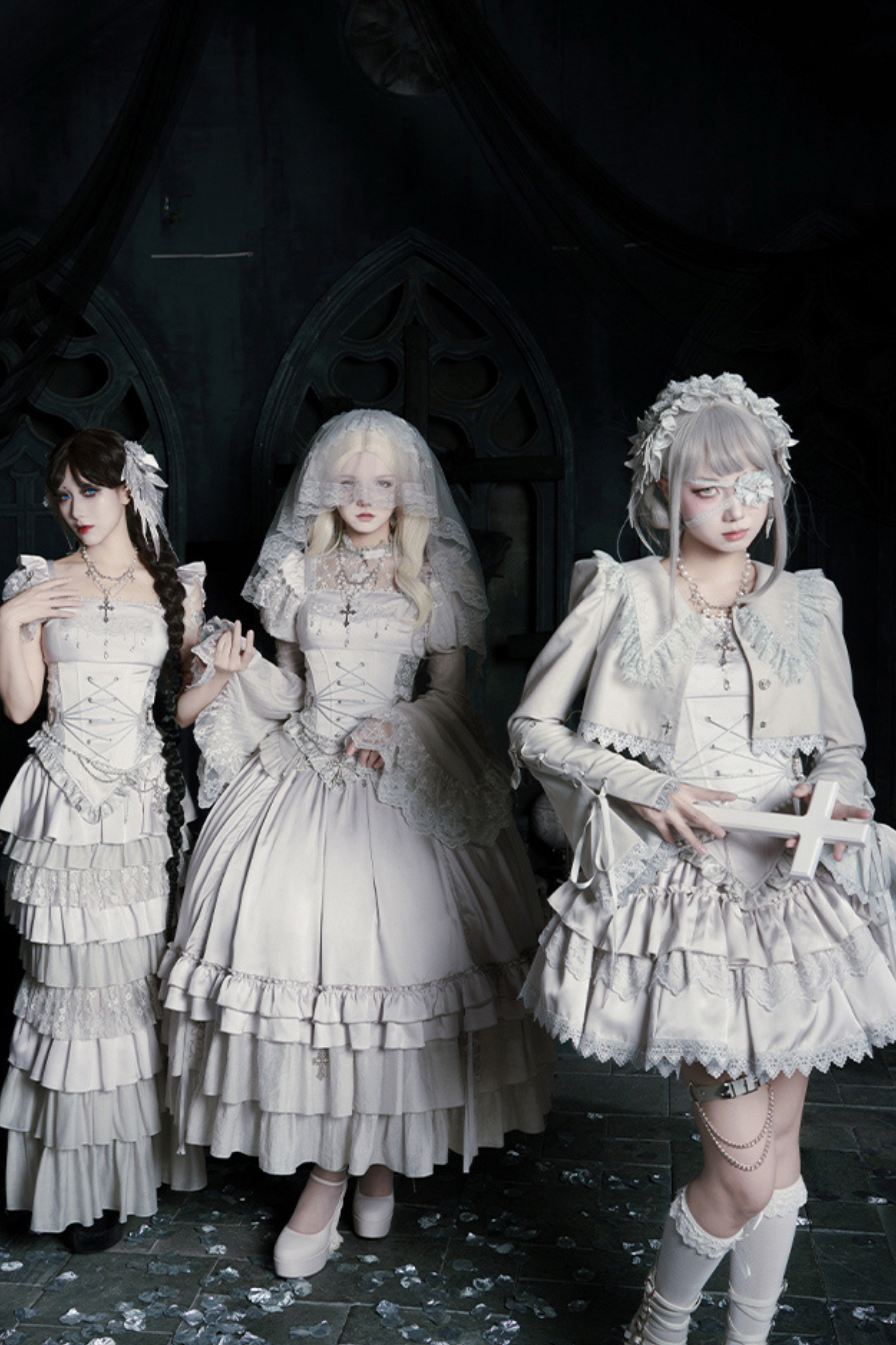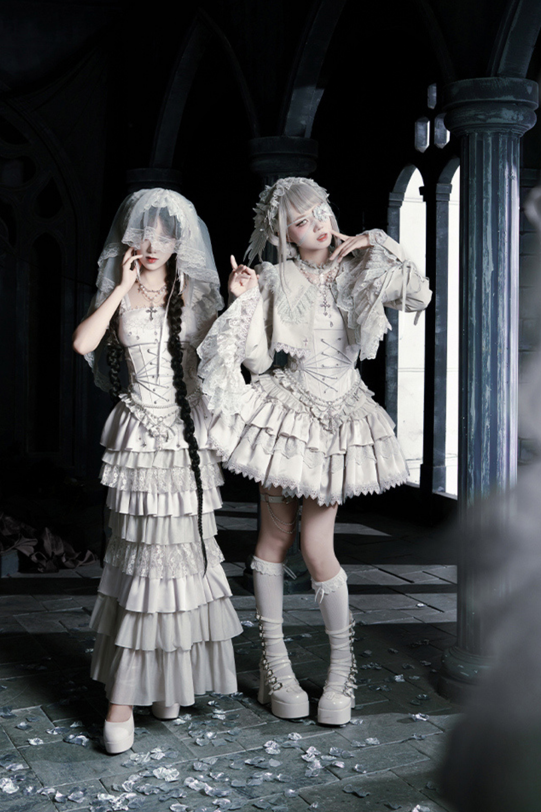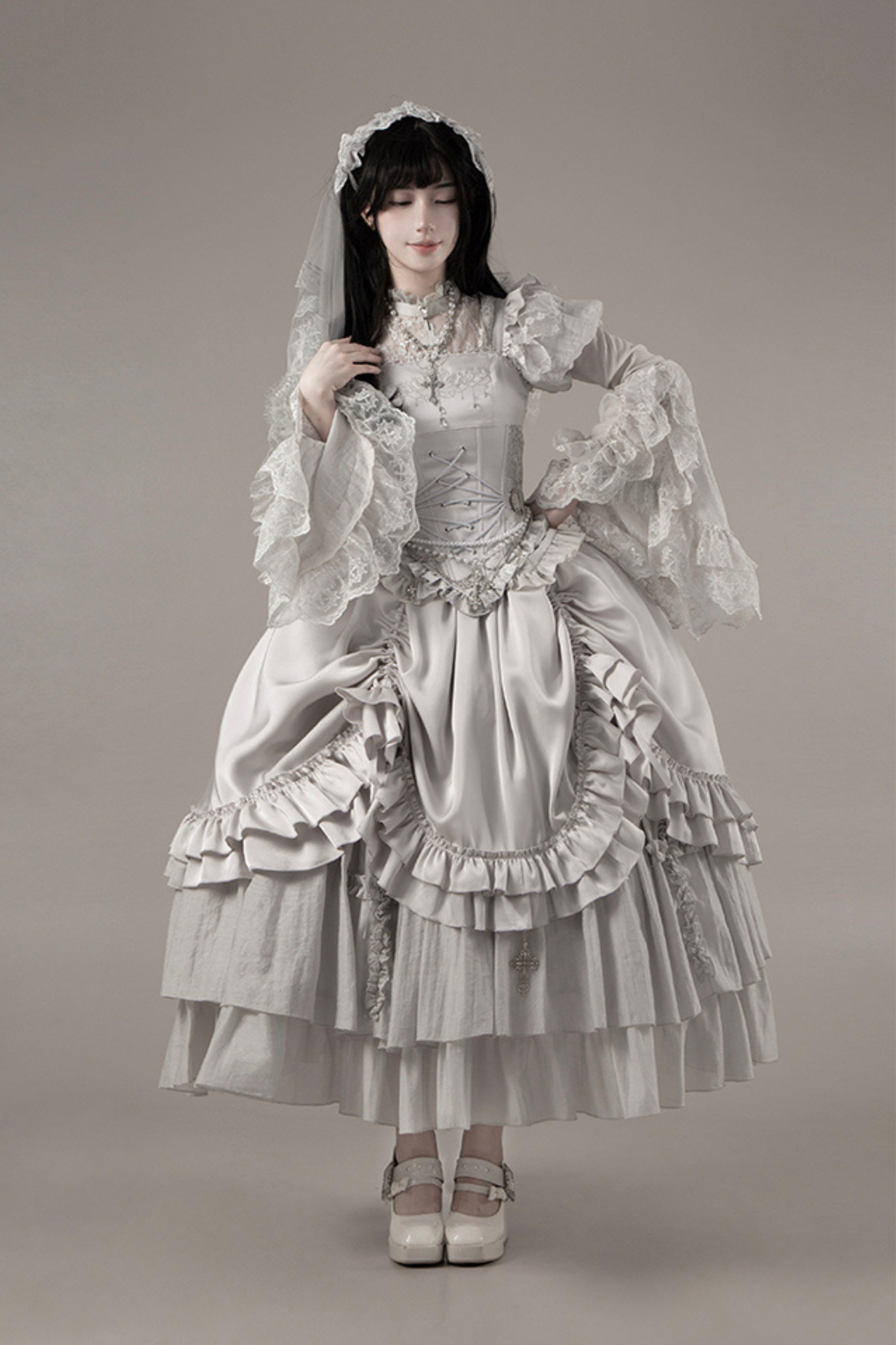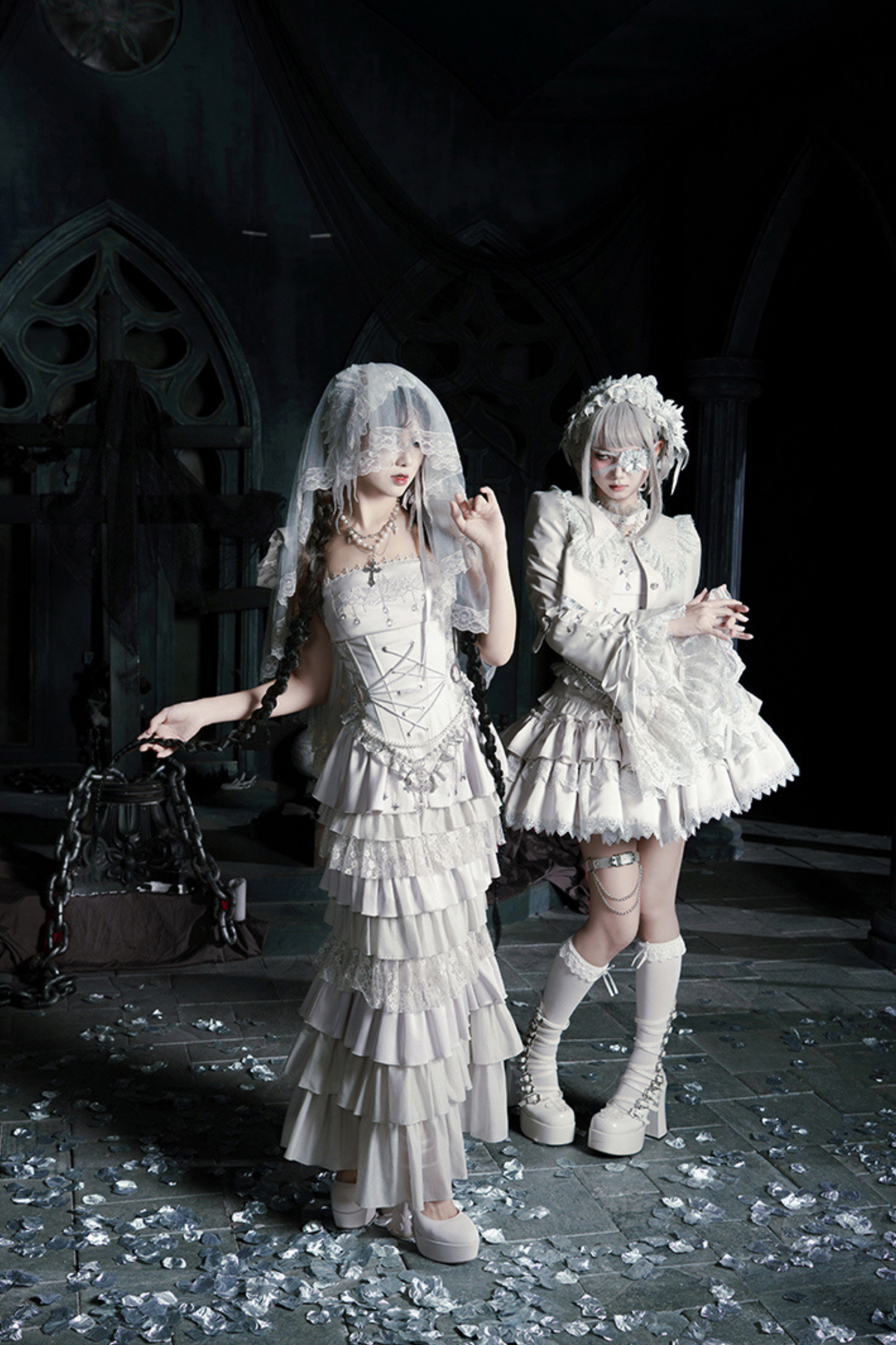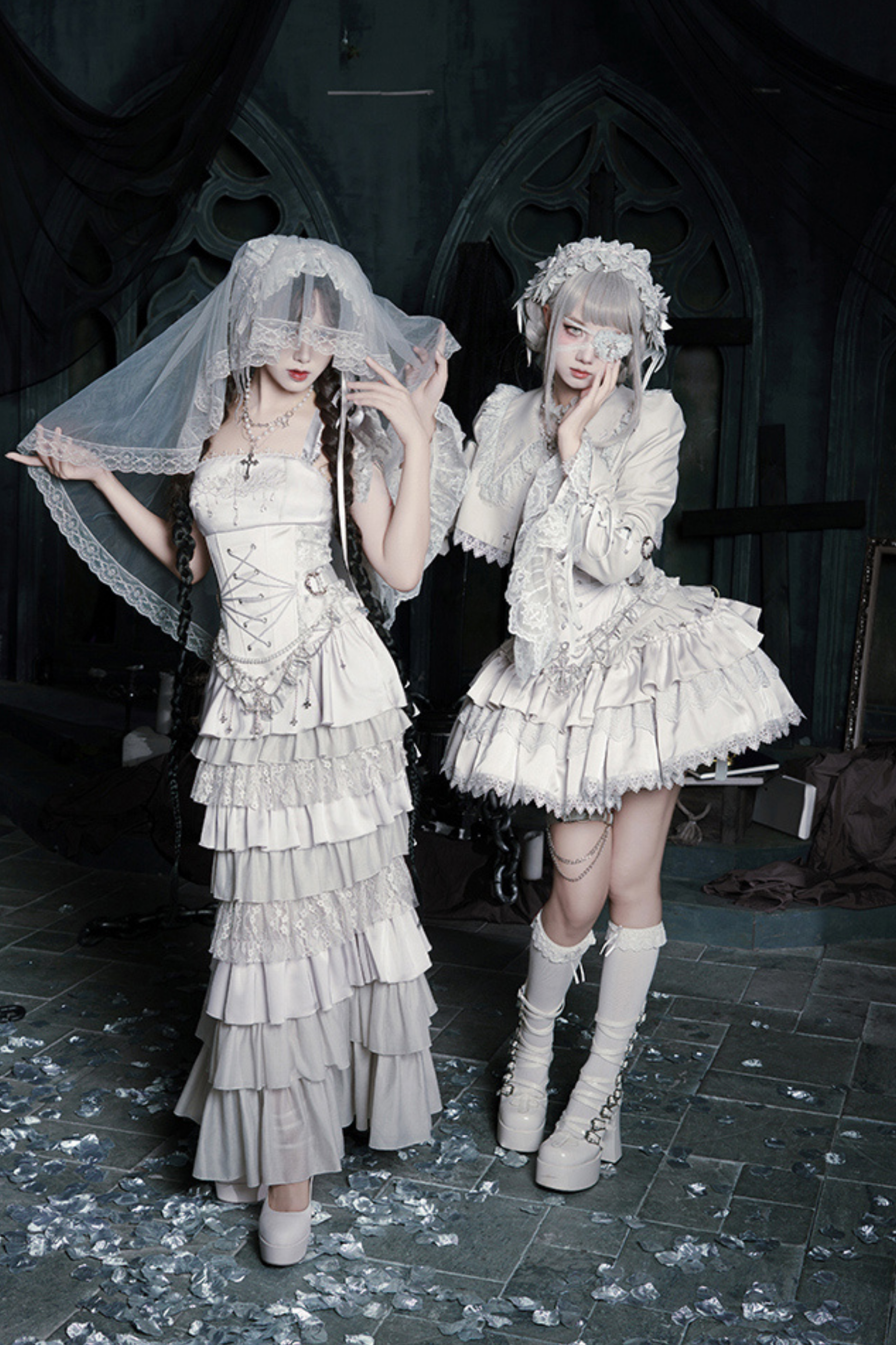 ゴシックロリータスカート+コルセット+ベール+ネックレス+ウエストチェーン