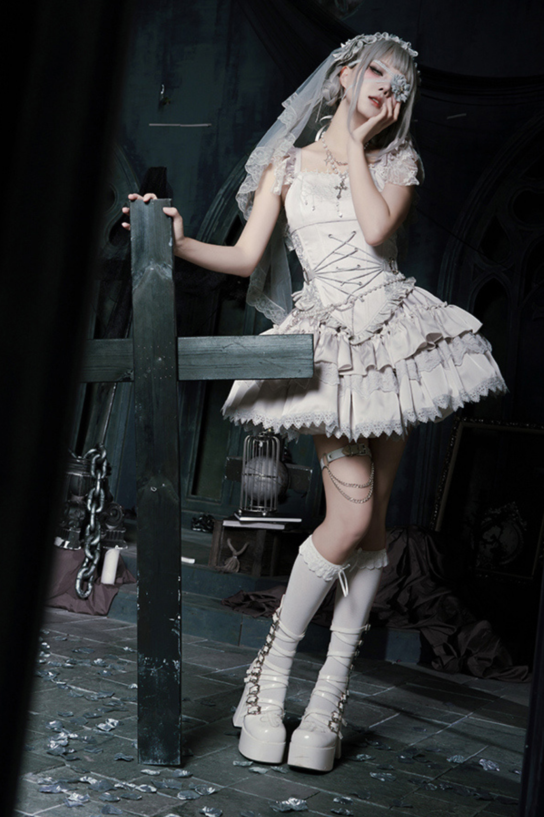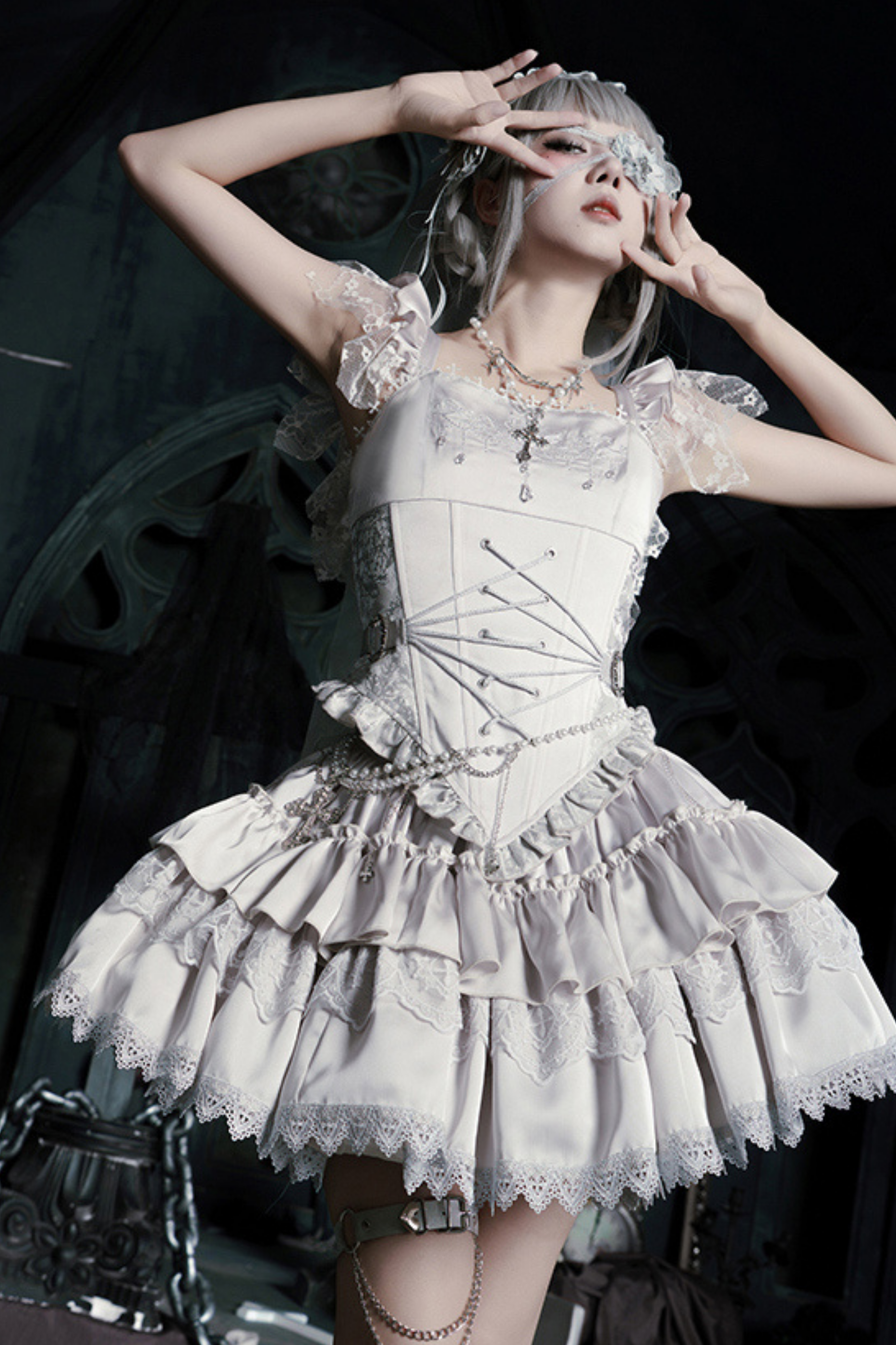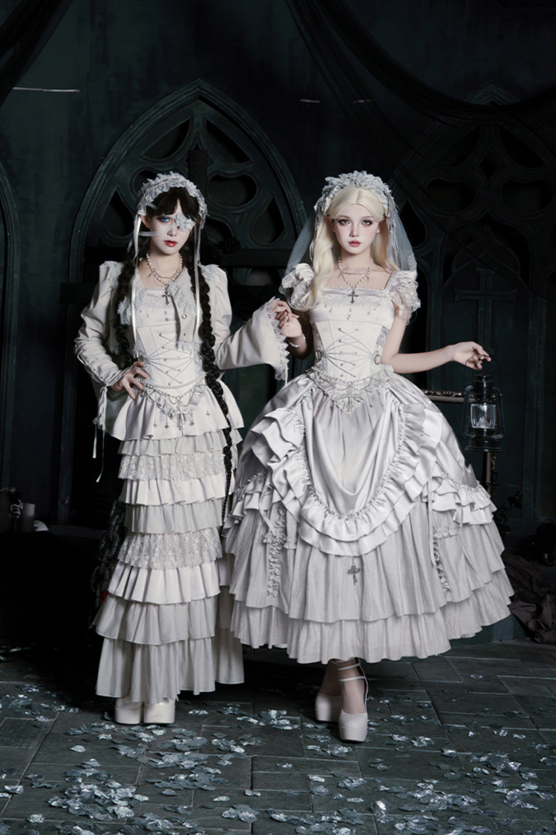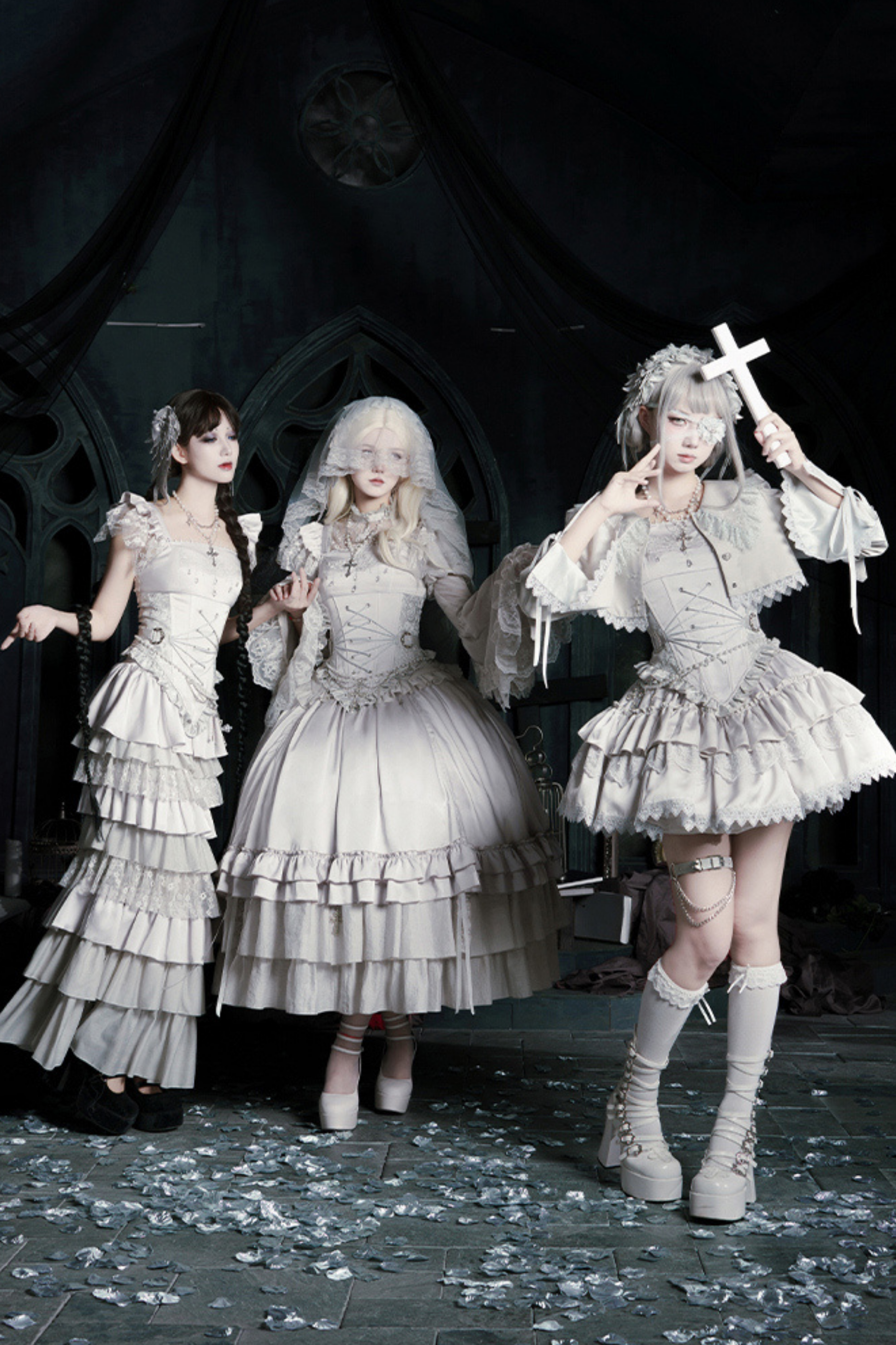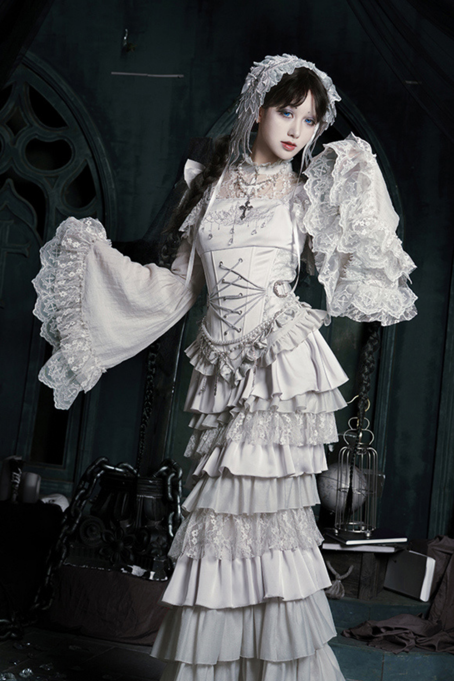 ゴシックロリータスカート+コルセット+ベール+ネックレス+ウエストチェーン