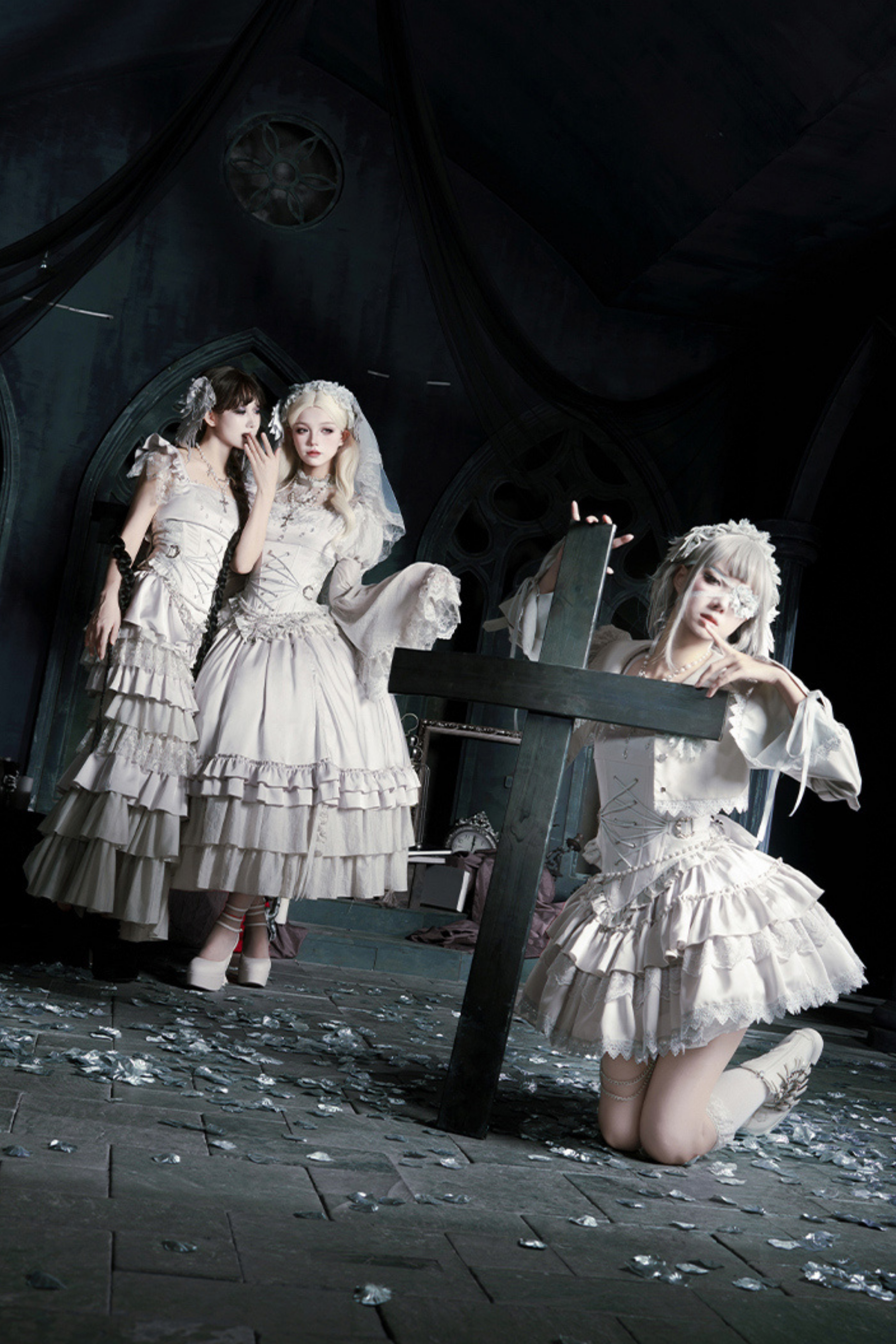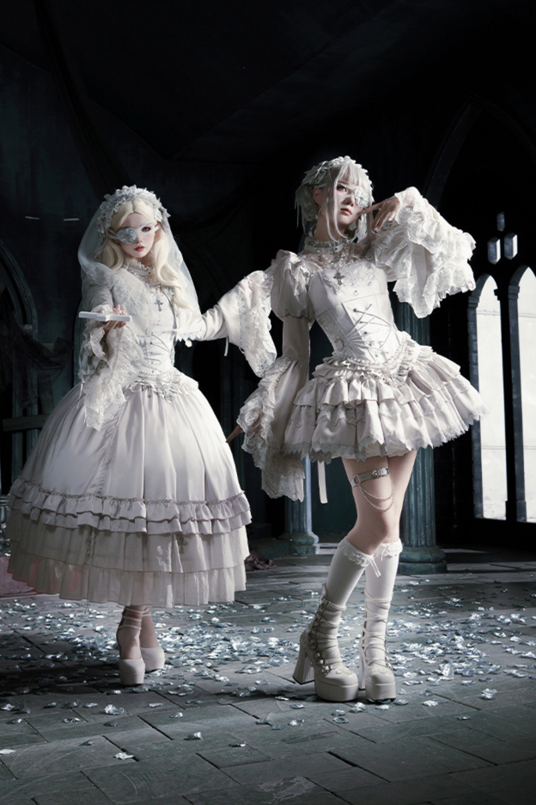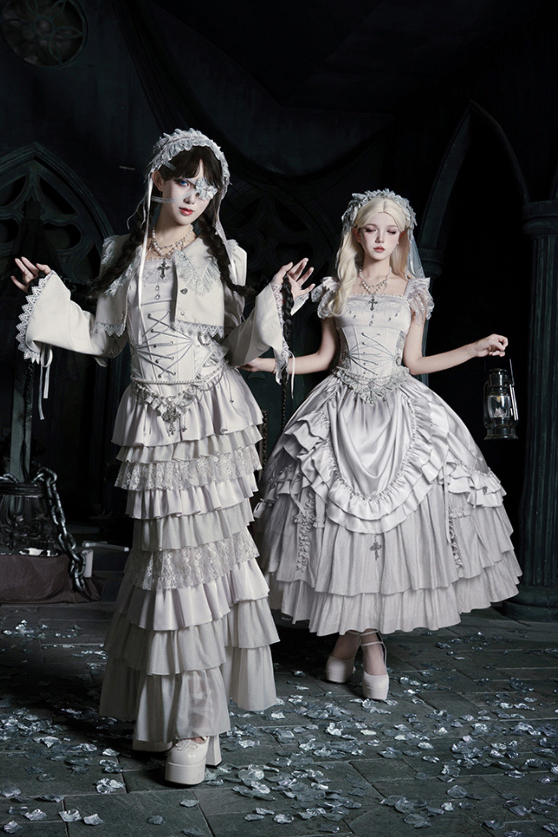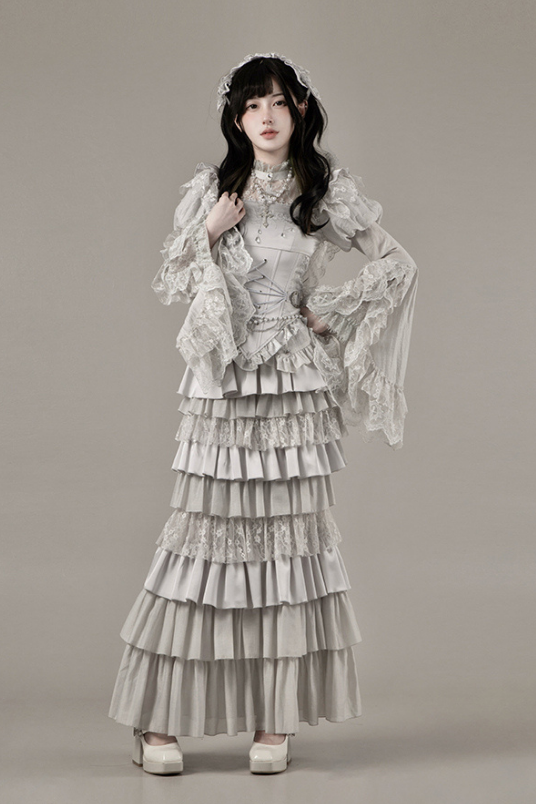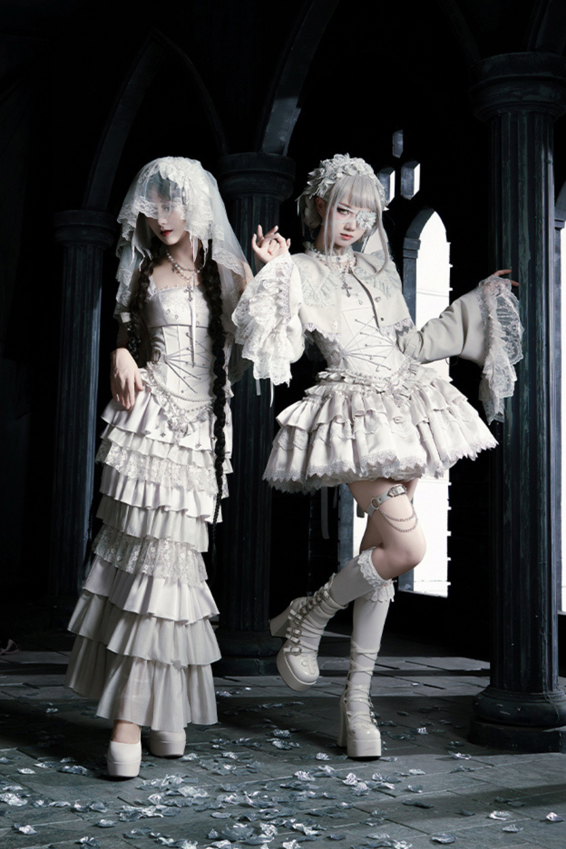 ゴシックロリータスカート+コルセット+ベール+ネックレス+ウエストチェーン