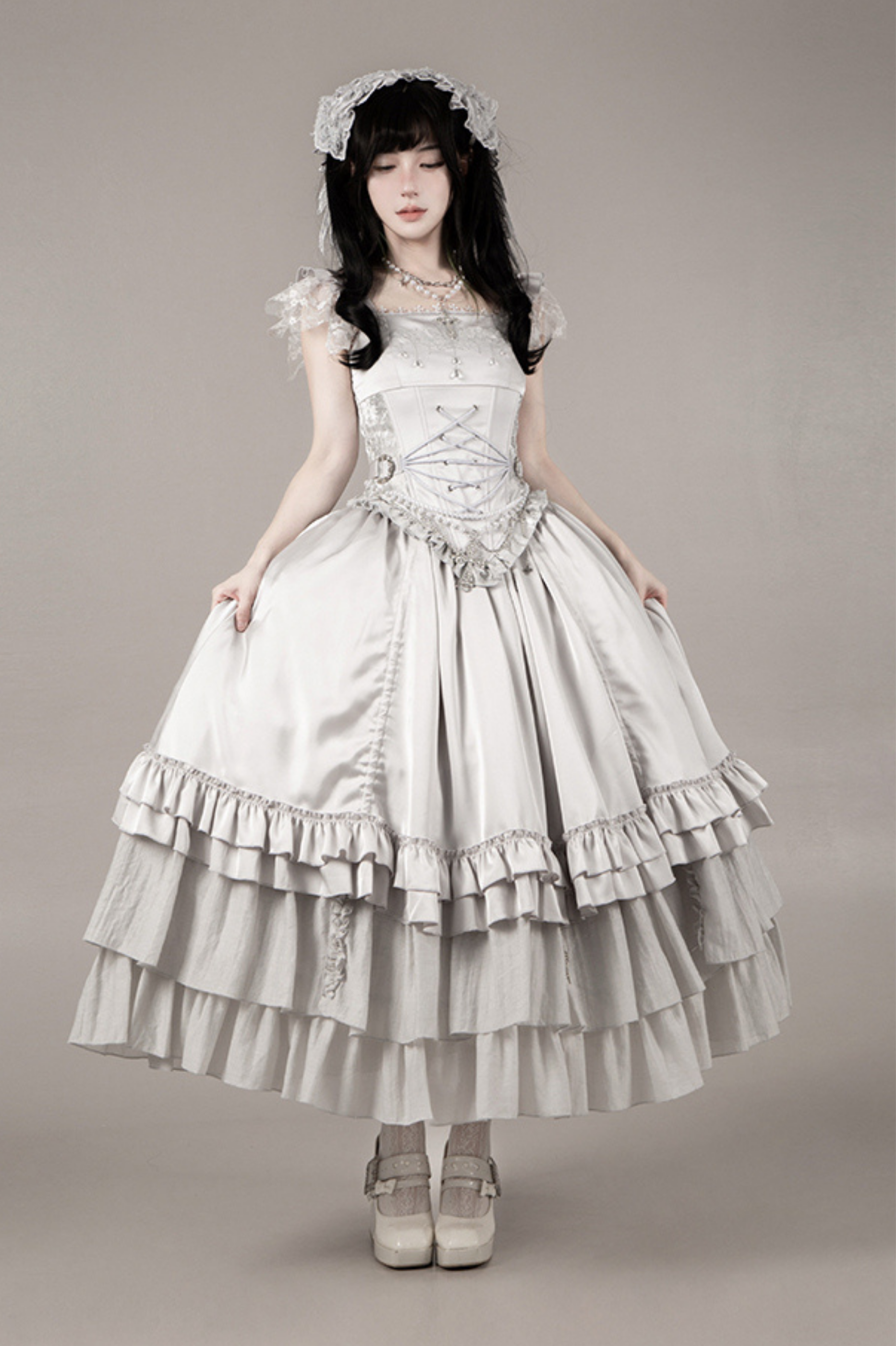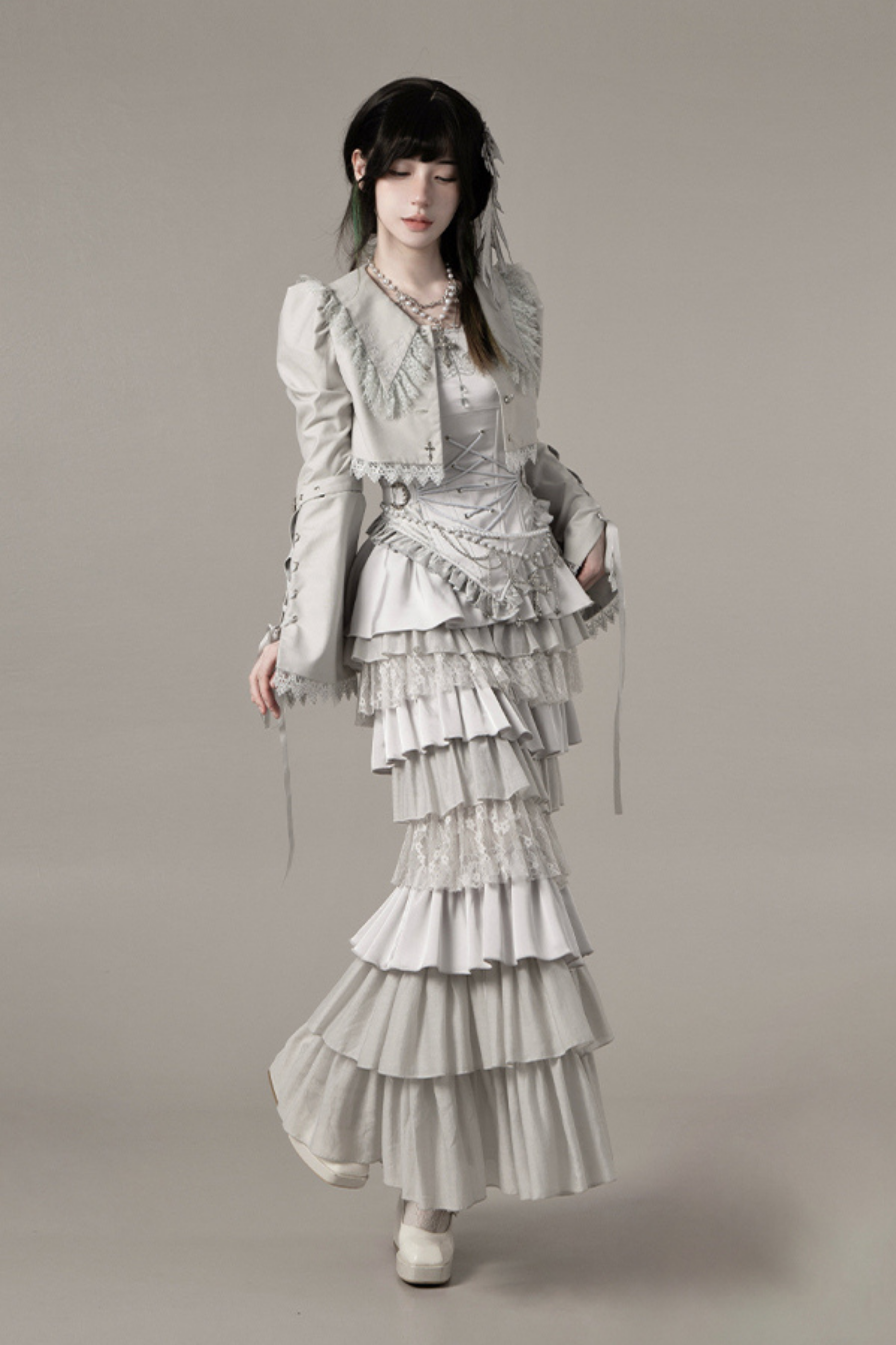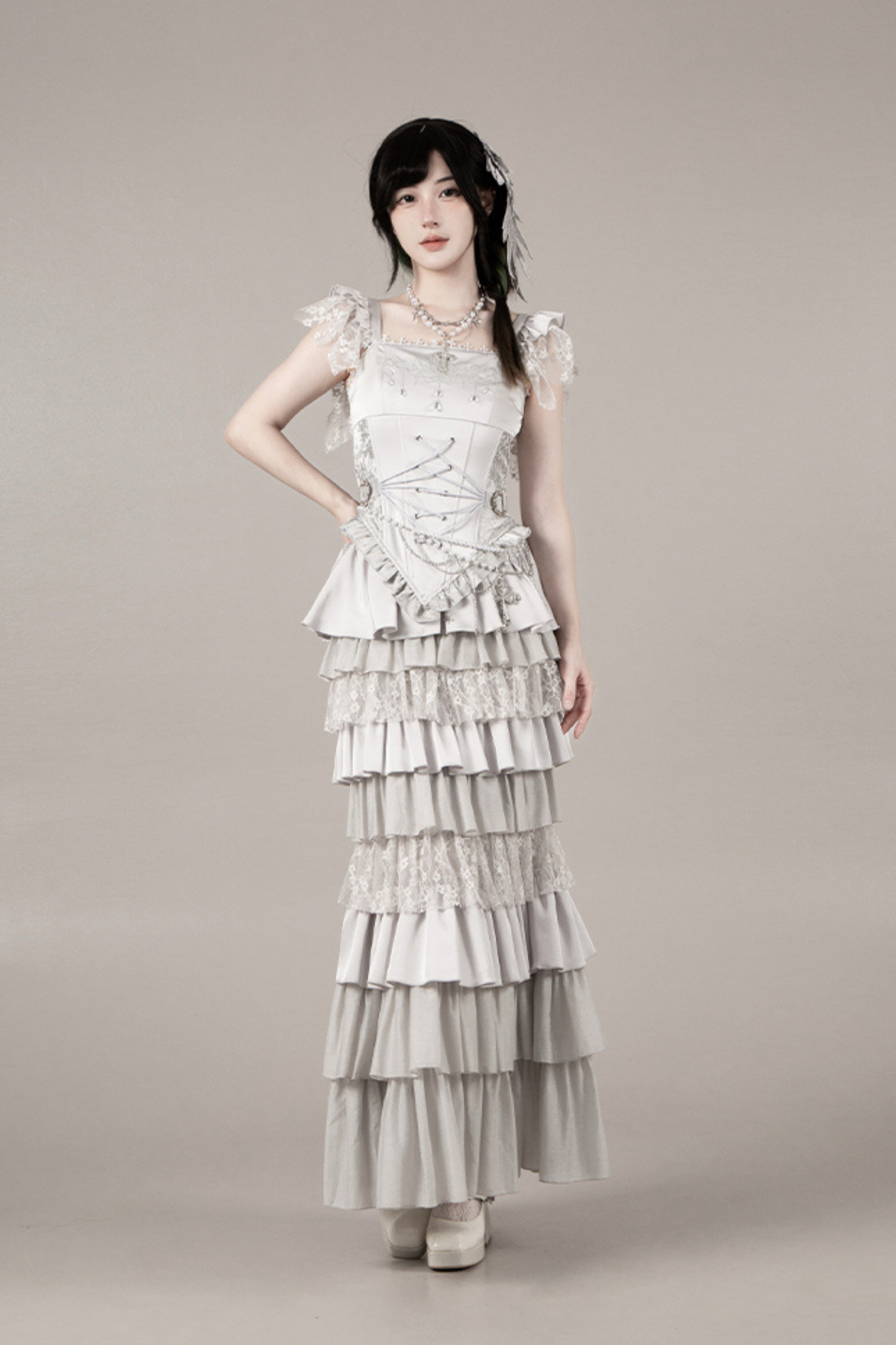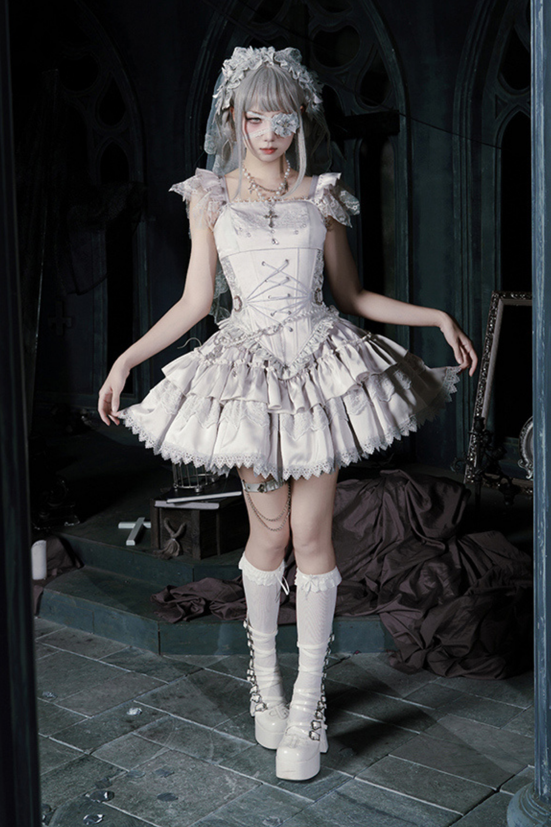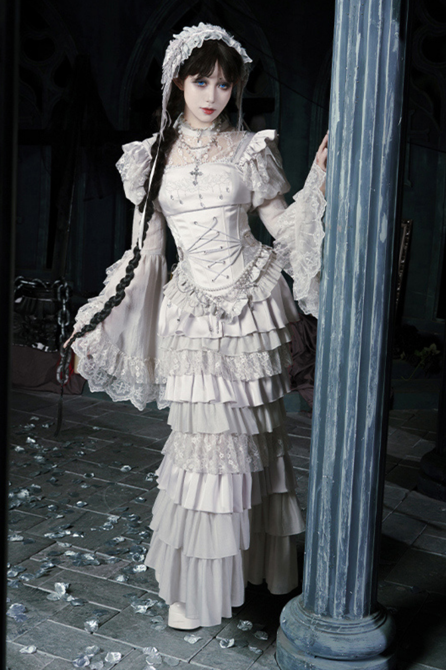 ゴシックロリータスカート+コルセット+ベール+ネックレス+ウエストチェーン