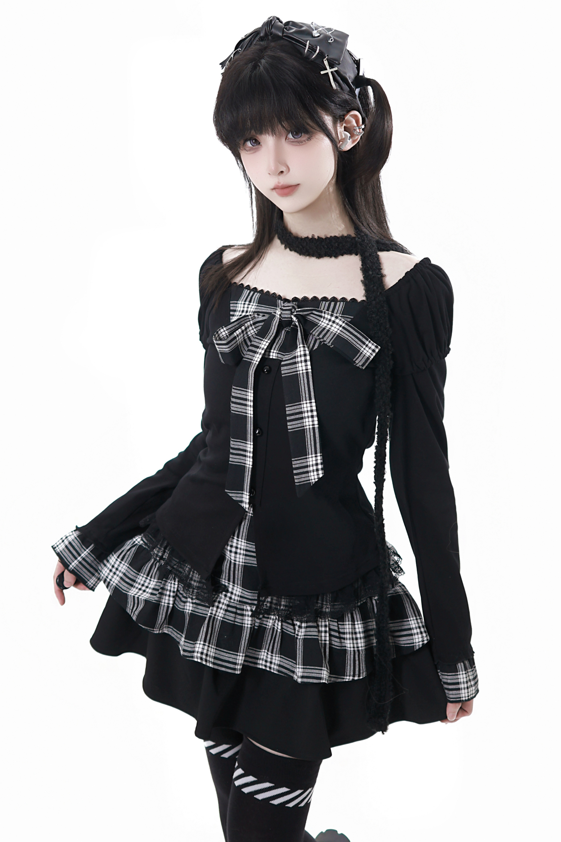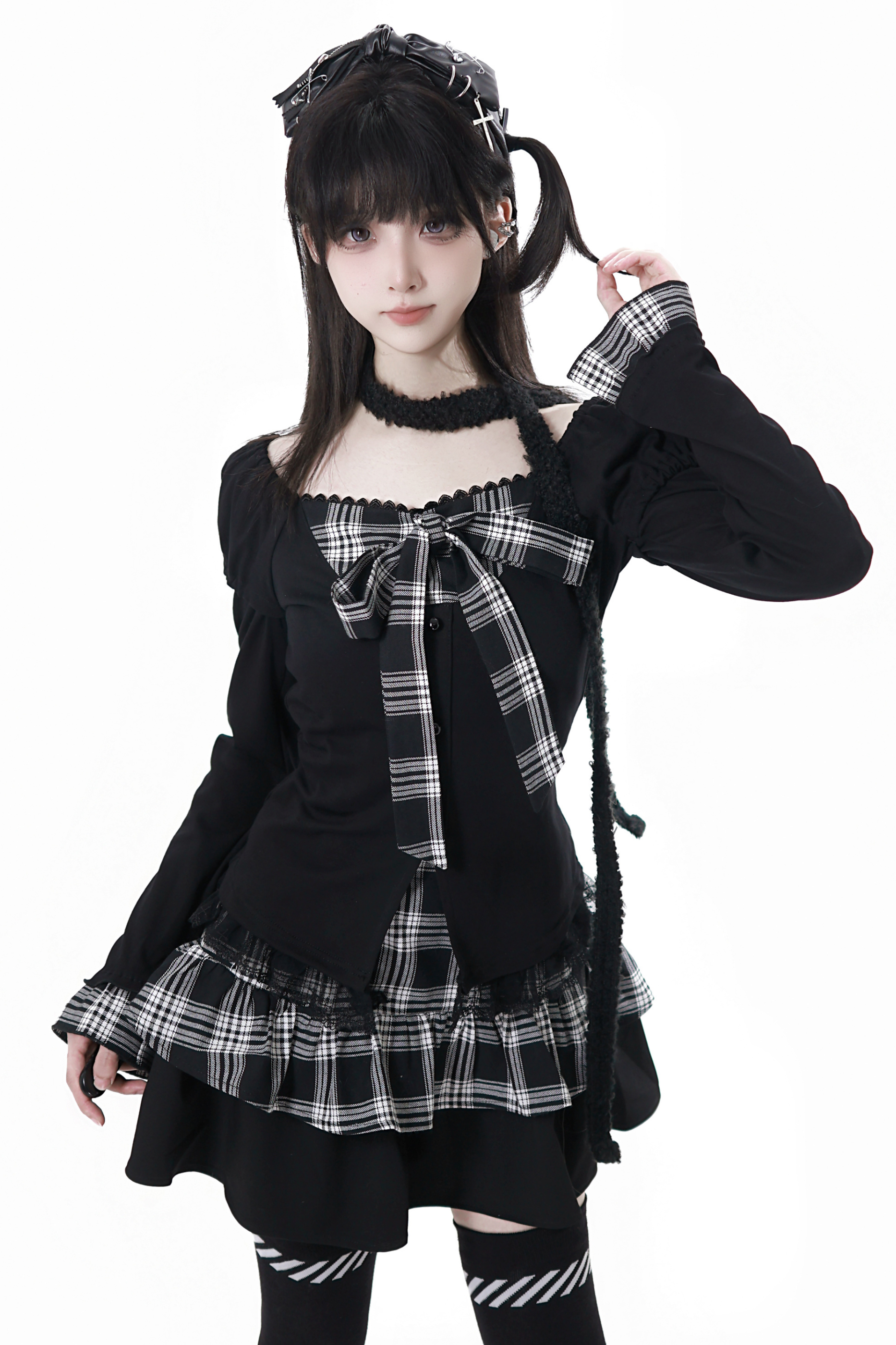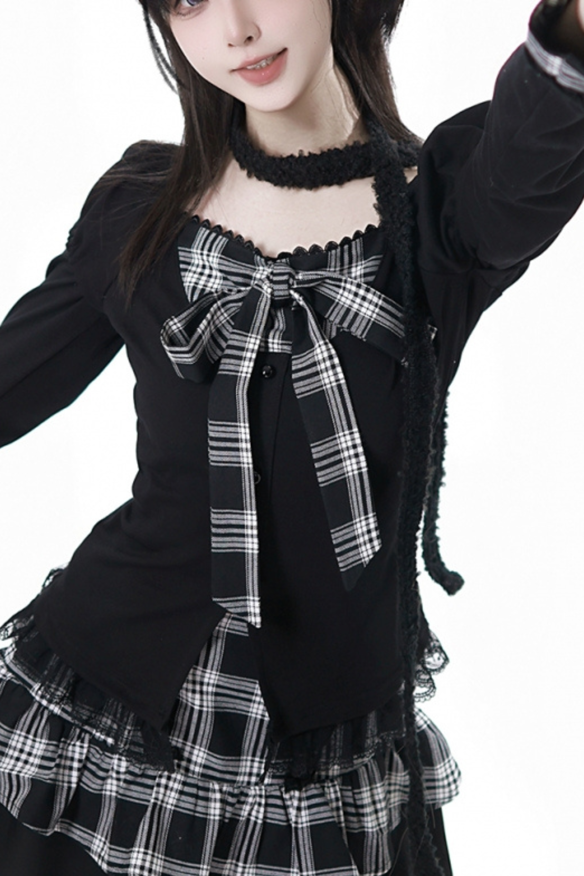 チェックリボントップス+スカート