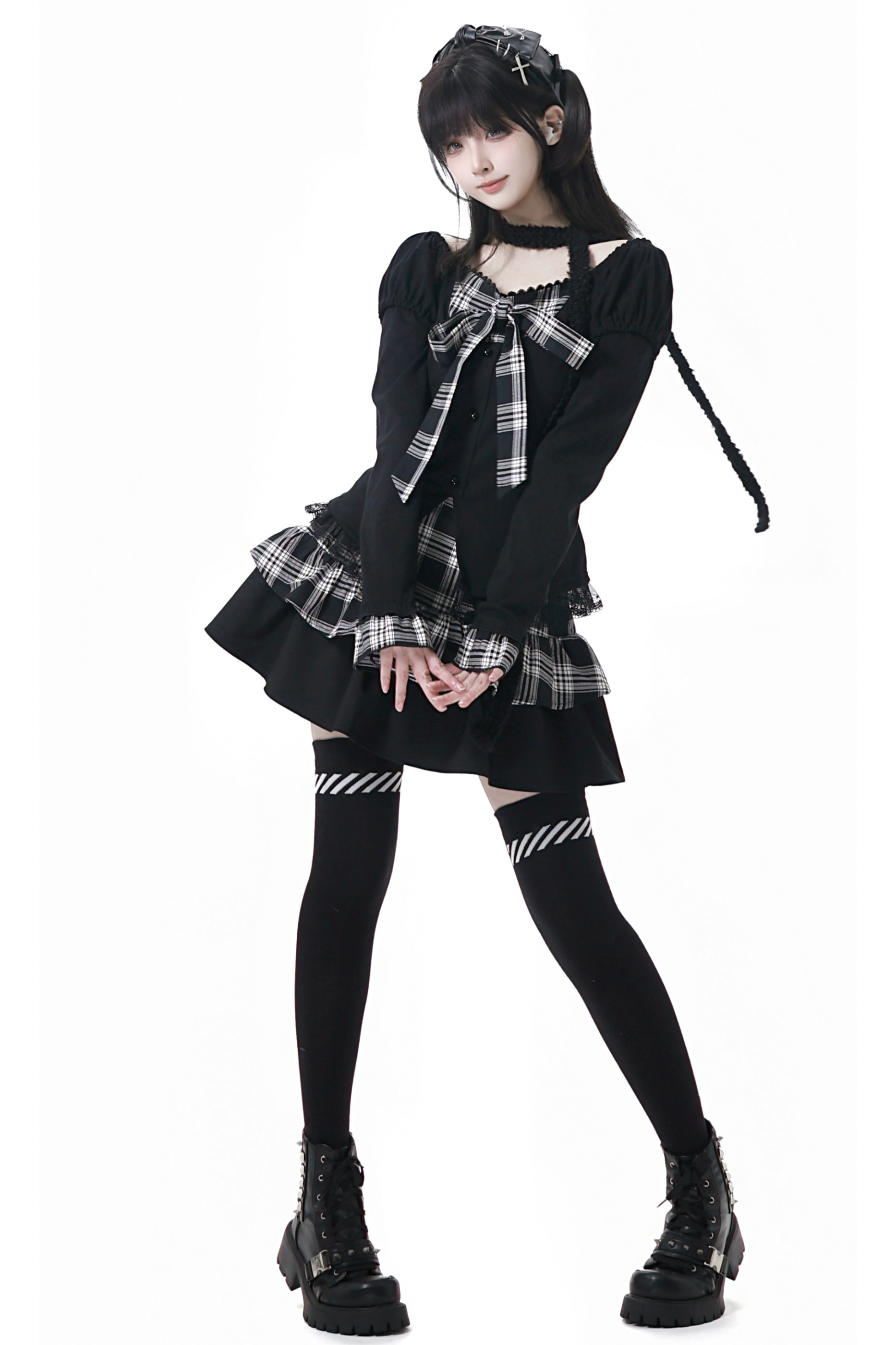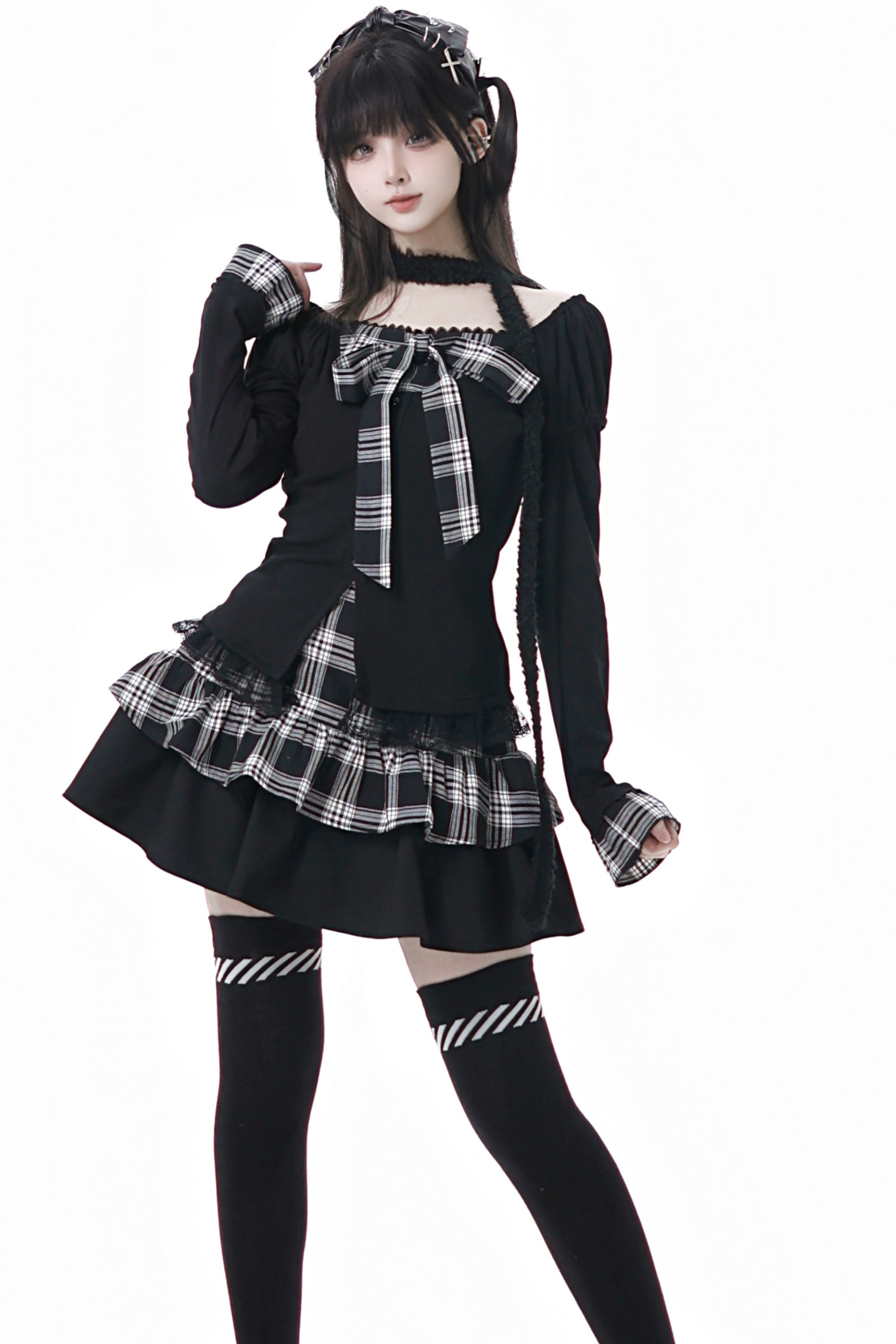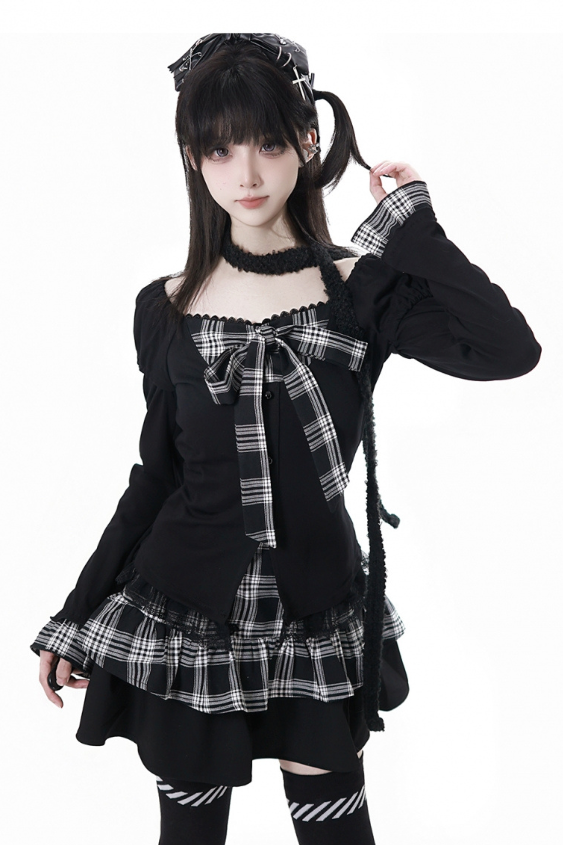 チェックリボントップス+スカート