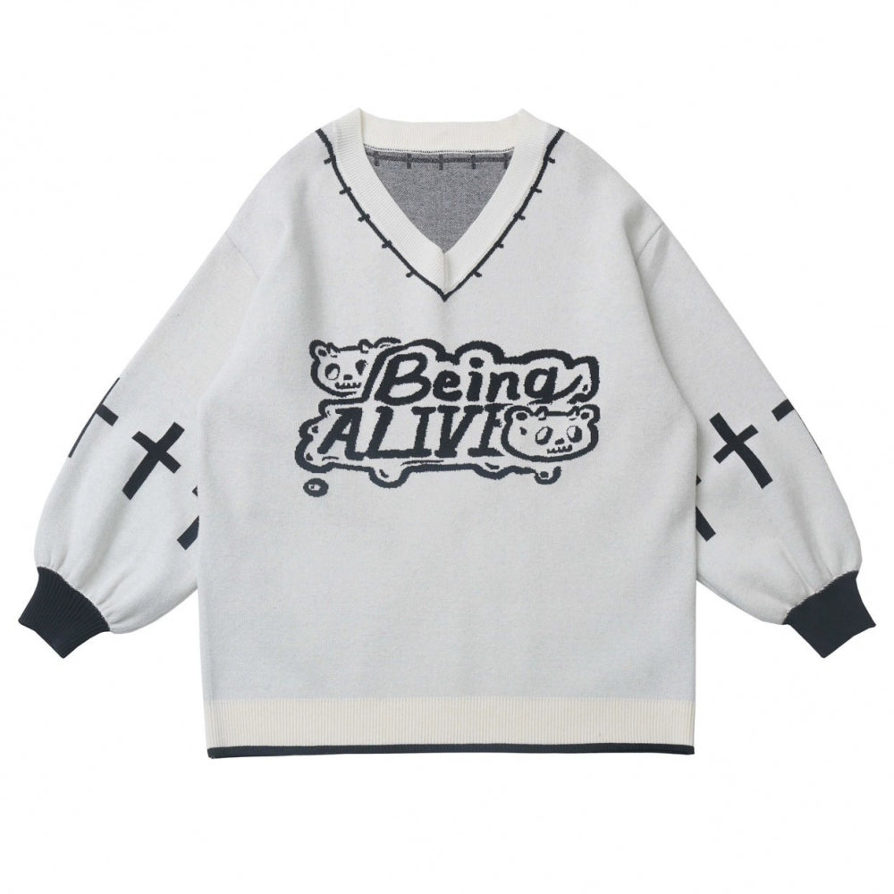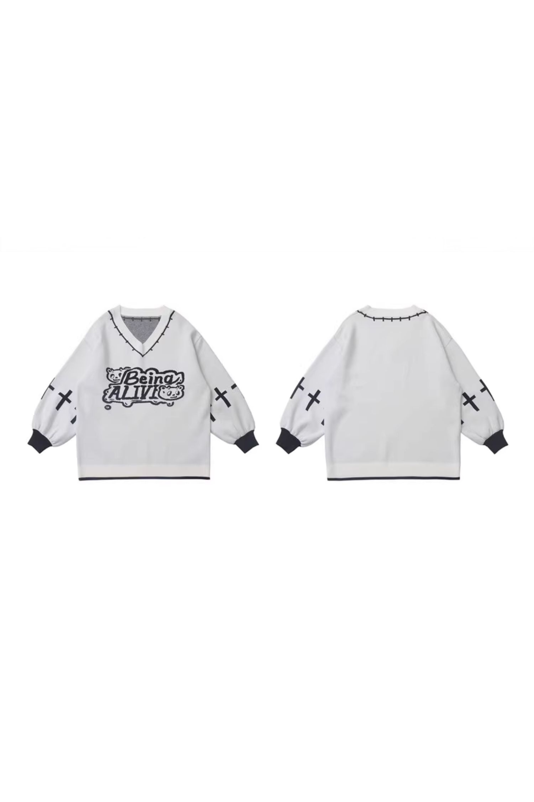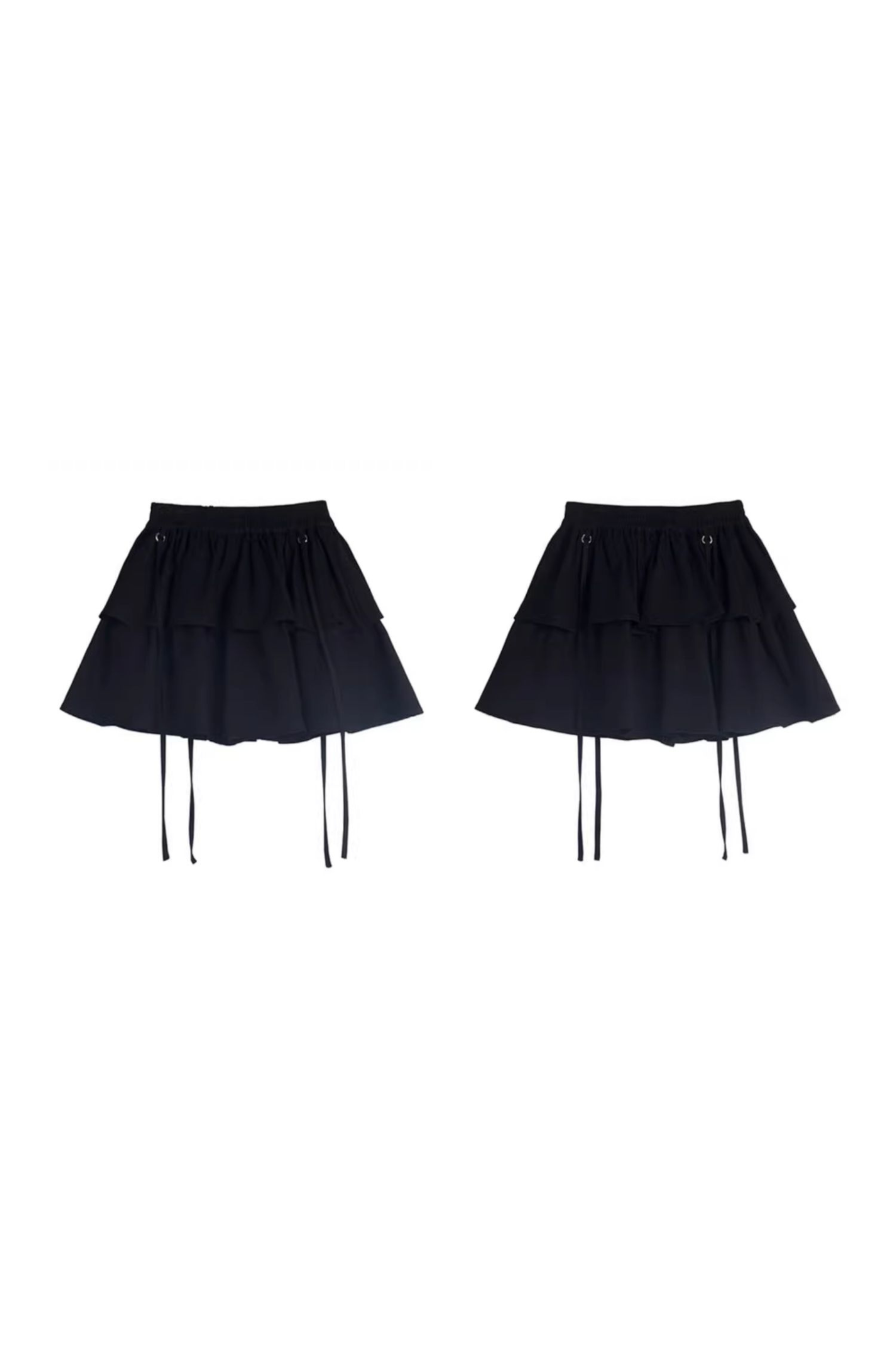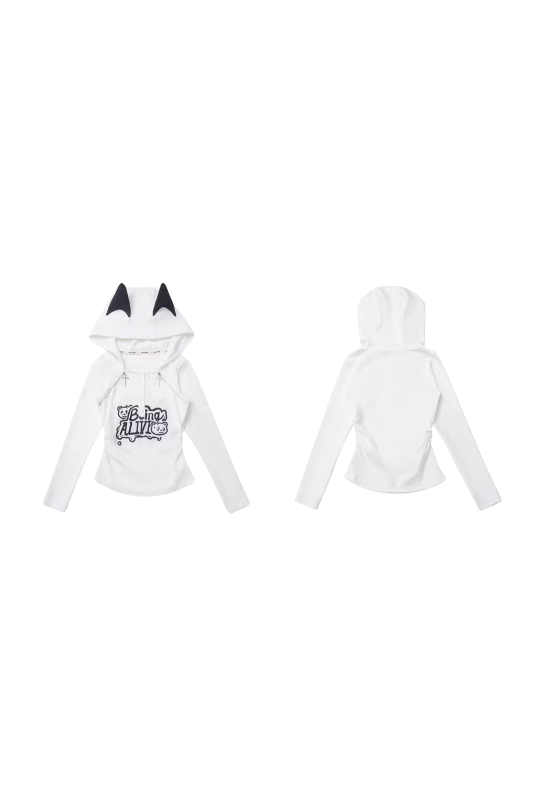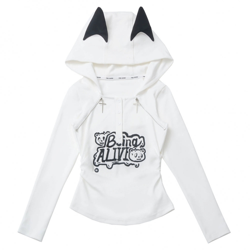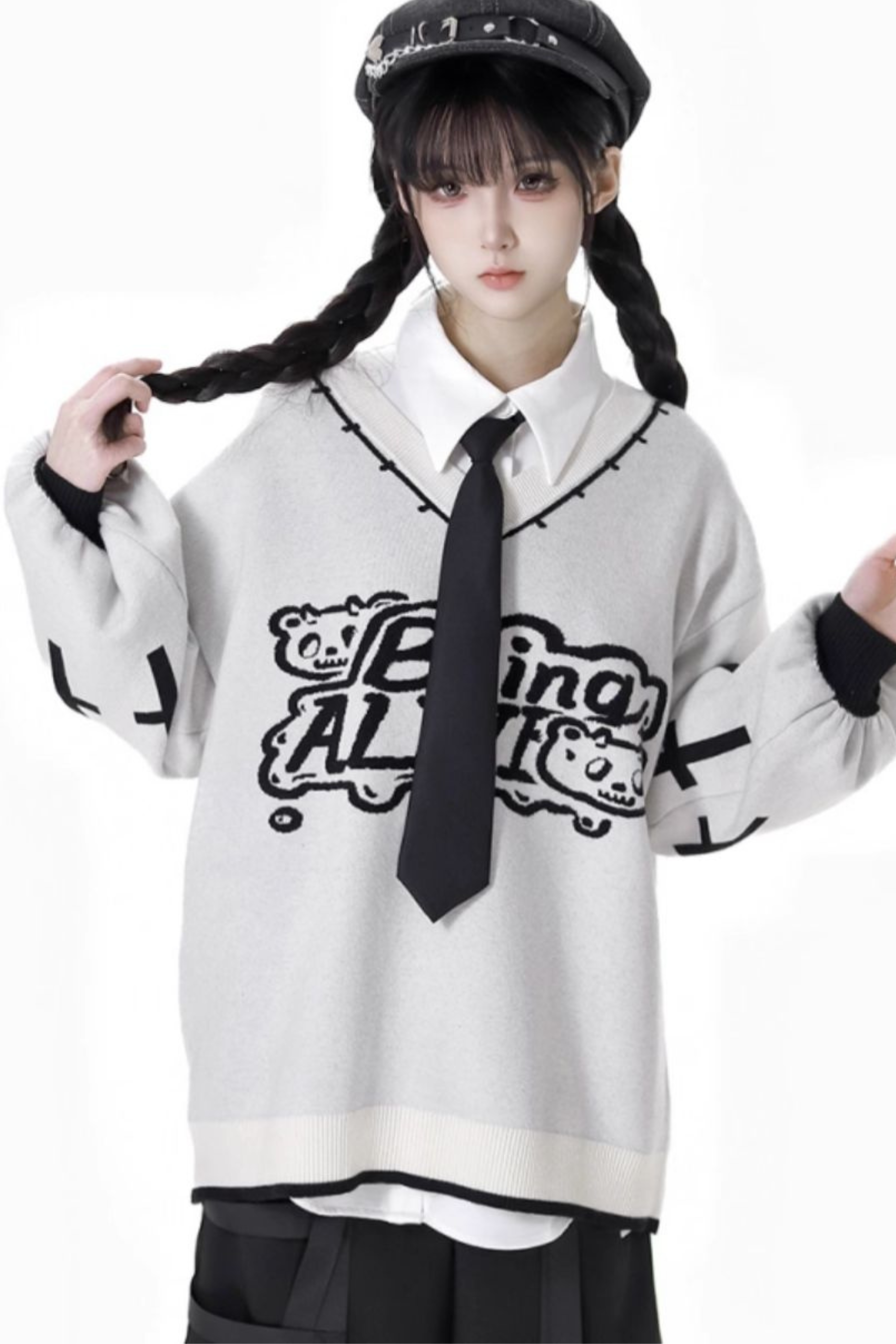 猫耳フードトップス+ルーズニットセーター+カーゴパンツ+ストラップスカート