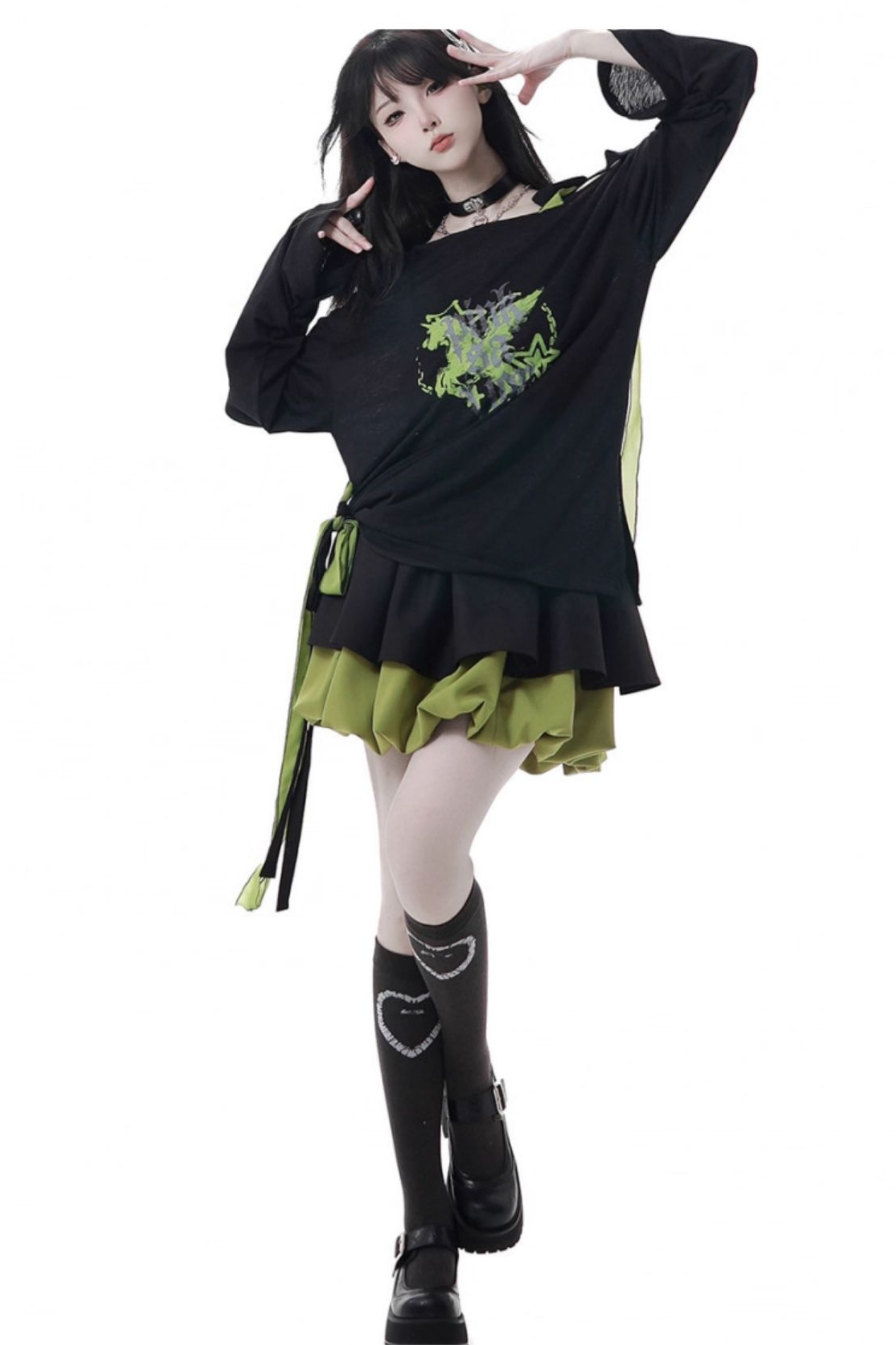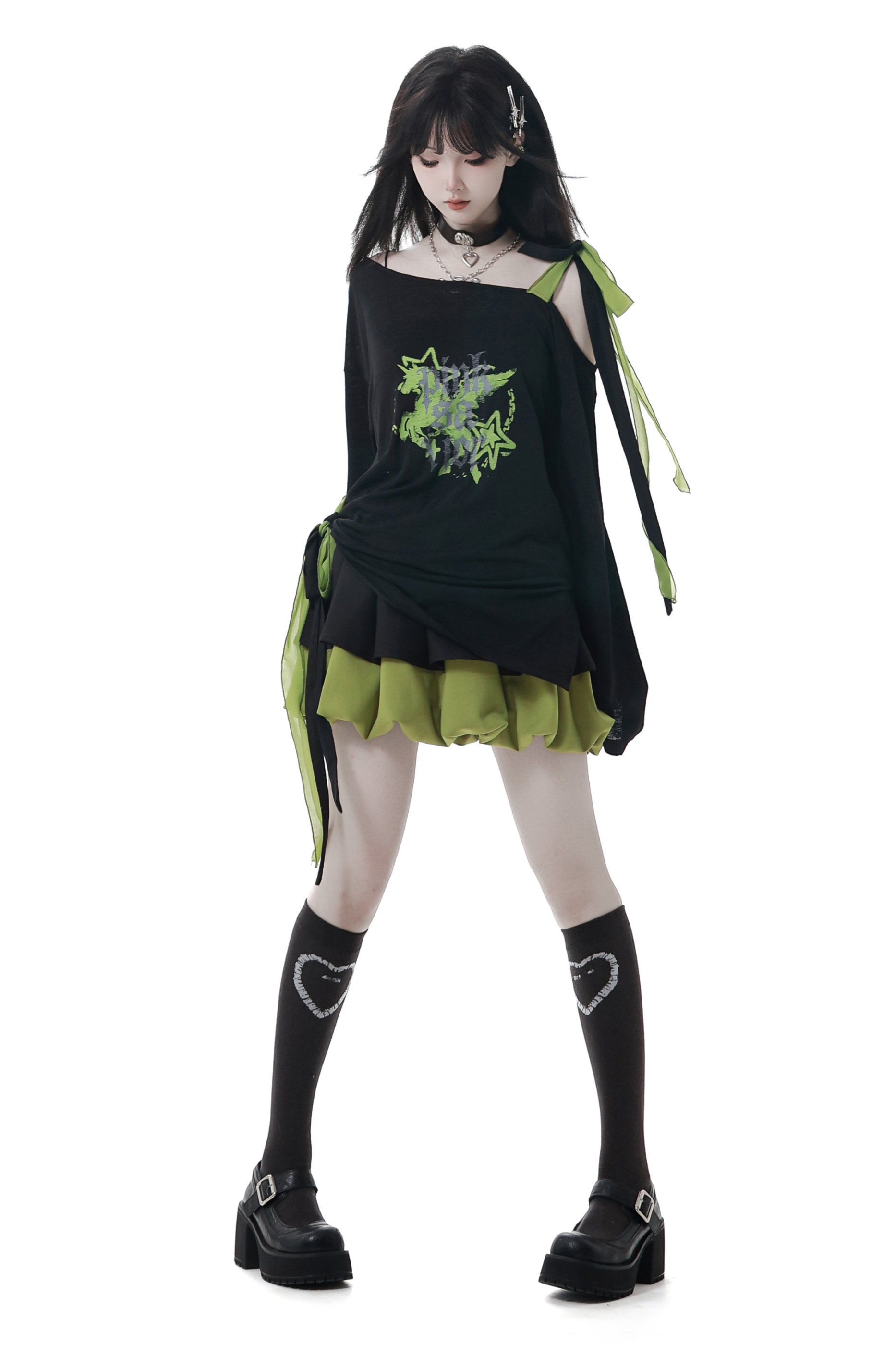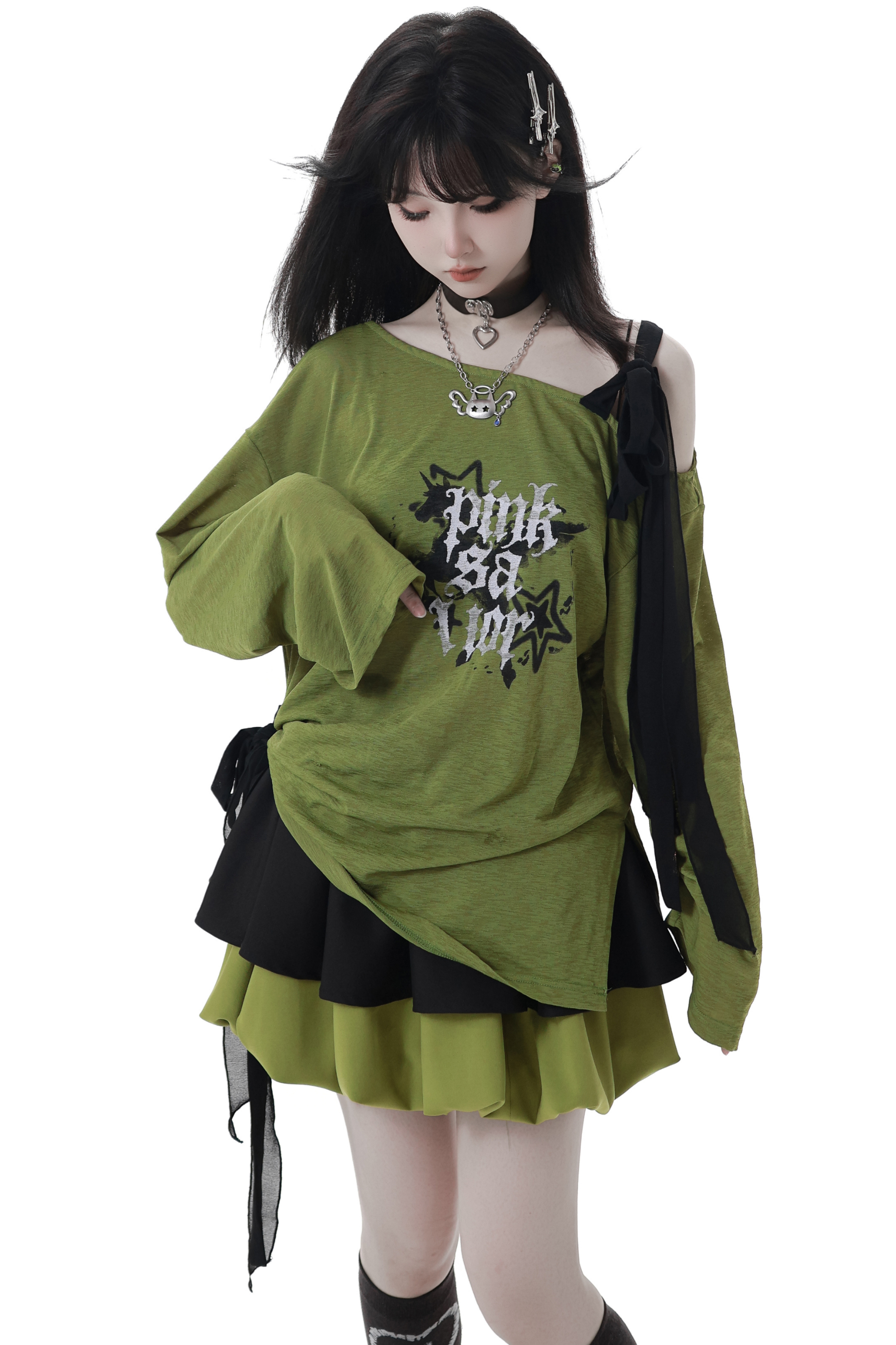 ワンショルダーアシメトップス+バルーンスカート