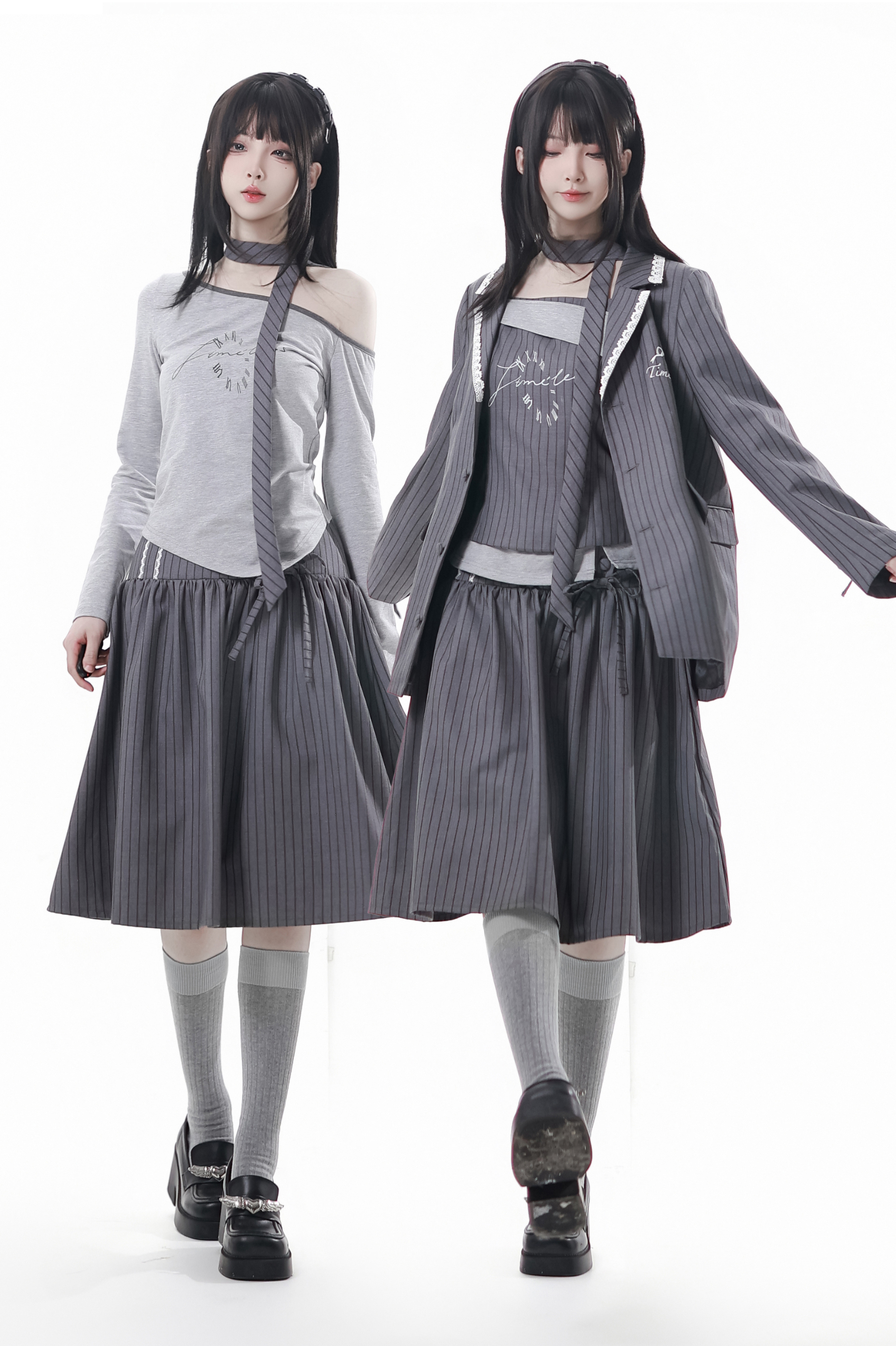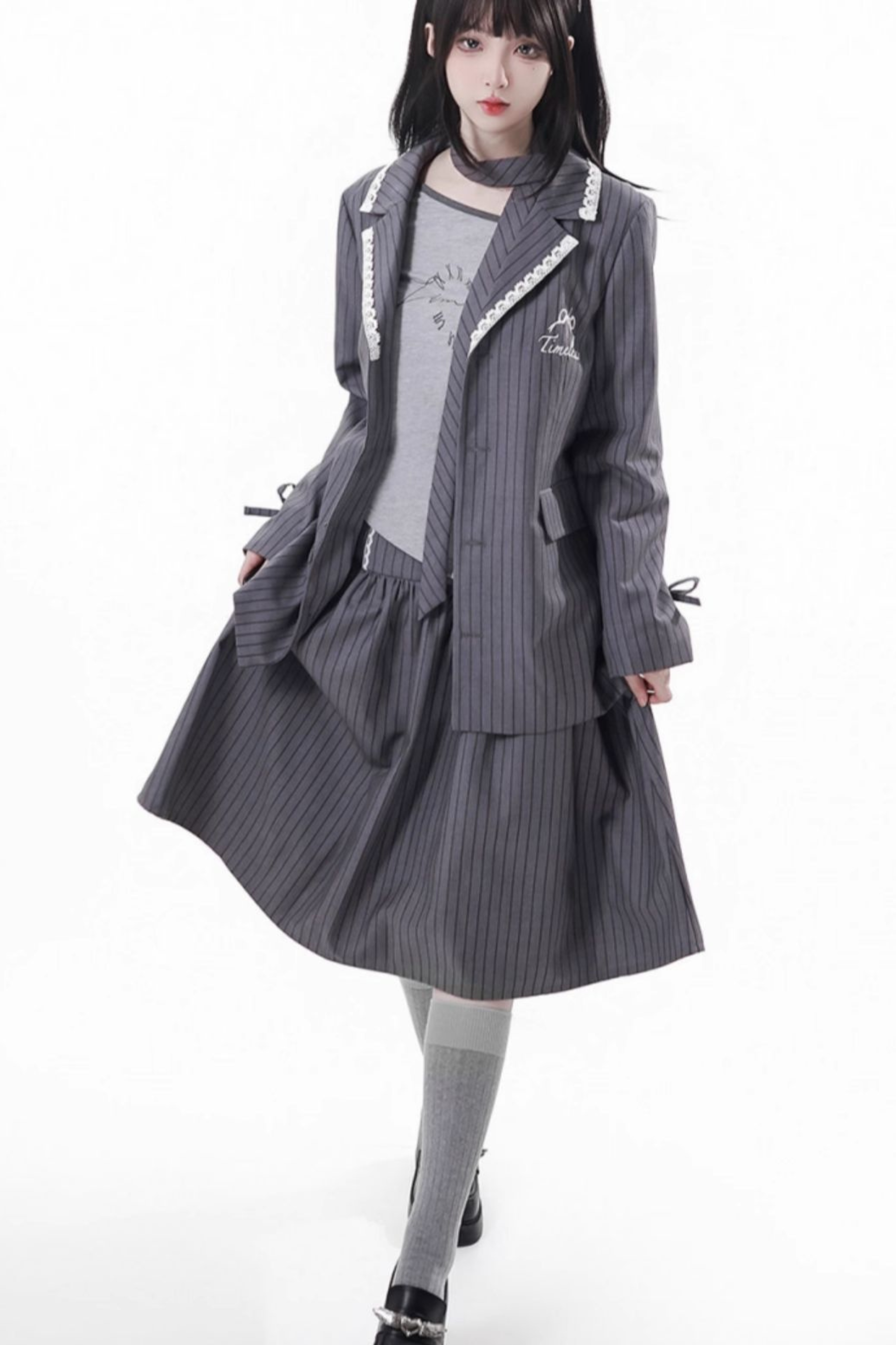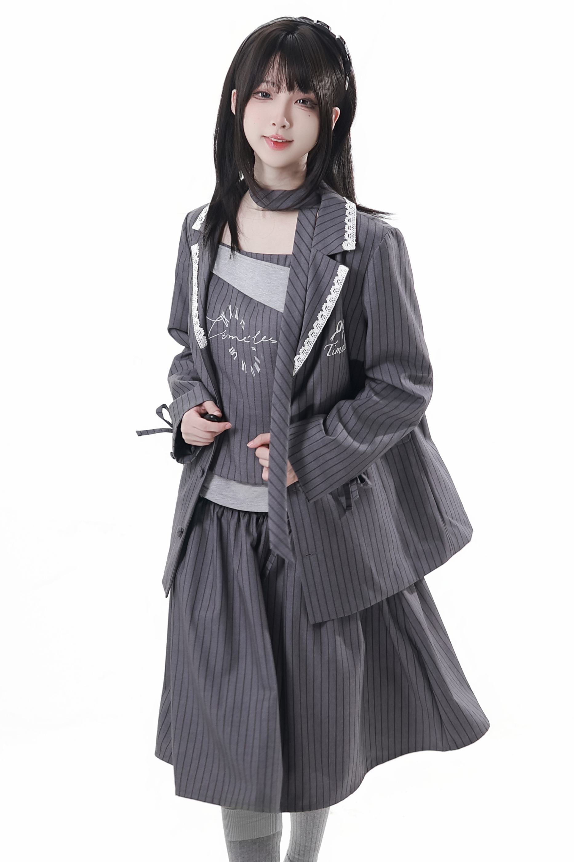 モードアカデミージャケット+アシメトップス+キャミソール+スカート+スカーフ