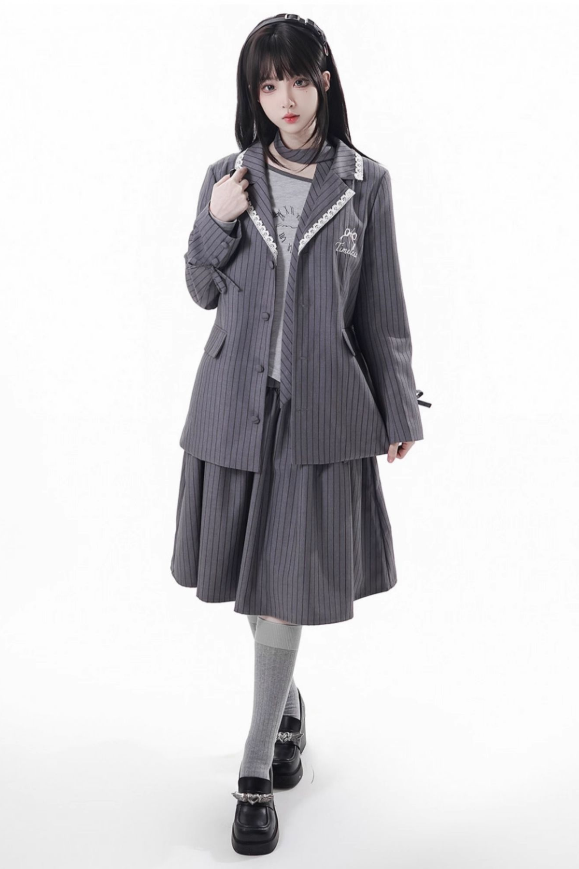 ❤モードアカデミージャケット+アシメトップス+キャミソール+スカート+スカーフ❤