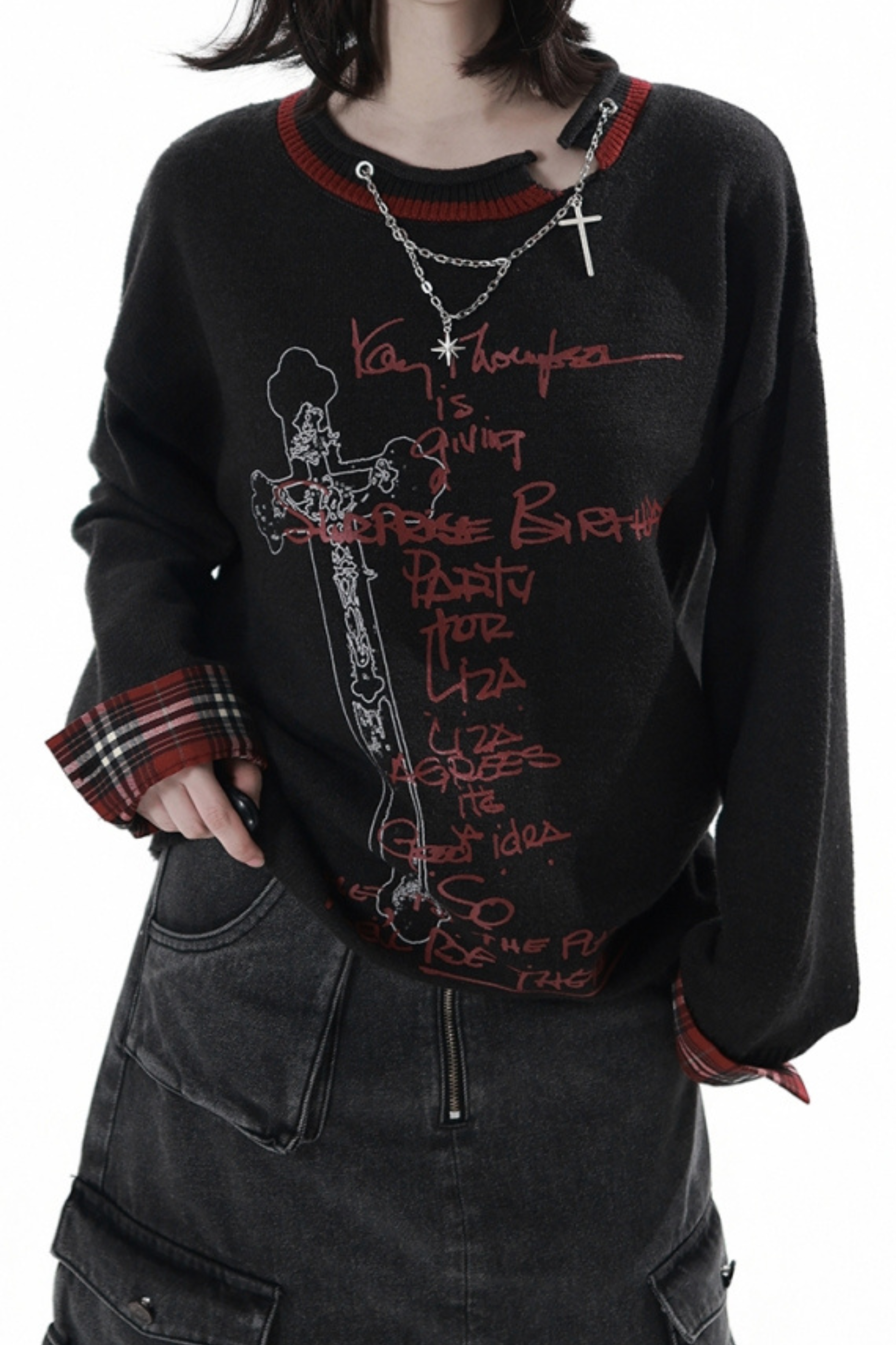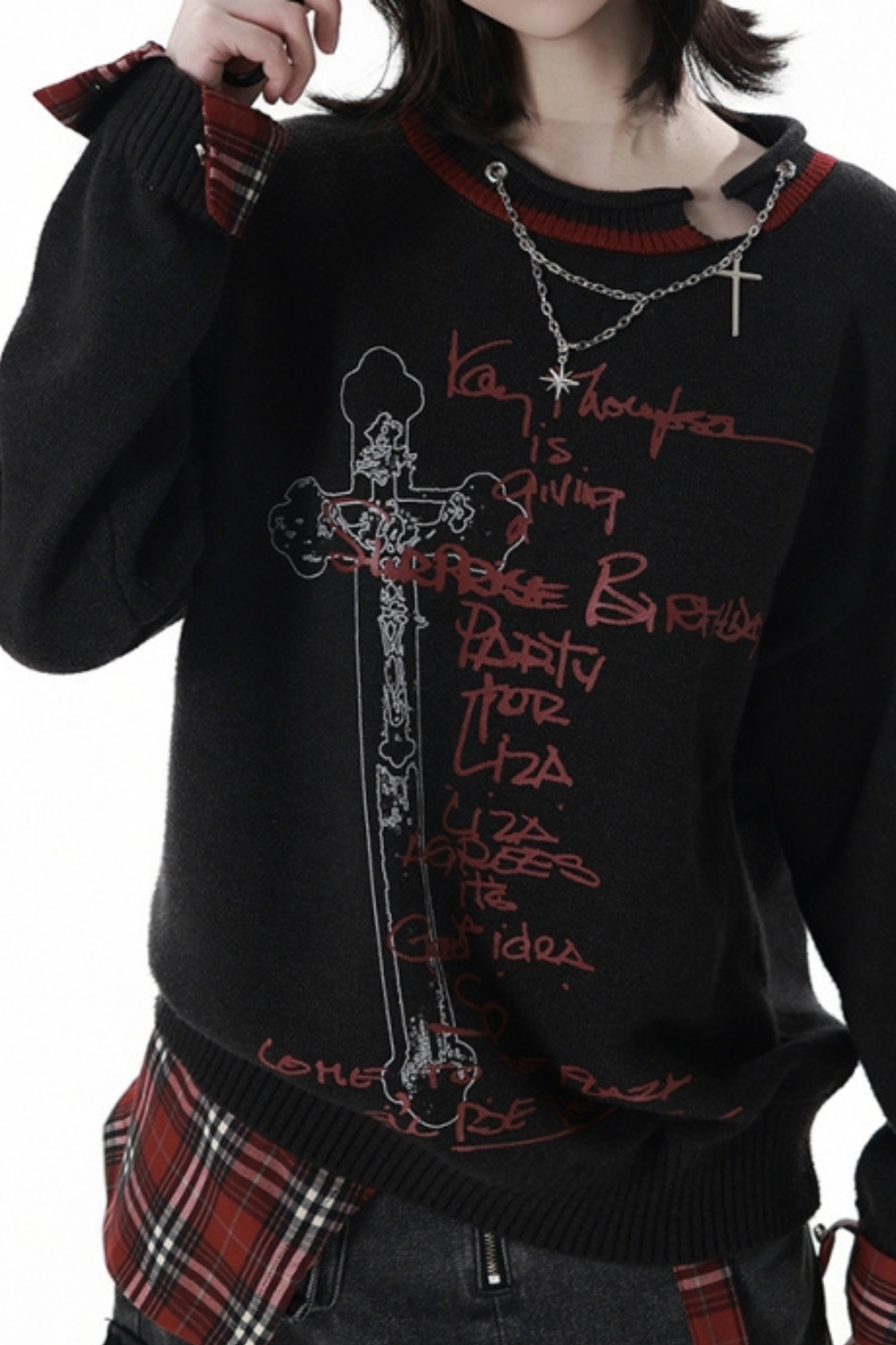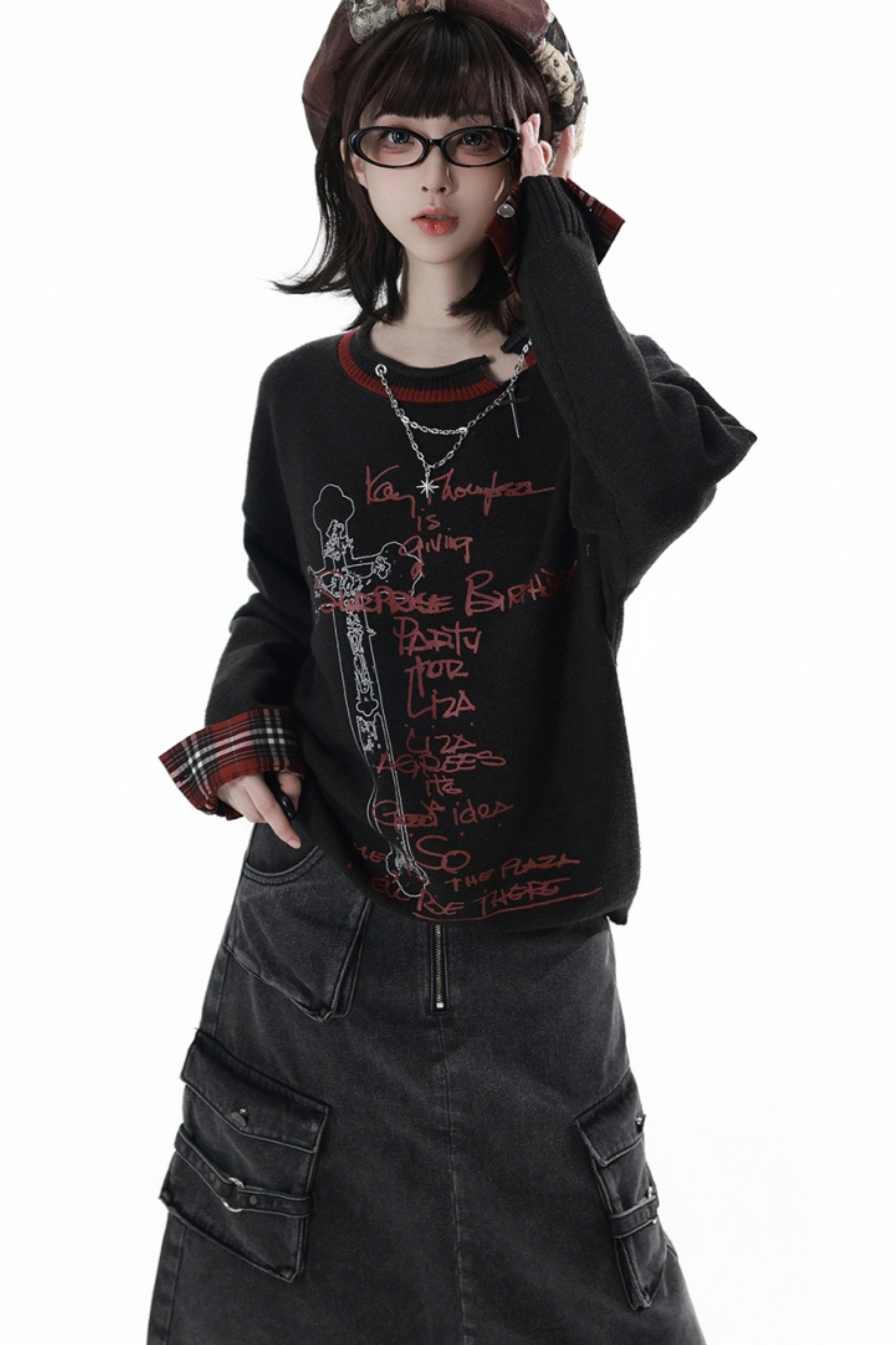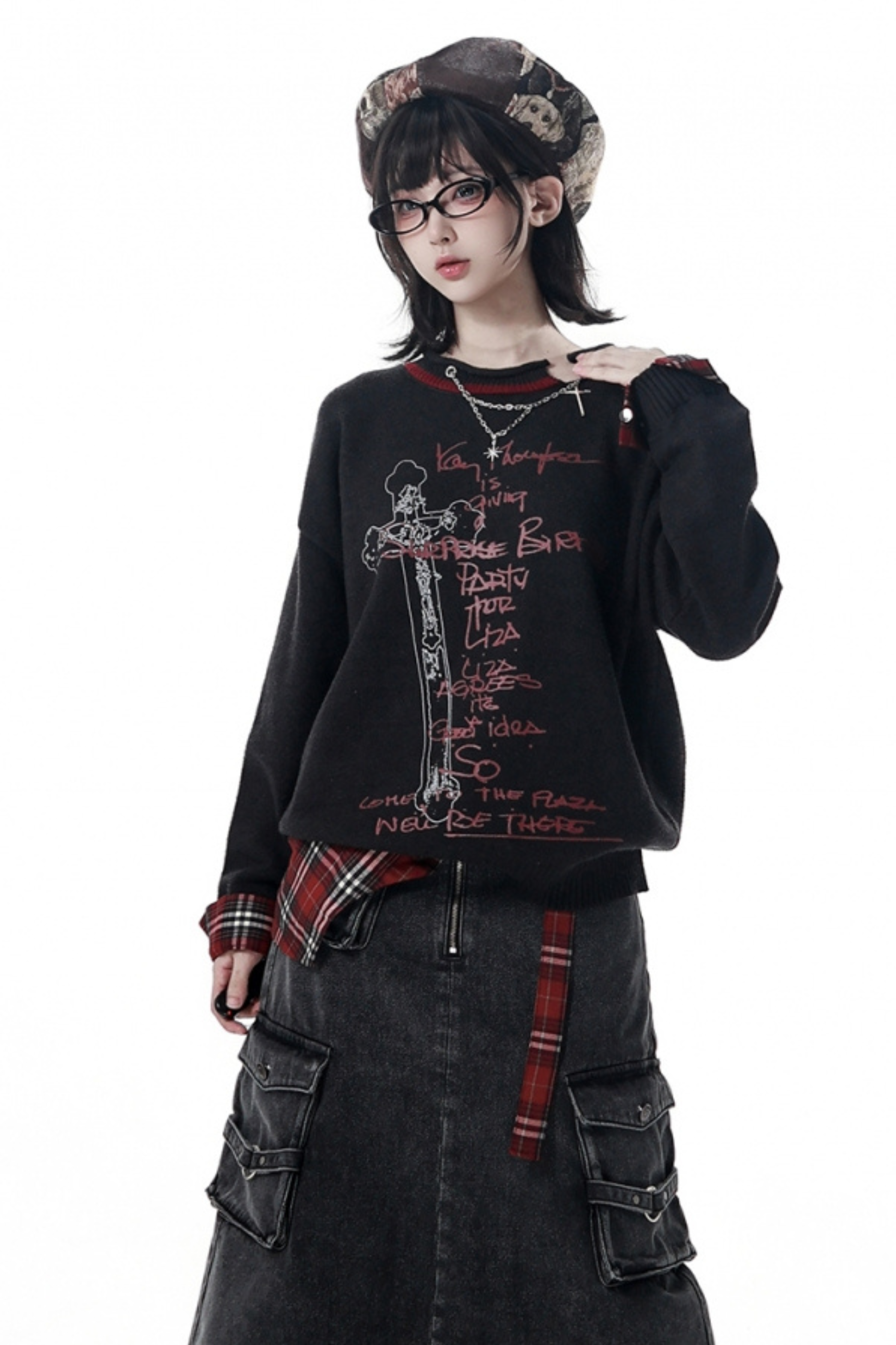 ❤ダークトップス+デニムスカート+チェックウエストアクセサリー❤