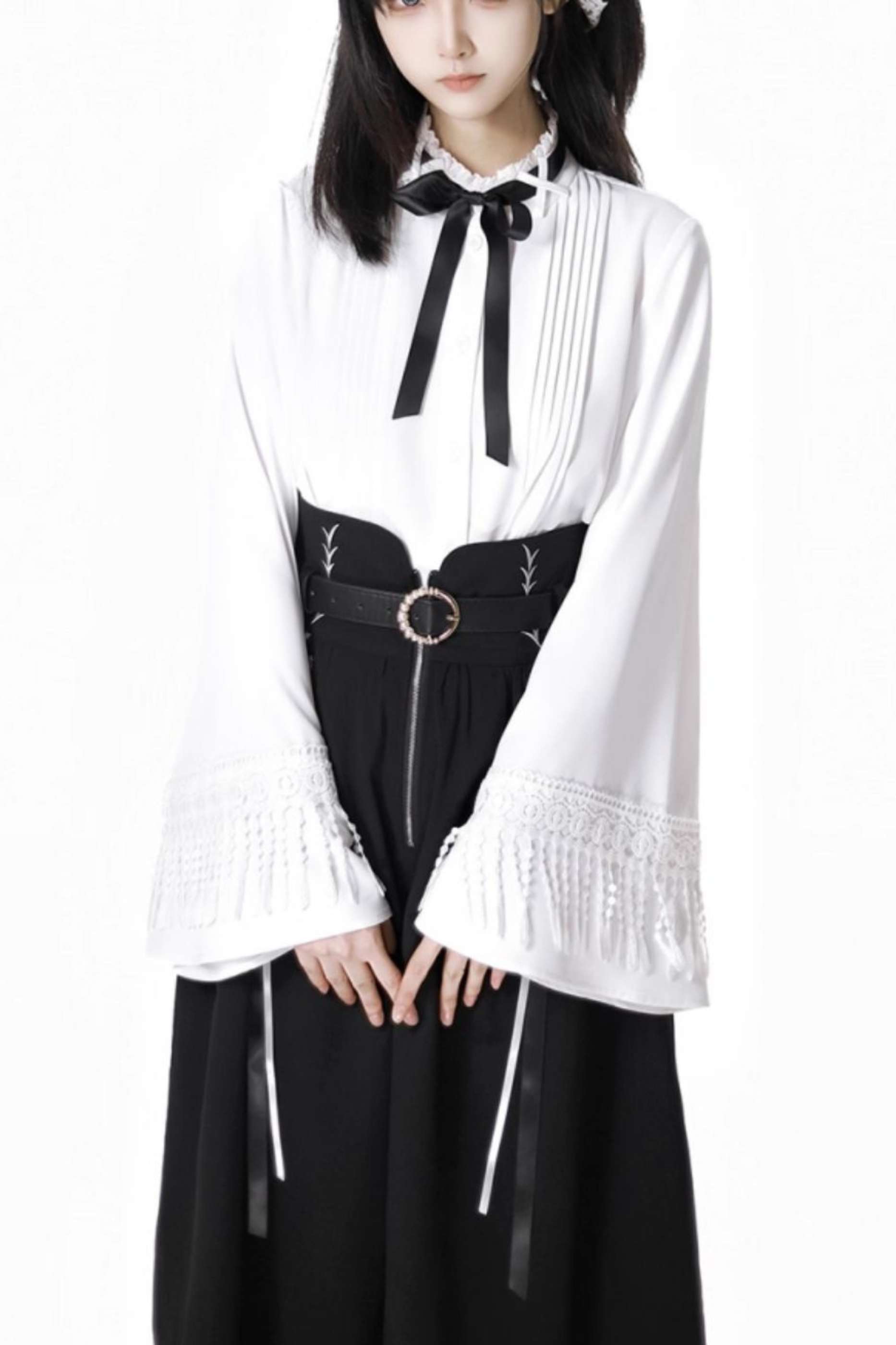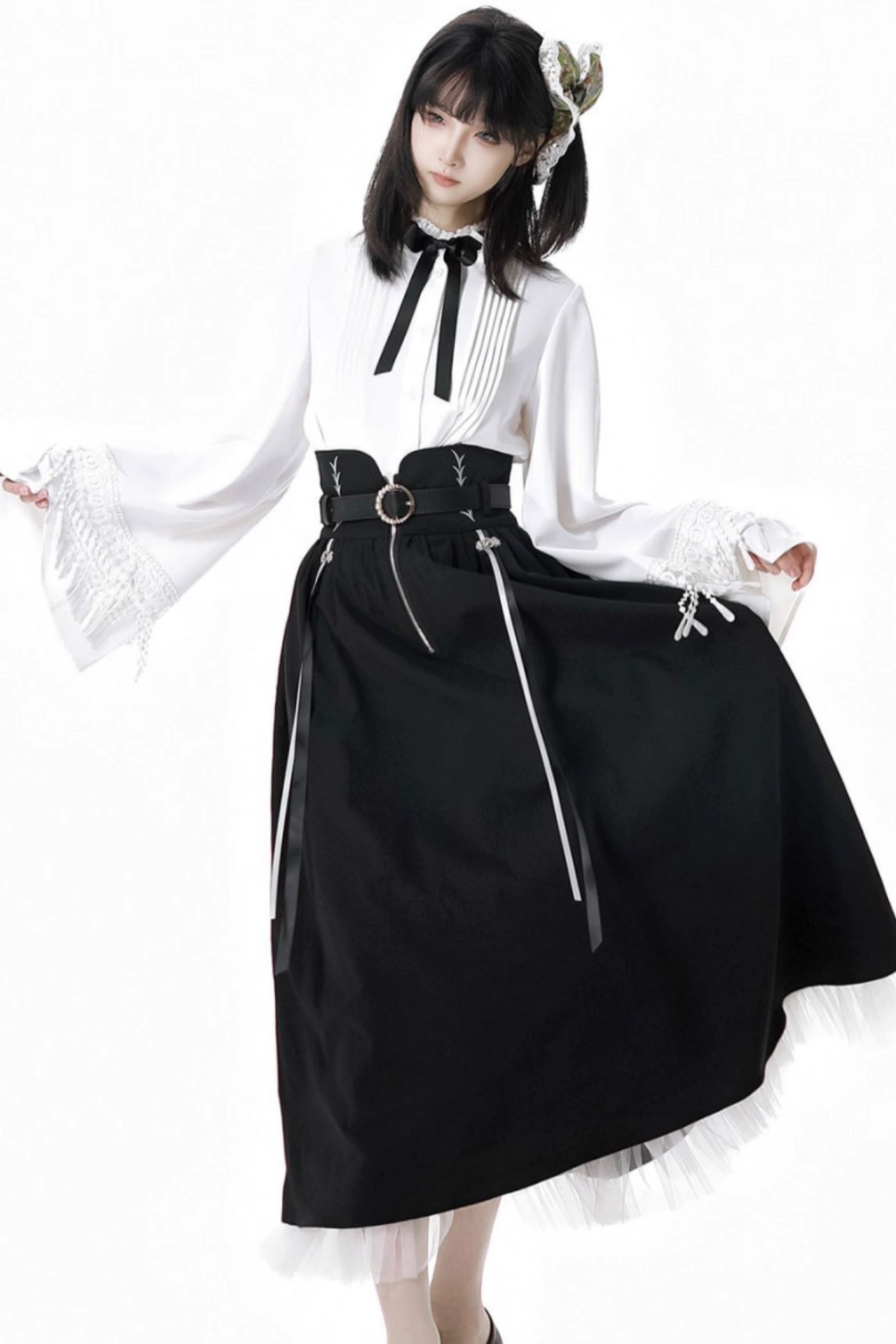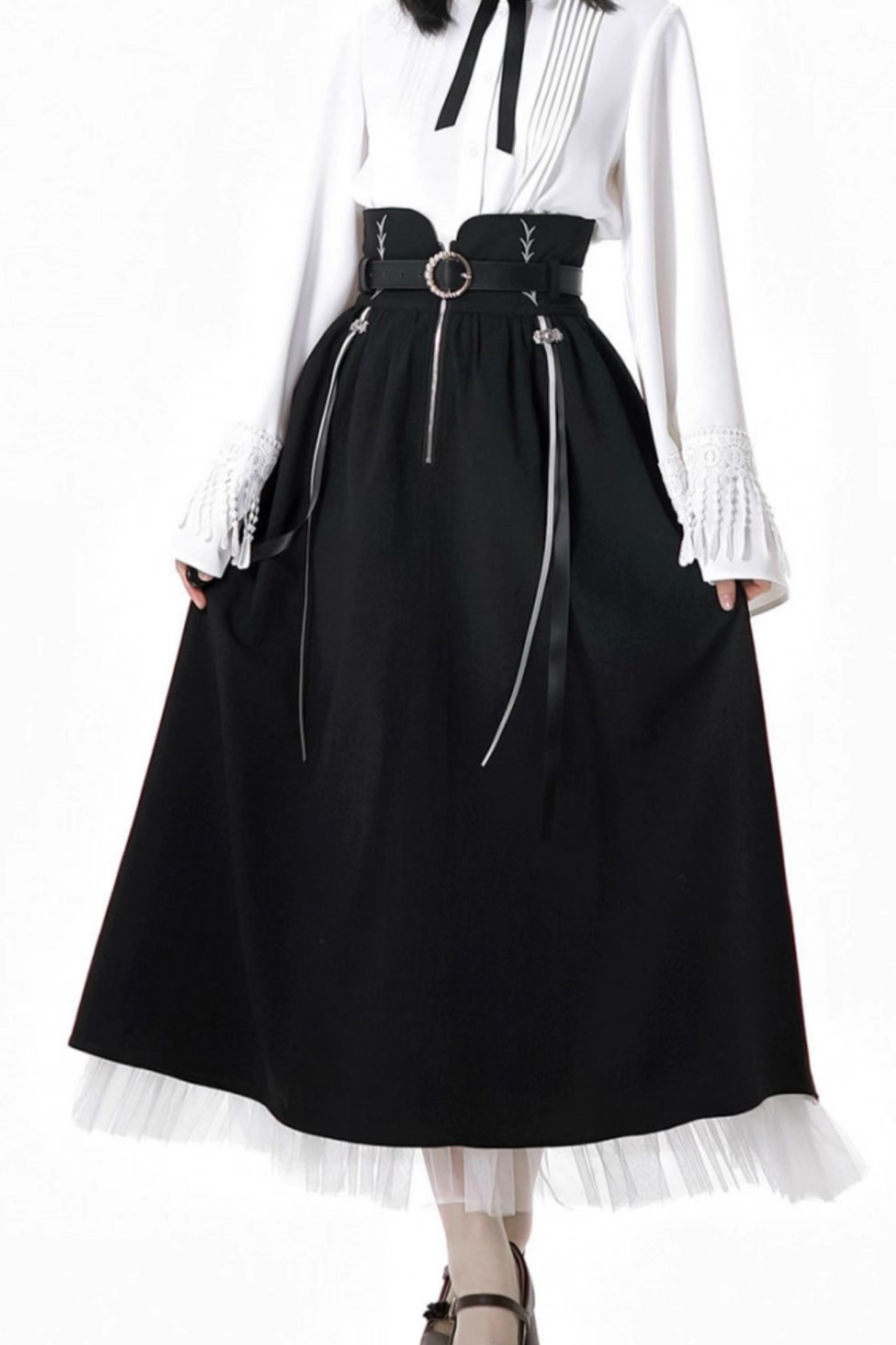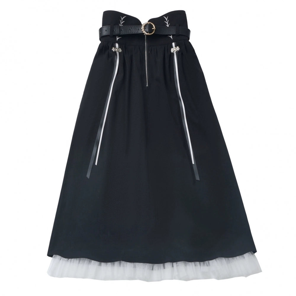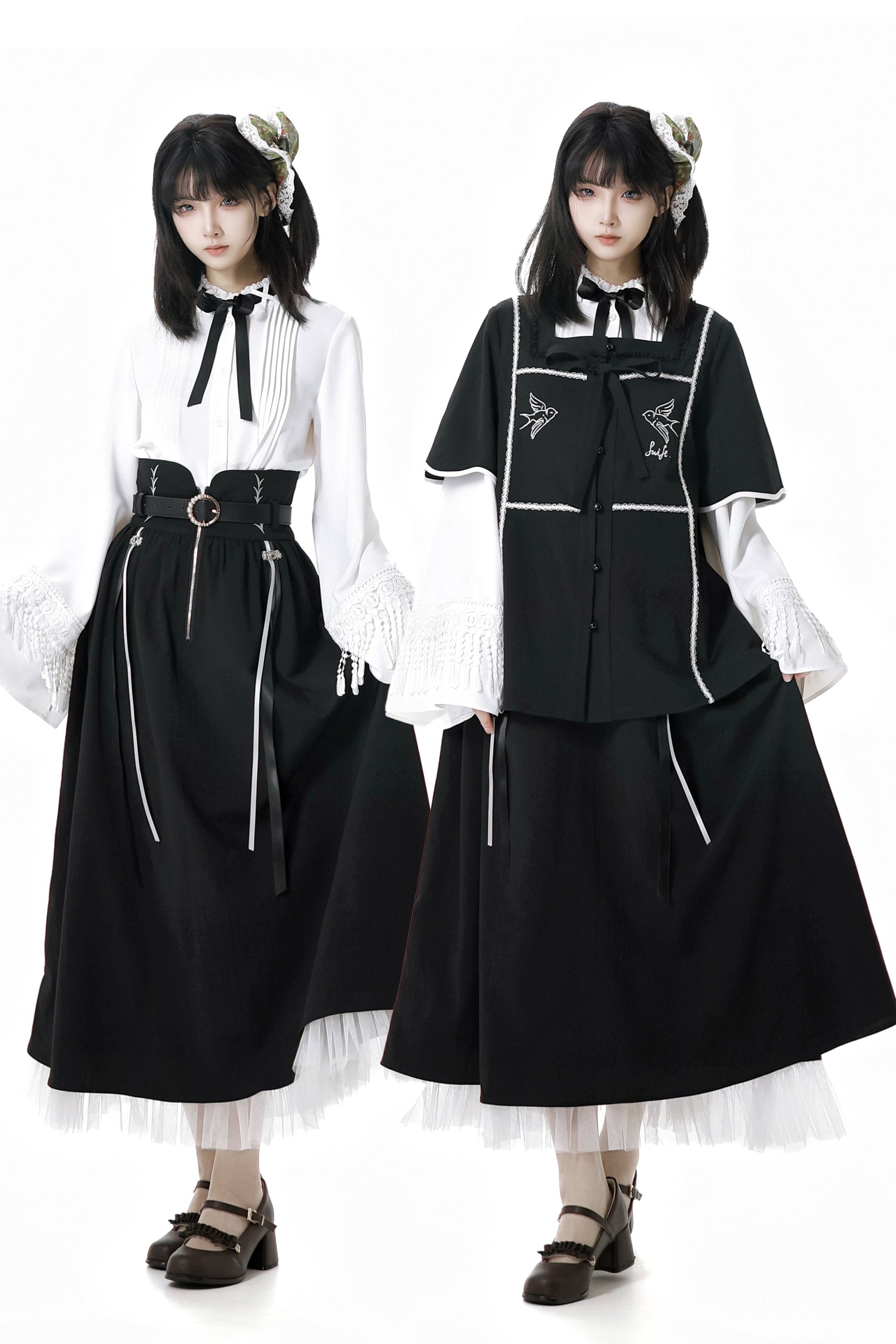 ❤ダークモードスクエアネックカーディガン+シャツ+ロングスカート❤
