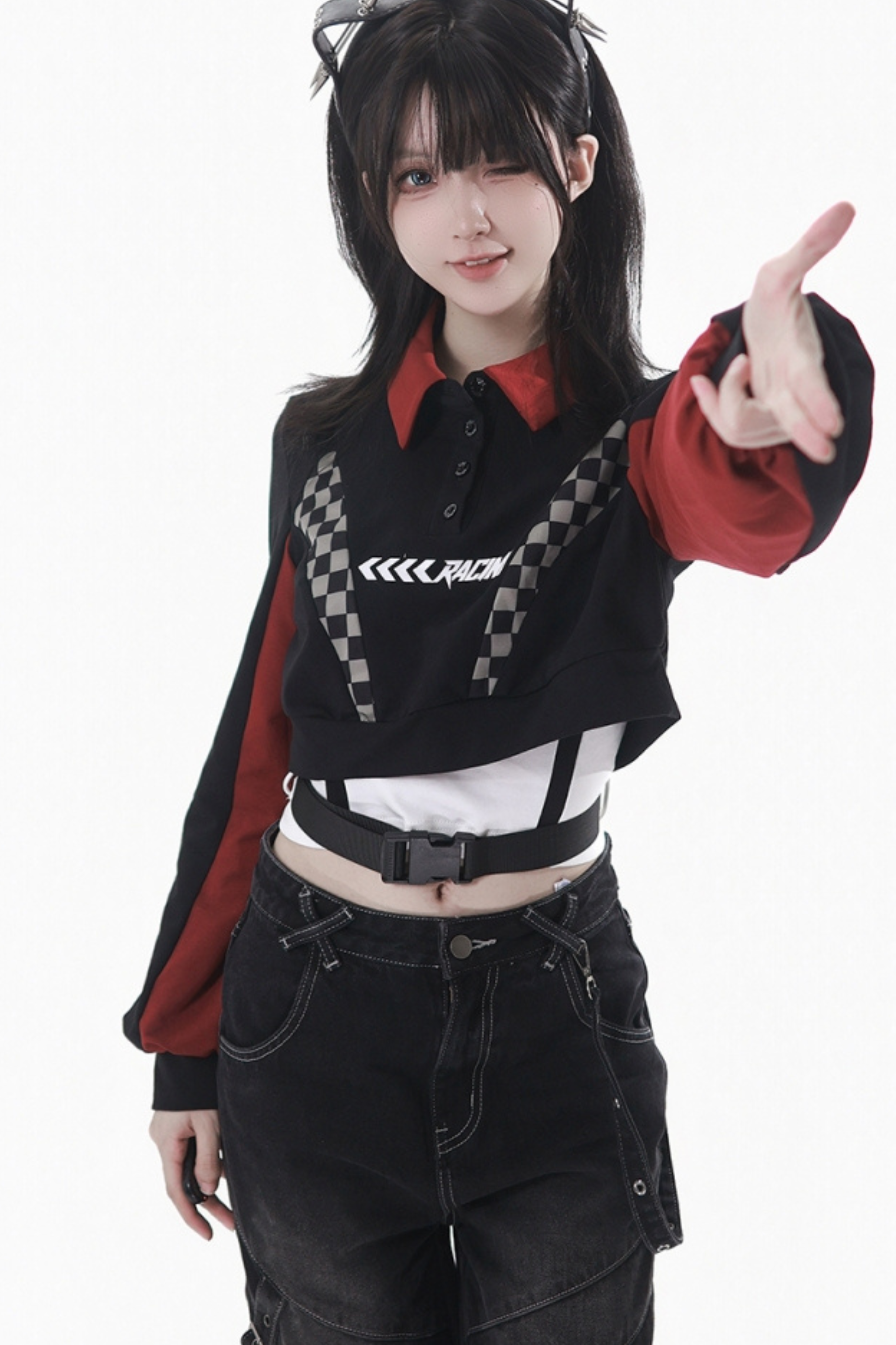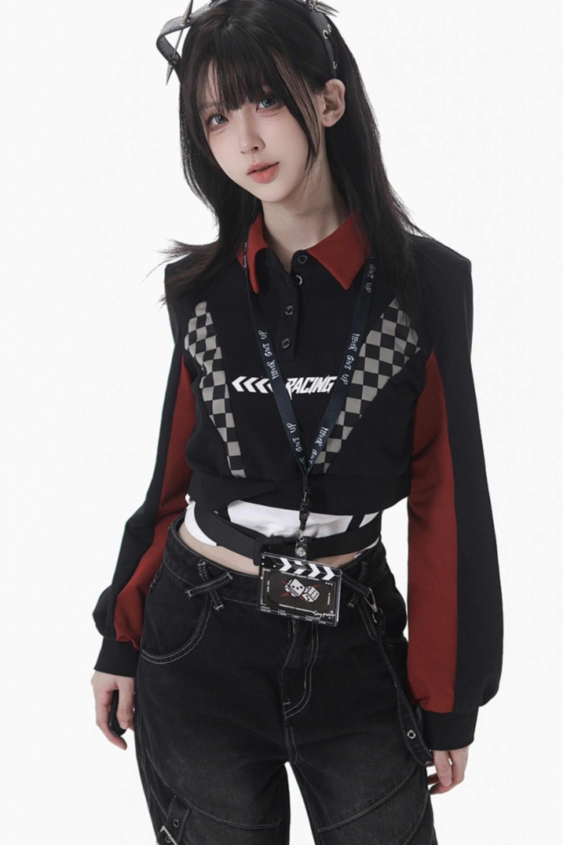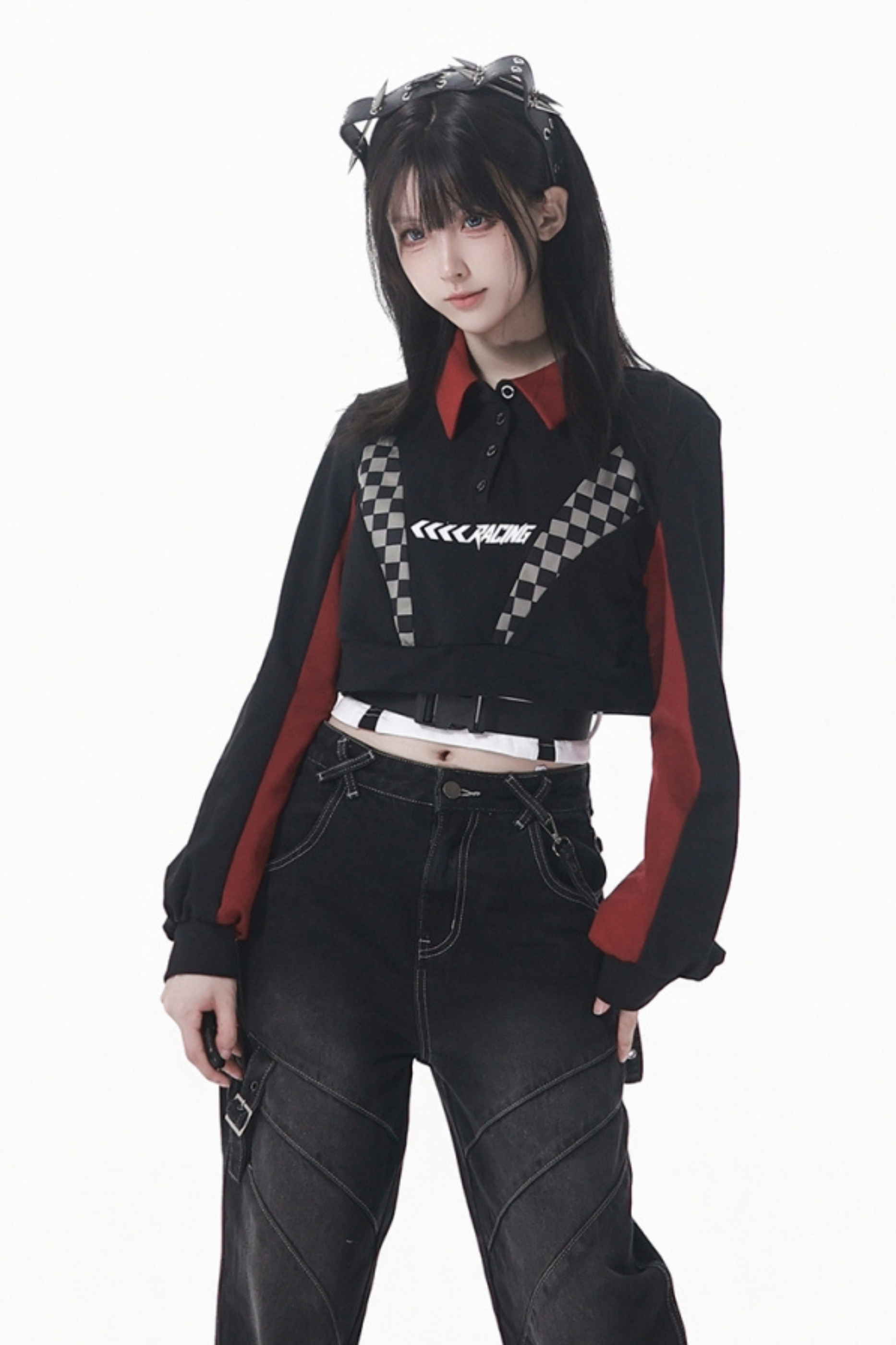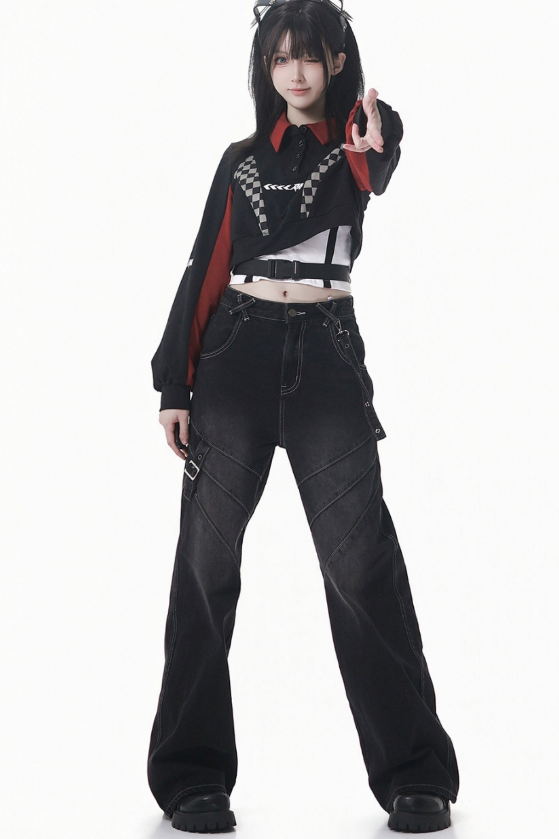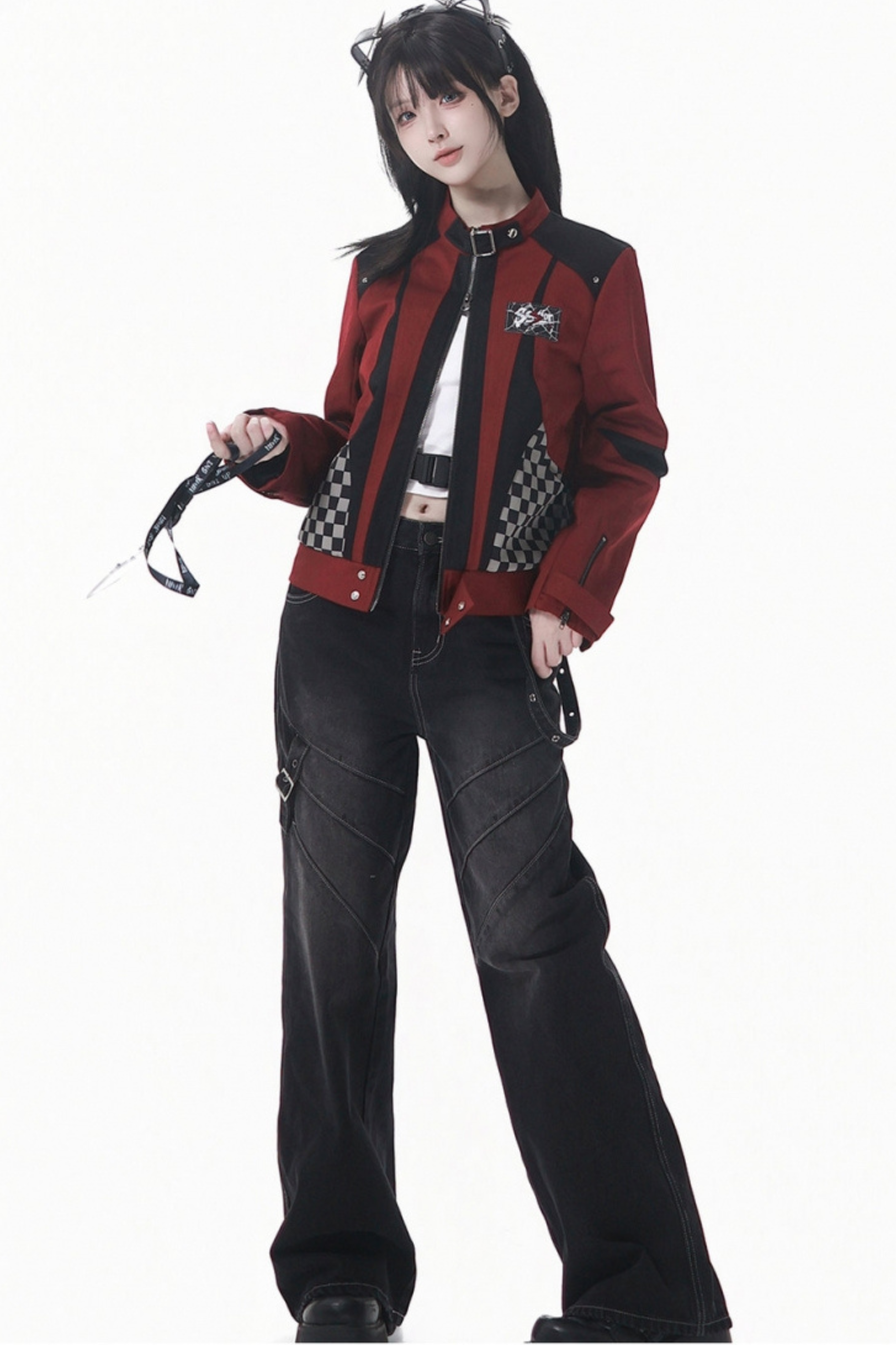 ❤チェッカーボードオートバイジャケット+スウェット+デニムパンツ❤