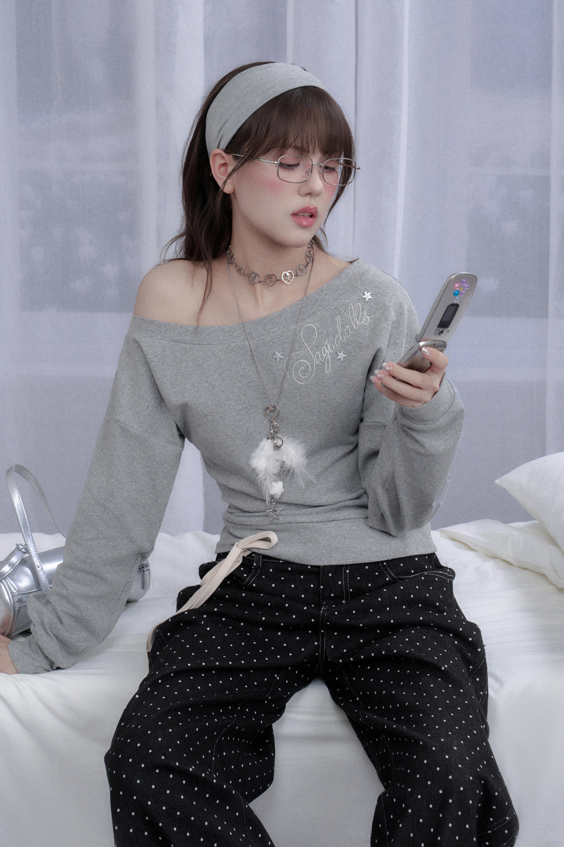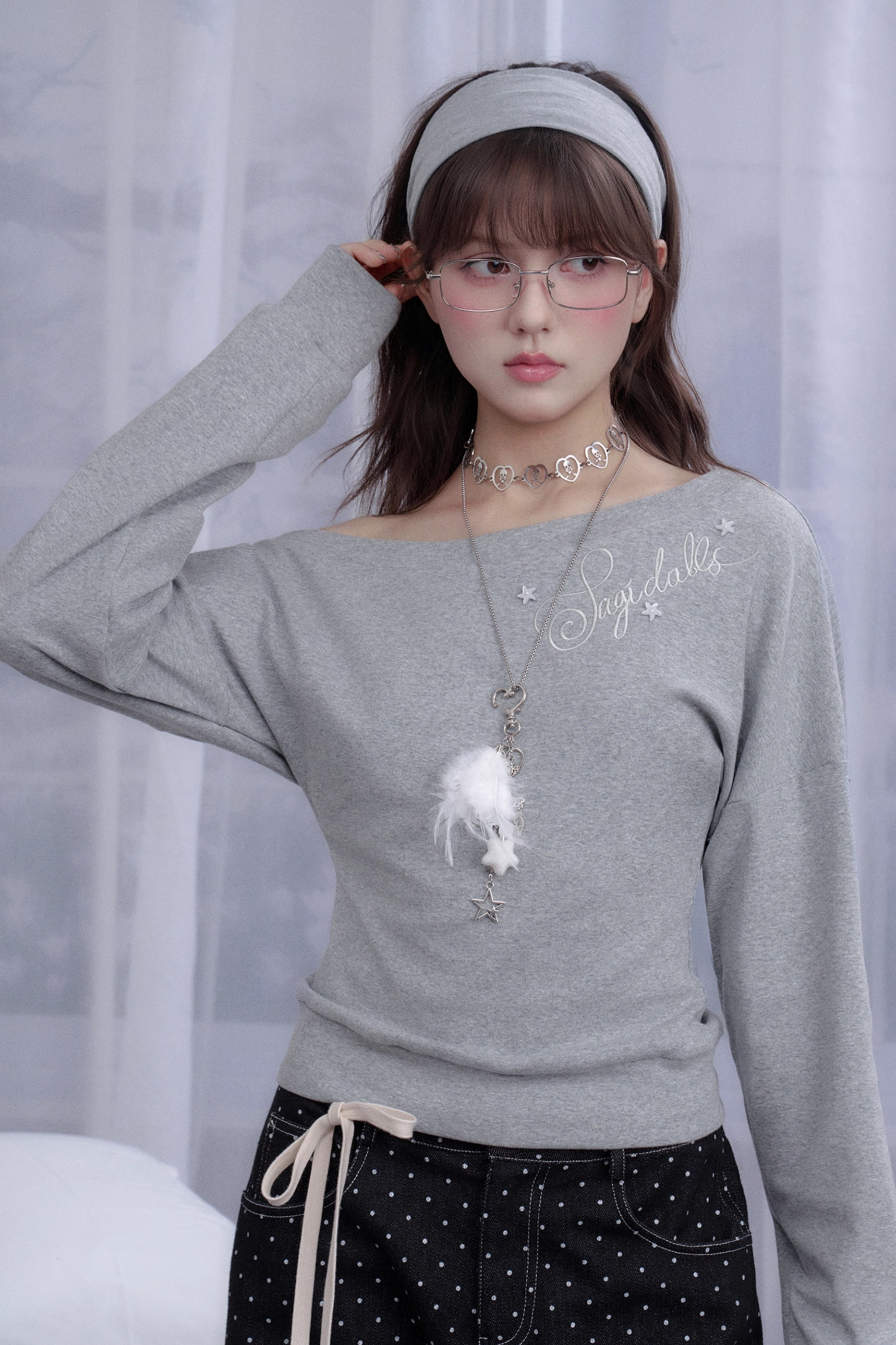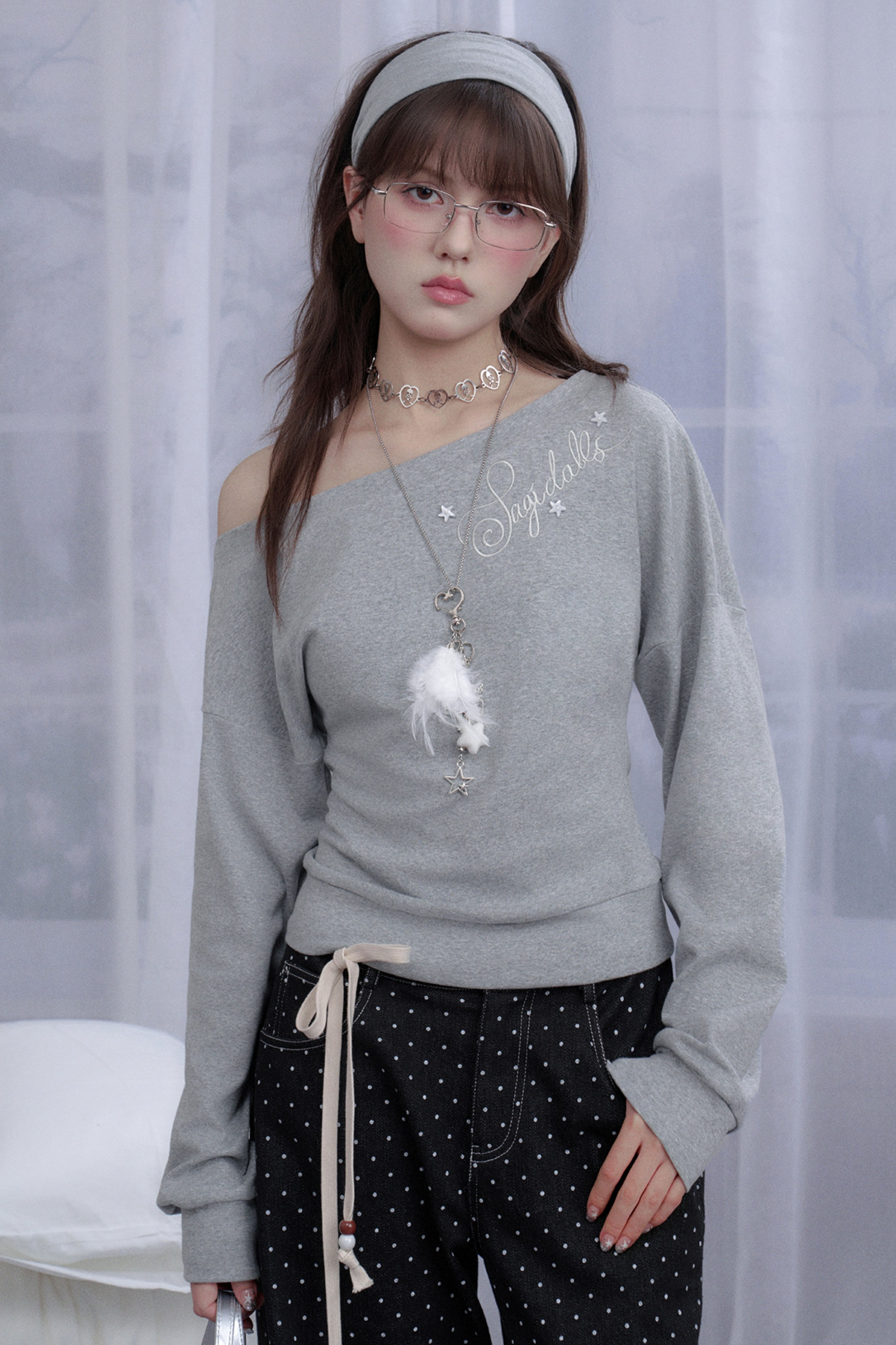 ❤ワンポイントロゴカジュアルワンショルダートップス❤