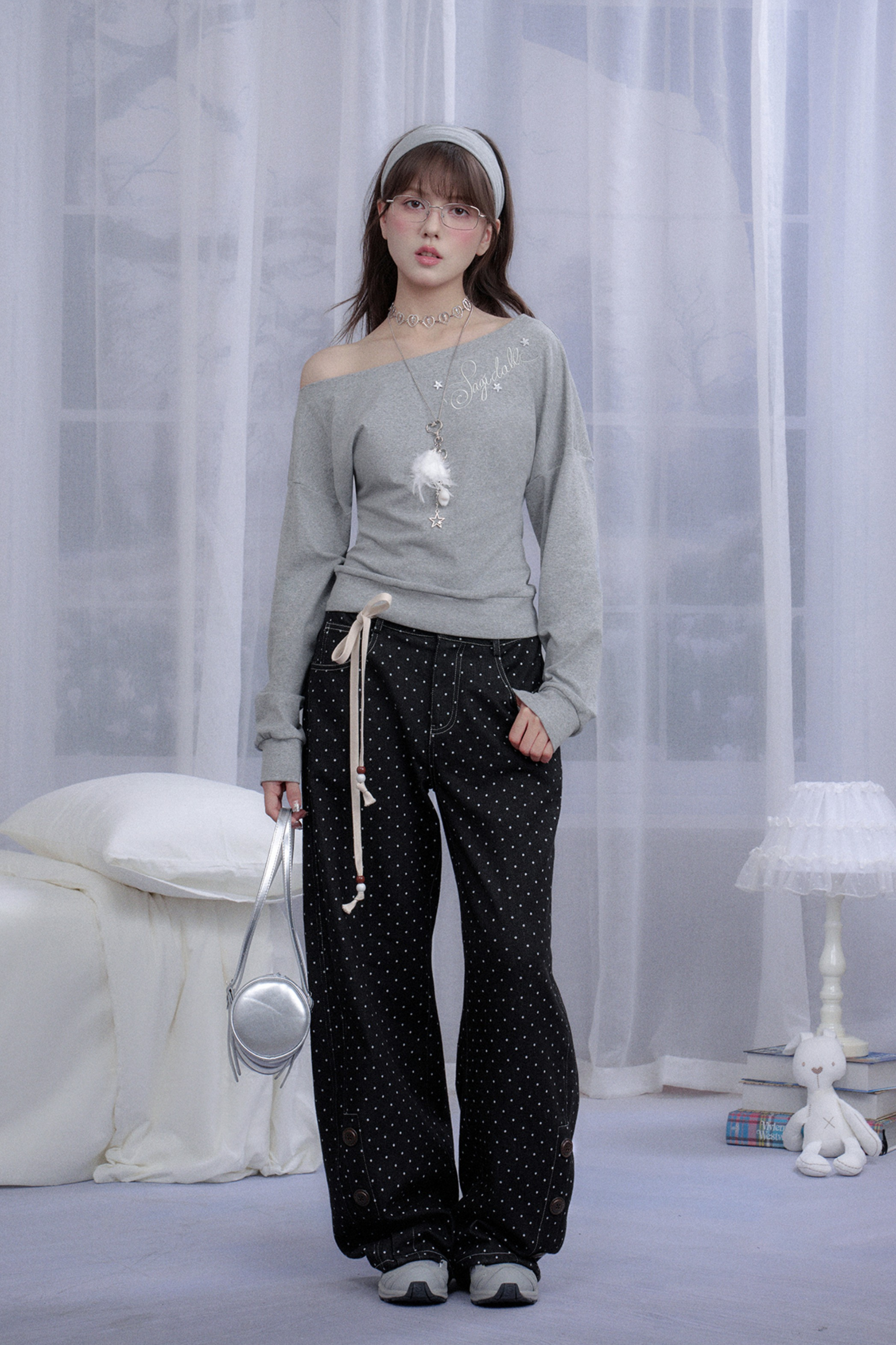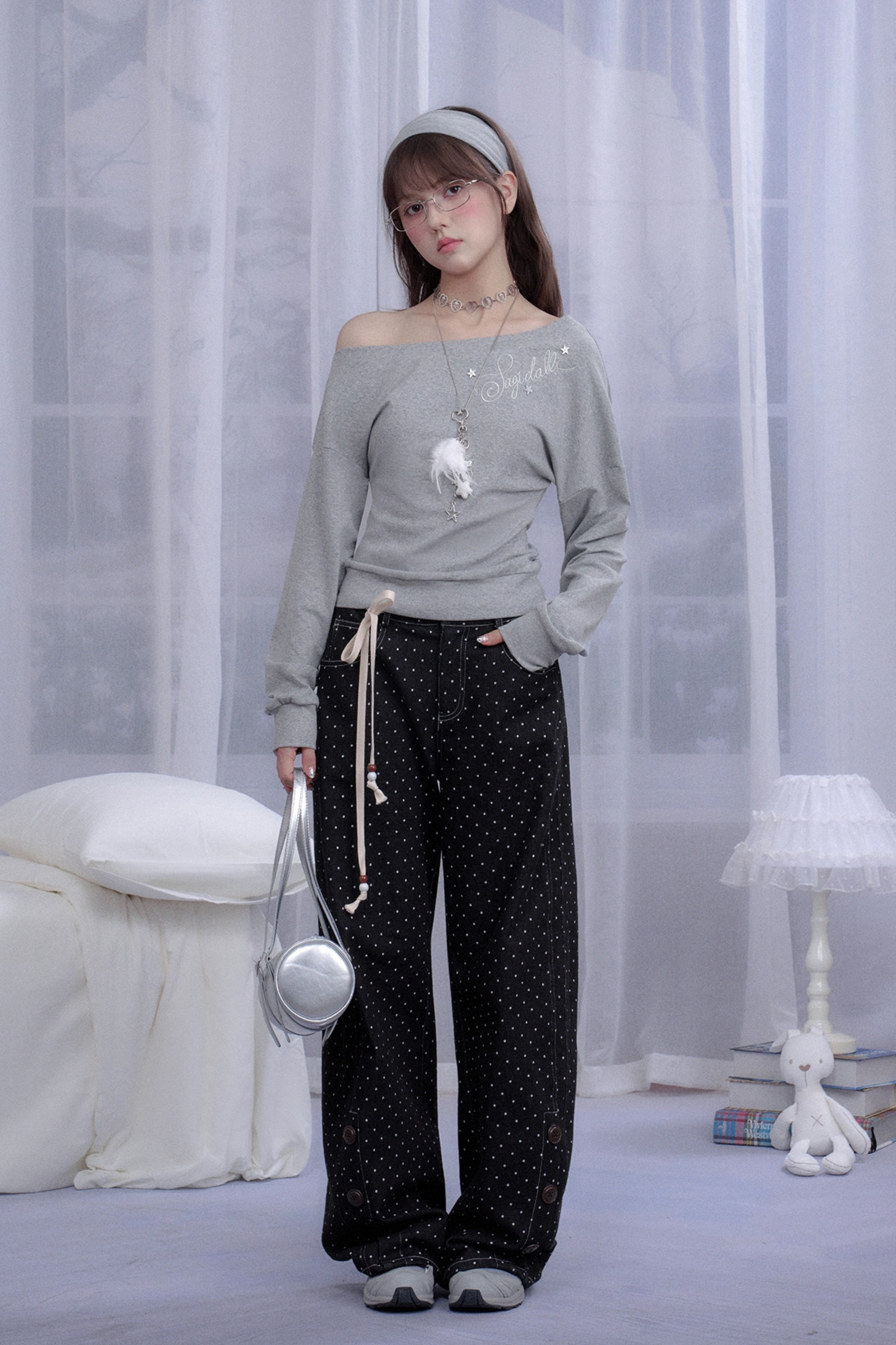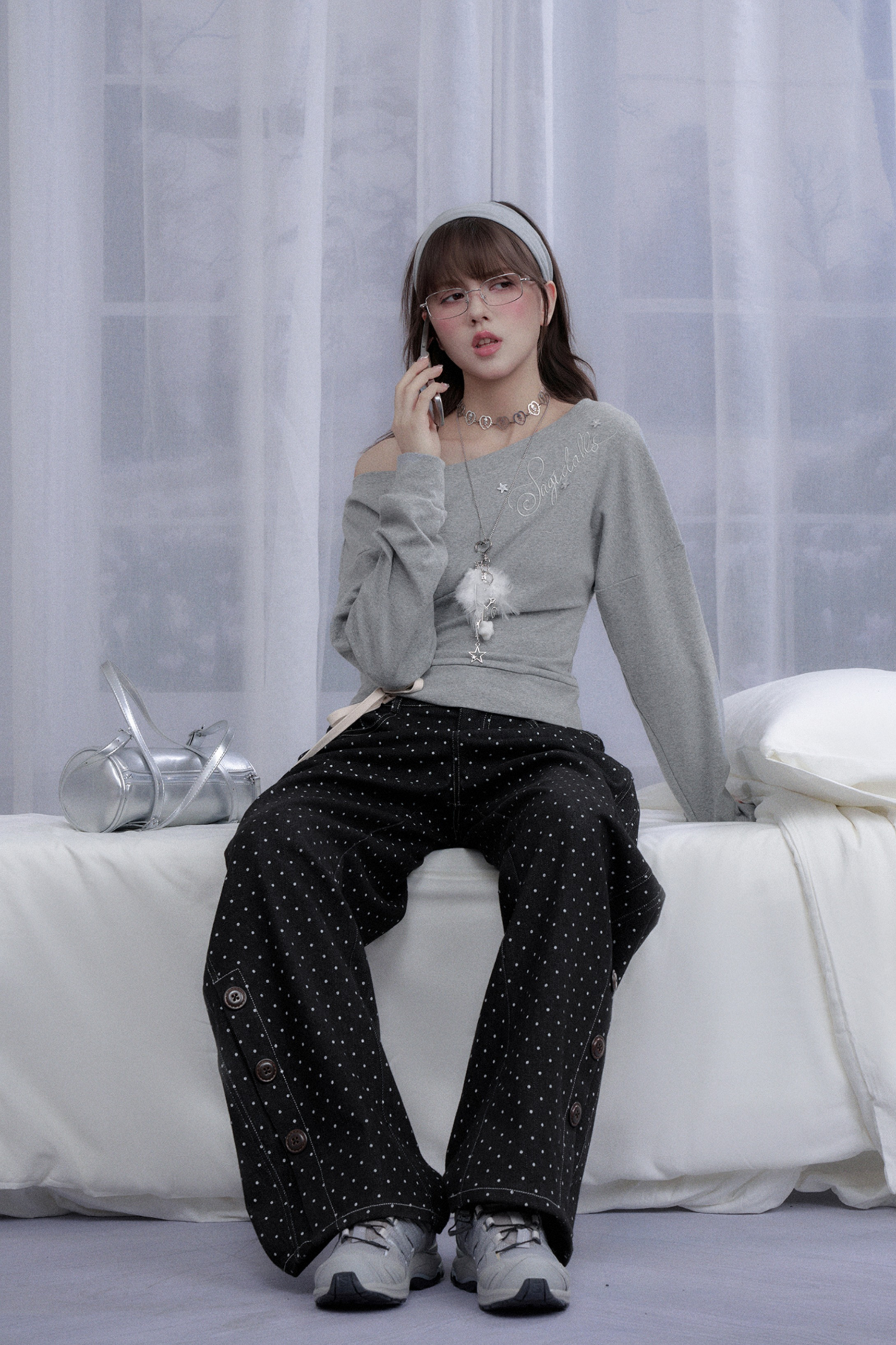 ❤ワンポイントロゴカジュアルワンショルダートップス❤