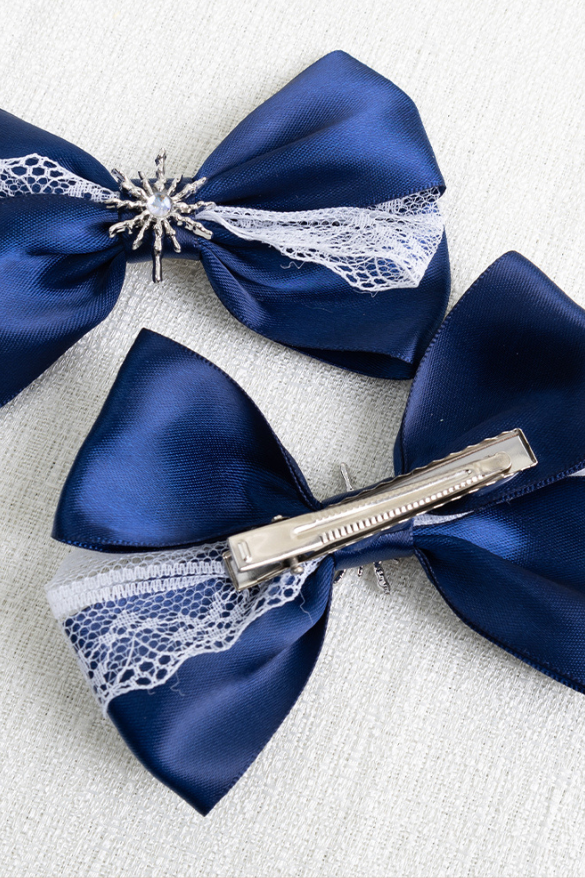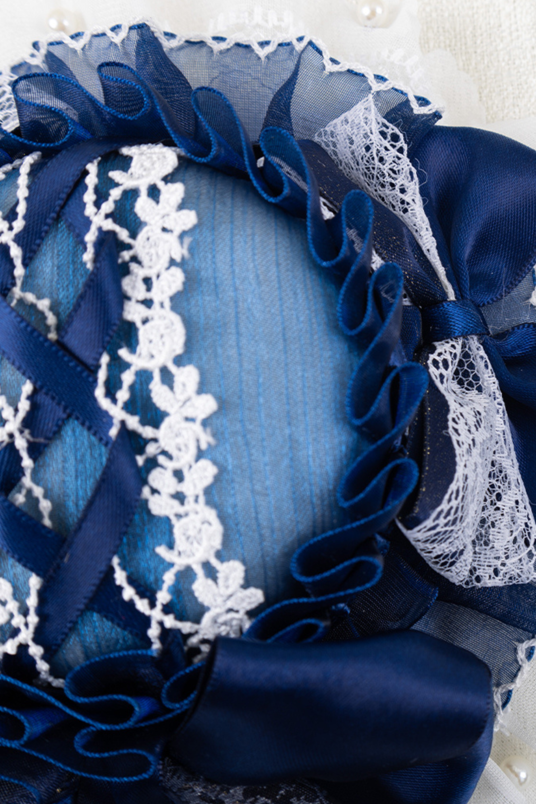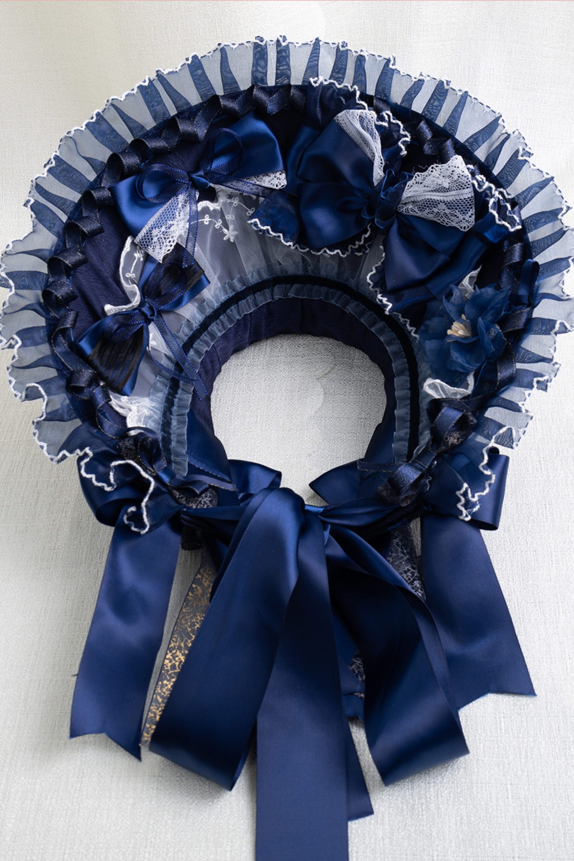 ネイビーブルーロリータボンネット+ヘアバンド+ハットクリップ+リボンクリップ